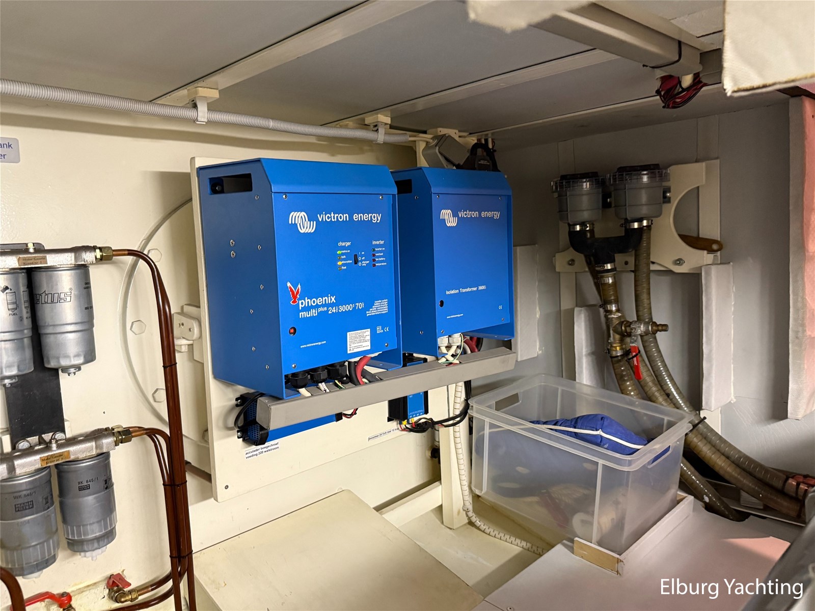- Aanwezig met walstroomkabel + Victron Isolation Transformer