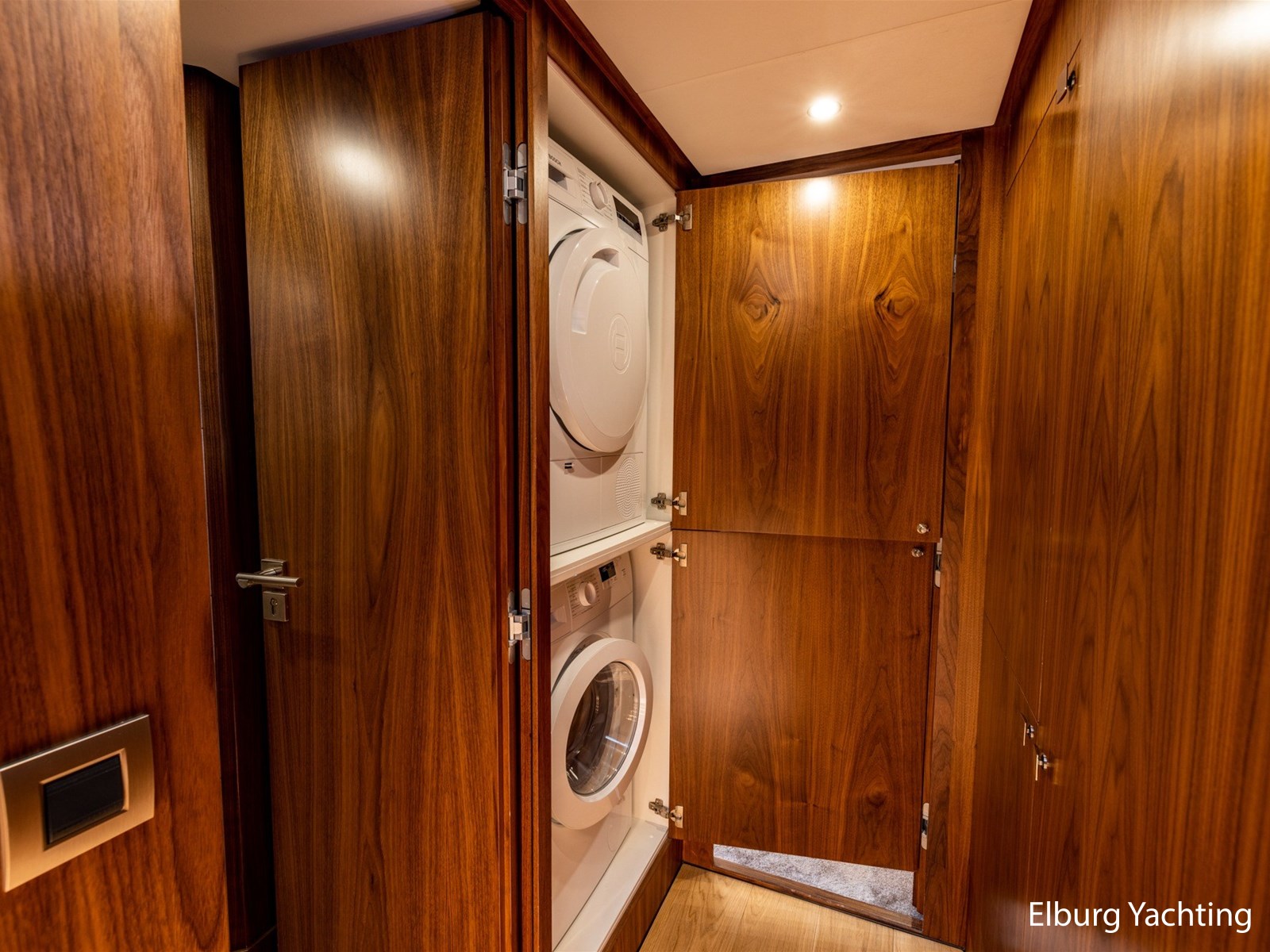 De Van den Hoven Executive is voorzien van o.a.: Vetus hydraulische stabilisatoren, Yachtcontrol software, Hull Vane , hydraulisch bedienbare aluminium mast, r.v.s. reling met een bovenbuis van 42mm, 10 bolders 90 mm op bolderplaten met omgezette randen, 4 ovale kikkers, 2 x r.v.s. vlaggenstok, ronde stootlijsten, instrumentenbeugel op mast, r.v.s. ankerkluis zijboeg, losse r.v.s trap voor afstap roef-/salondek, losse r.v.s. trap voor afstap gangboord/zwemtrap, 3 thermostaten, radiator in salon, gehele schip onder de waterlijn geïsoleerd met 4 cm purschuimisolatie, 12 patrijspoorten (175 x 375 mm) (Gebo) voorzien van los vliegenhor, 6 patrijspoorten romp (310 x 690 mm) volledig r.v.s. opendraaiend met vliegenhor, buiten en binnenverlichting waarvan 55 led plafondspots , 4 wandspots, 2 x dimmer in salon en eigenaarshut, 3 x ruitenwisser Exalto 240BS met wisserarmen, 2 x luxe badkamer met meubel, spoelbak en 2 x vrij hangend toilet, toegang tot flybridge d.m.v. geïntegreerde trap + afsluitbaar luik Gebo, bar/grill, zitgedeelte met tafel, mast op flybridge, airco in mastercabin, salon en omschakelbaar naar VIP en Guest cabin, alarminstallatie incl. rookmelders met melding naar gsm, wateronthardingssysteem, 1 x schuifraam salon verwerkt in plakbeglazing, verwarming achterdek d.m.v. warmtelucht unit met capaciteit van 10 KW gekoppeld aan Kabola KB40 kachel.