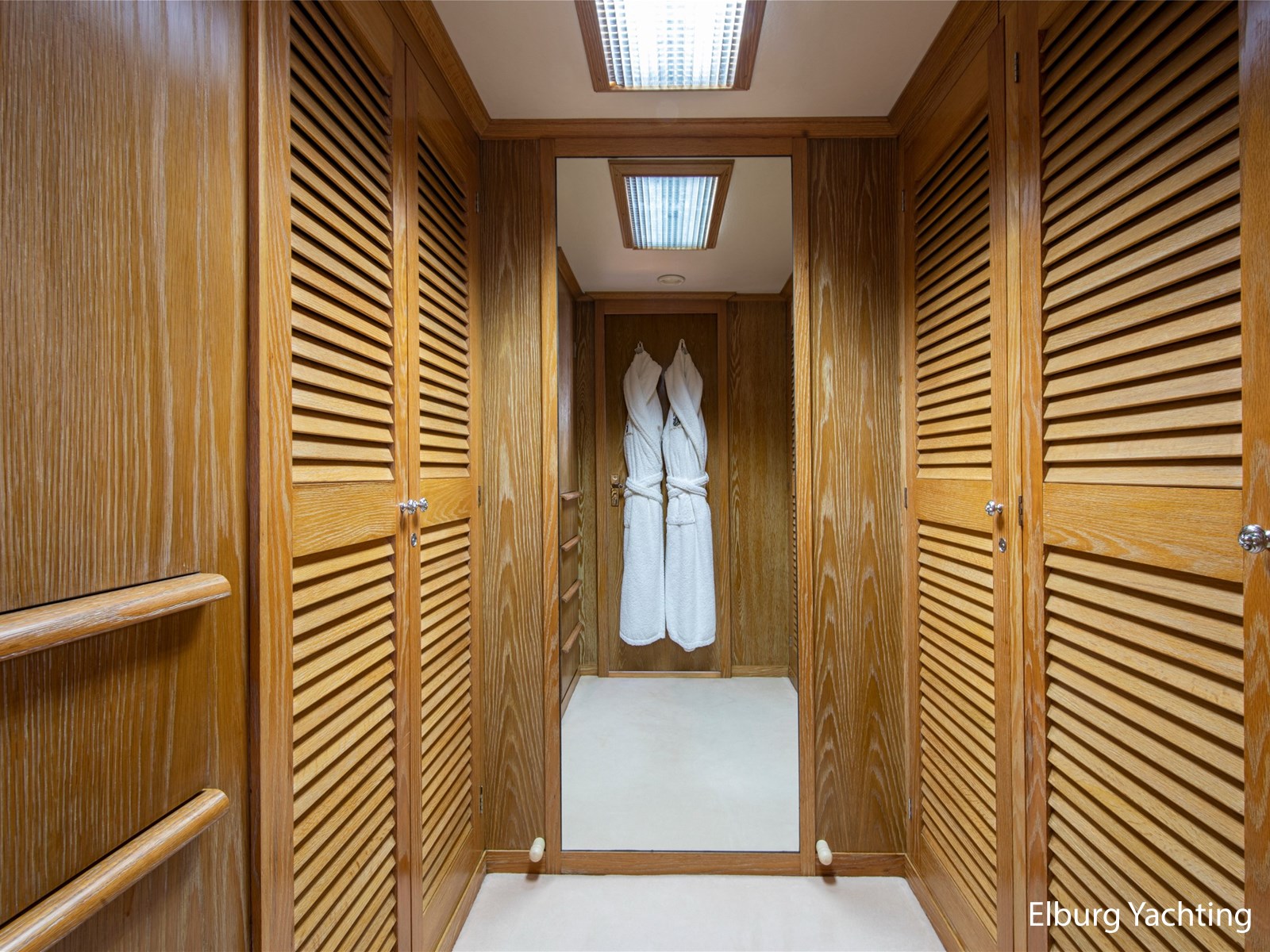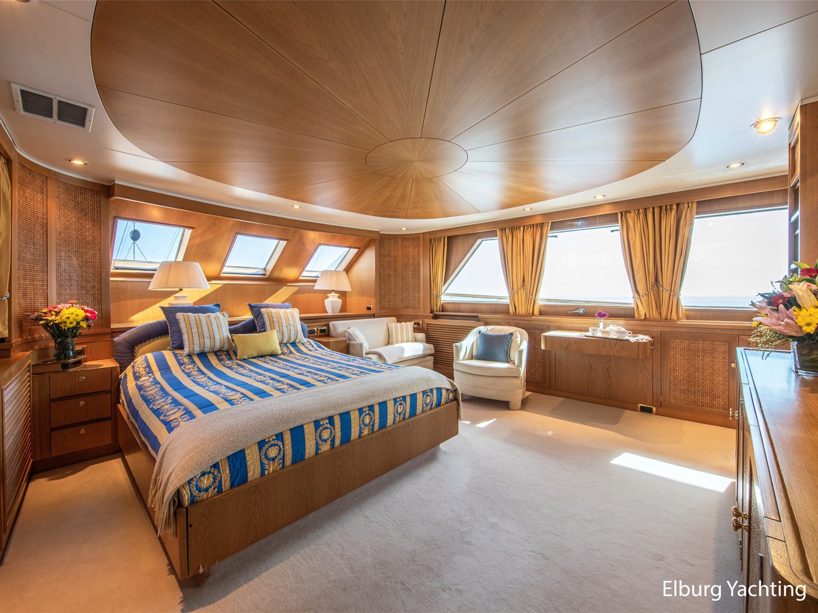 Binnen biedt de open, ruime salon informele zitplaatsen met grote banken en stoelen. Daarnaast bevindt zich ook een formeel eetgedeelte. Verder naar voren op het hoofddek treft u de ruime eigenaarshut met eigen badkamer en inloopkast.