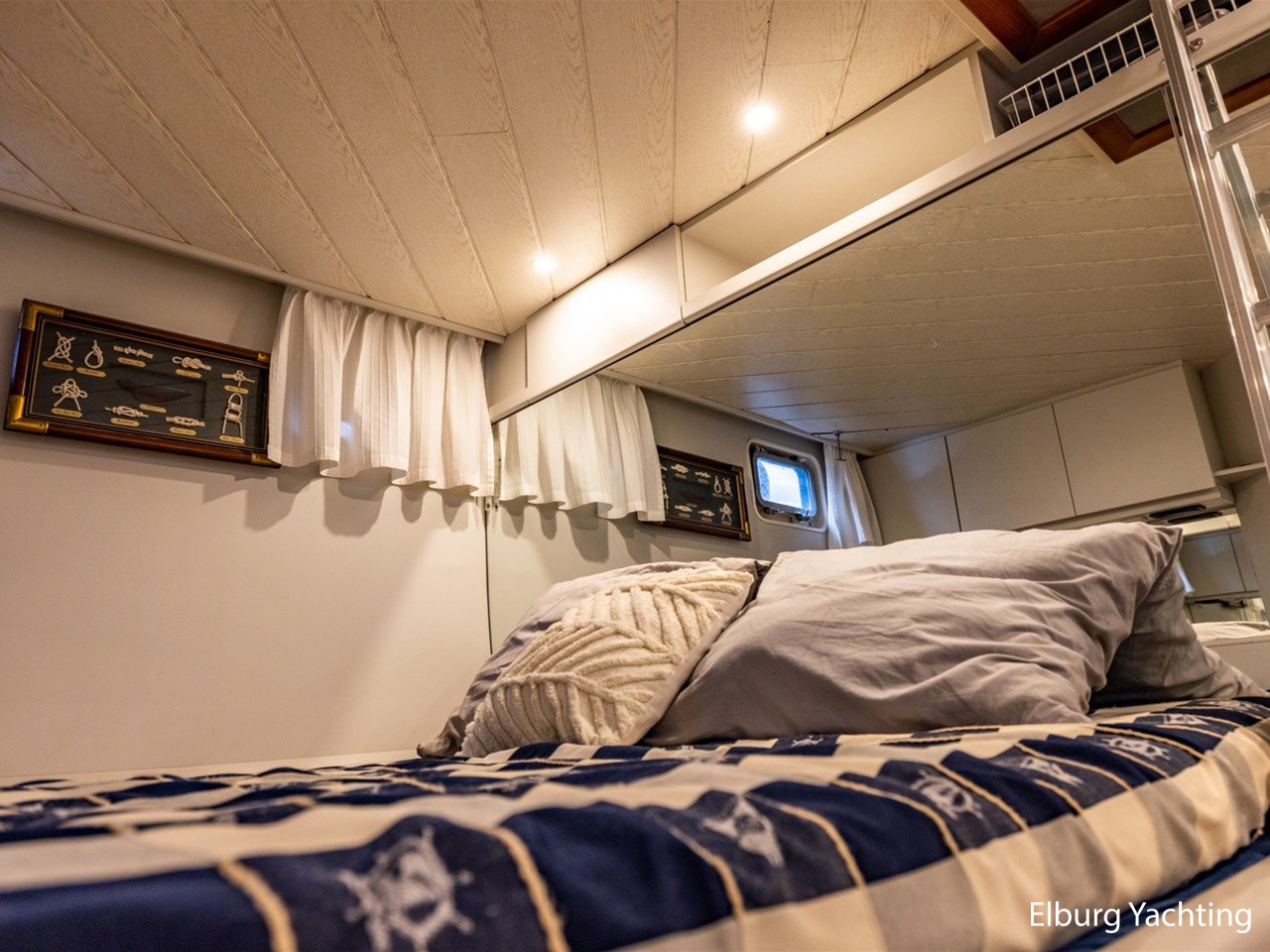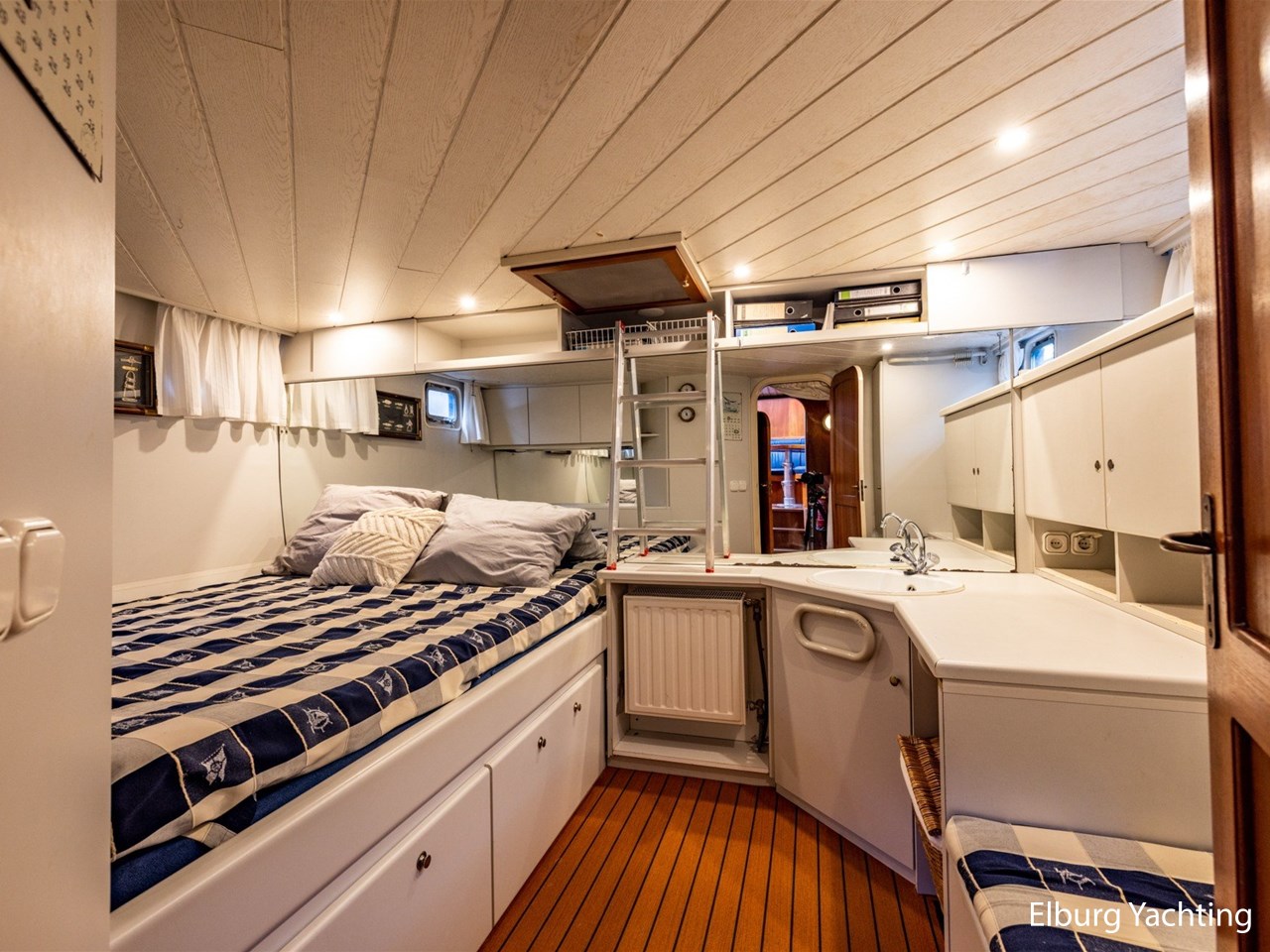 Authentiek en zwaar gebouwde Gillissen Rondspant Trawler met een klassieke uitstraling. Deze unieke Gillissen laat zich kenmerken door een professionele machinekamer, grote open kuip en een eigenaarshut midscheeps over de volledige breedte van het schip. Verder wordt dit schip geleverd met o.a: ruime salon met rondom zicht naar buiten, slingerruit, Miele novotronic WT 946was-/droogcombinatie, r.v.s. davits, mogelijkheid tot droogvallen, dubbele spoelbak in keuken, veel bergruimte door het gehele schip, traanplaat in machinekamer, automatische brandblusinstallatie in machinekamer (2019), gelakte houten railing, zwarte kunststof stootrand in r.v.s. eindhouders, 4 x openslaande deuren voor een open gevoel tussen salon en kuip, uitritsbare tent over de gehele kuip en achterhut (2019), camera aan achter zijde en aan stuurboord zijde, LED verlichting, teak banken met bergruimte in kuip, separate ingang naar machinekamer vanaf kuip of achterhut, dekwasinstallatie met separate hydrofoor, beunkoeling, hydraulisch strijkbare mast, romp in 2018 geschilderd, opbouw in 2017 geschilderd. Het schip heeft in 2002 een refit ondergaan bij Balk in Elburg en is daarna goed gedocumenteerd gebleven qua onderhoud.