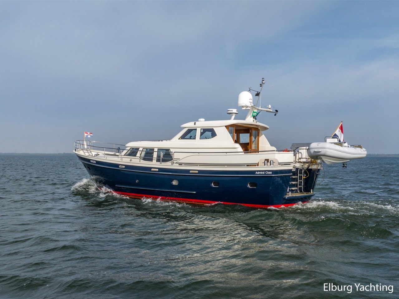 Zeer hoogwaardig gebouwd rondspant stalen motorjacht van jachtwerf De Gier en Bezaan, ontworpen door René van der Velden. Het houtwerk in het interieur is zeer rijk aan details en laat echt vakwerk zien. De machinekamer is professioneel geïsoleerd waardoor het geluid van de aandrijving tijdens het varen naar de achtergrond verdwijnt. Het jacht is compleet uitgerust om zowel op zee als binnenwateren goed en comfortabel te kunnen varen. Deze Admiral Class 1500 is voorzien van: AEG vaatwasser, Corian topbladen, 2 x diepe opbergluik op achterdek, luxe Recaro maritieme vaarstoelen in stuurhuis, in 4 delen klapbare deuren naar het stuurhuis, dek loopt gelijkvloers rondom met dubbele r.v.s. reling, 2 x doorgang in reling aan SB & BB + opstap via inklapbare r.v.s. boegladder, dakluik in stuurhuis en salon tevens voorzien van muggenhor, 1 x voorraam in stuurhuis te openen voor ventilatie, Bosch was/droog combinatie, dubbele Separ brandstoffilters per motor, inklapbare vaarbank in stuurhuis, beide badkamers voorzien van wandradiator, overzichtelijk en toegankelijk elektrisch paneel, doorvaarthoogte met mast op ca. 5,40m en met geklapte mast ca. 4,05m. Laatste onderhoud aan de hoofdmotoren en generator uitgevoerd in 2023. 9 x redtop accu's vernieuw in 2022.