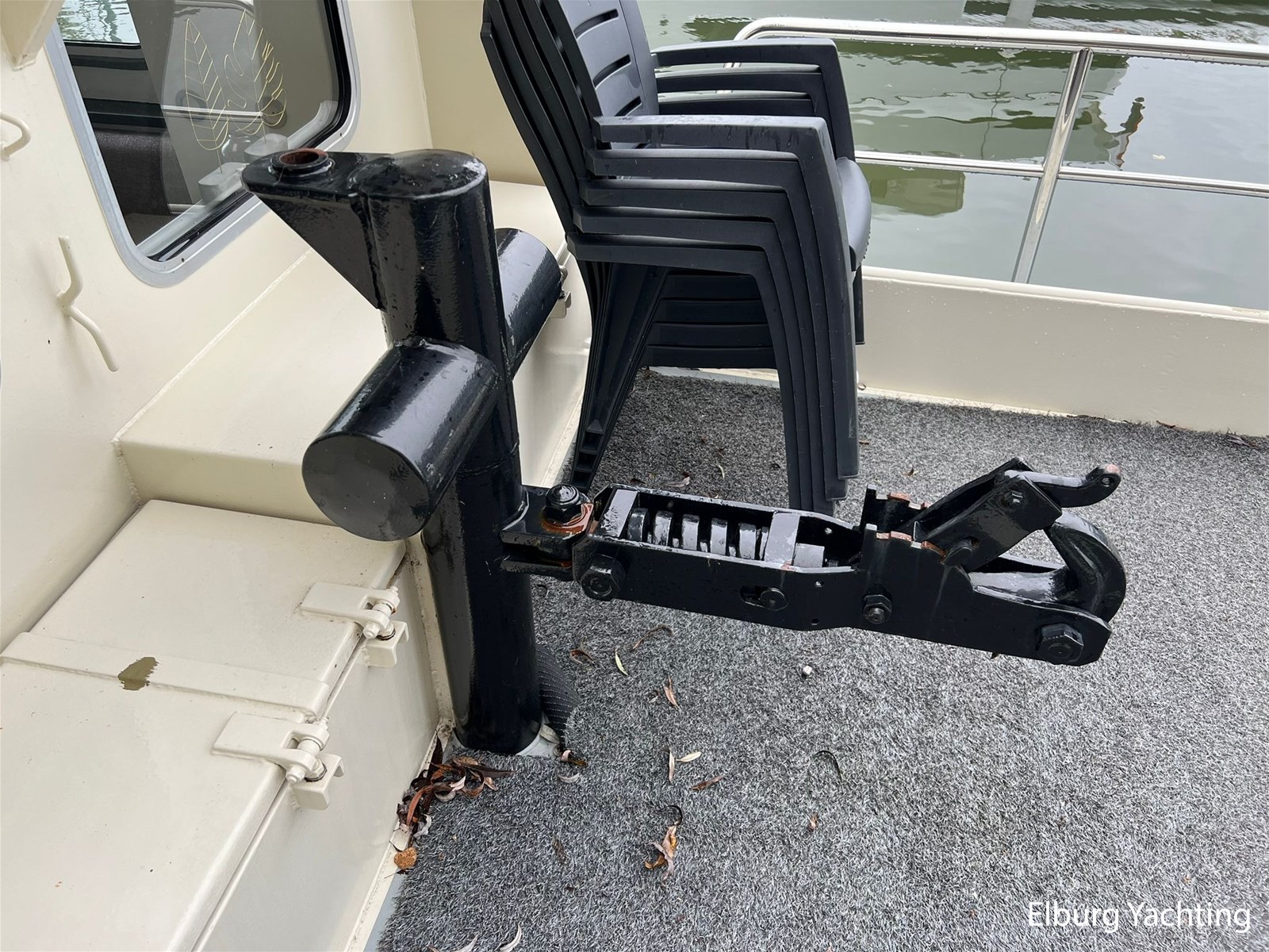 Professionele duw/sleep boot met de afwerking/intimmering van een jacht. Het schip is CVO gekeurd en is voorzien van een Europanummer. De centrale salon/stuurhuis is via een SB-zijdeur toegankelijk, de dinette biedt plaats voor 6 personen, de stuurbank is in hoogte elektrisch verstelbaar en de rugleuning is om te klappen zodat deze bij de dinette tafel betrokken kan worden, professioneel ingerichte stuurstand, follow-up besturing, tanks met mangaten, diverse ramen en patrijspoorten te openen voor extra ventilatie, dubbele r.v.s. reling rondom, afgesloten motorkamer, dekwaspomp, rubberen stootlijst rondom. Bij particuliere verkoop wordt het schip inclusief BTW verkocht.
