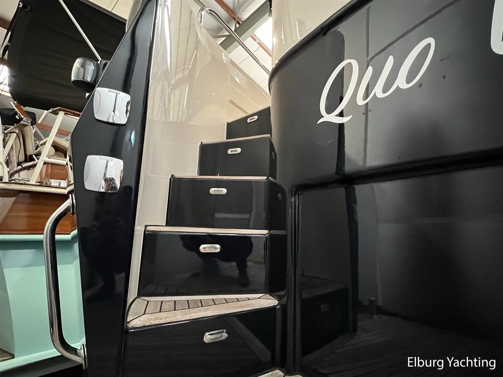 - Teak op zwemplatform + r.v.s. inklapbare zwemtrap
