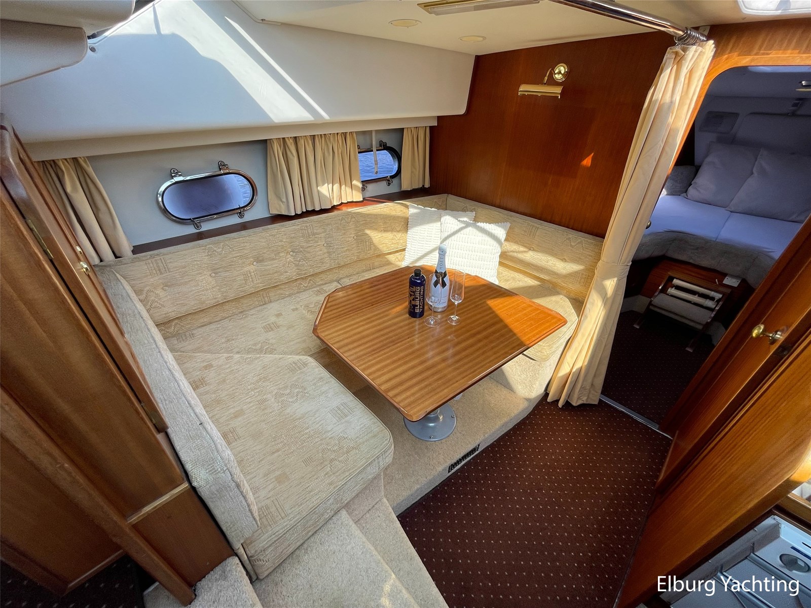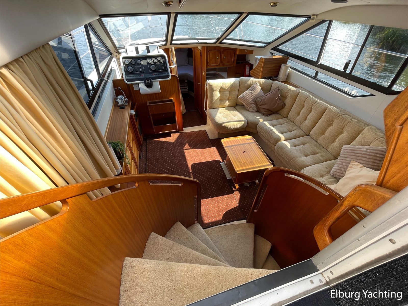 Deze Broom 39 is een echte comfortabele allrounder, geschikt voor zowel zee- als binnenwateren, het jacht is door de huidige eigenaar aankocht in 2004 en heeft reizen gemaakt van Groot-Brittannië naar Parijs en heeft gevaren in Nederland, Duitsland, Scandinavië en heeft tevens diverse Baltische havens bezocht. Zij is verder voorzien van o.a.: hoezen voor voorruiten en achterbank, bimini, muggenhorren, quadrofonisch geluidssysteem, meerdere drankkabinetten, kluis, reserve schroef, een selectie van Volvo motoronderdelen, volledige servicebeurt waarbij alle motorfillers en impellers zijn vervangen in 2024 (jaarlijks onderhouden) , transmissie olie vervangen (2023), stuurboord motor gereviseerd 2019, bakboordmotor nieuwe warmtewisselaar, 100 uur sindsdien, 2024 nieuwe elektrische macerator pomp voor toilet achter, Pomp toilet achter service 2024, vloerbedekking (2019), dynamo stuurboord vernieuwd (2023), V-snaren motor vervangen (2023) , nieuwe verf romp en antifouling (2019), nieuwe douche achter (2021), nieuwe anodes op romp en motor-assen (2024), nieuwe motor- en service accu`s (2024).