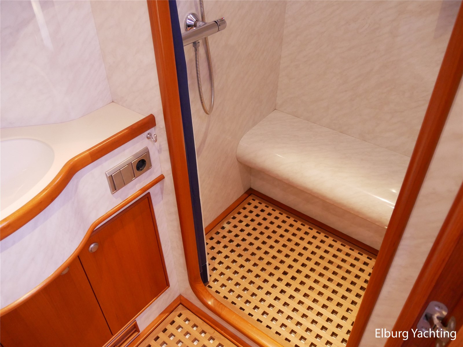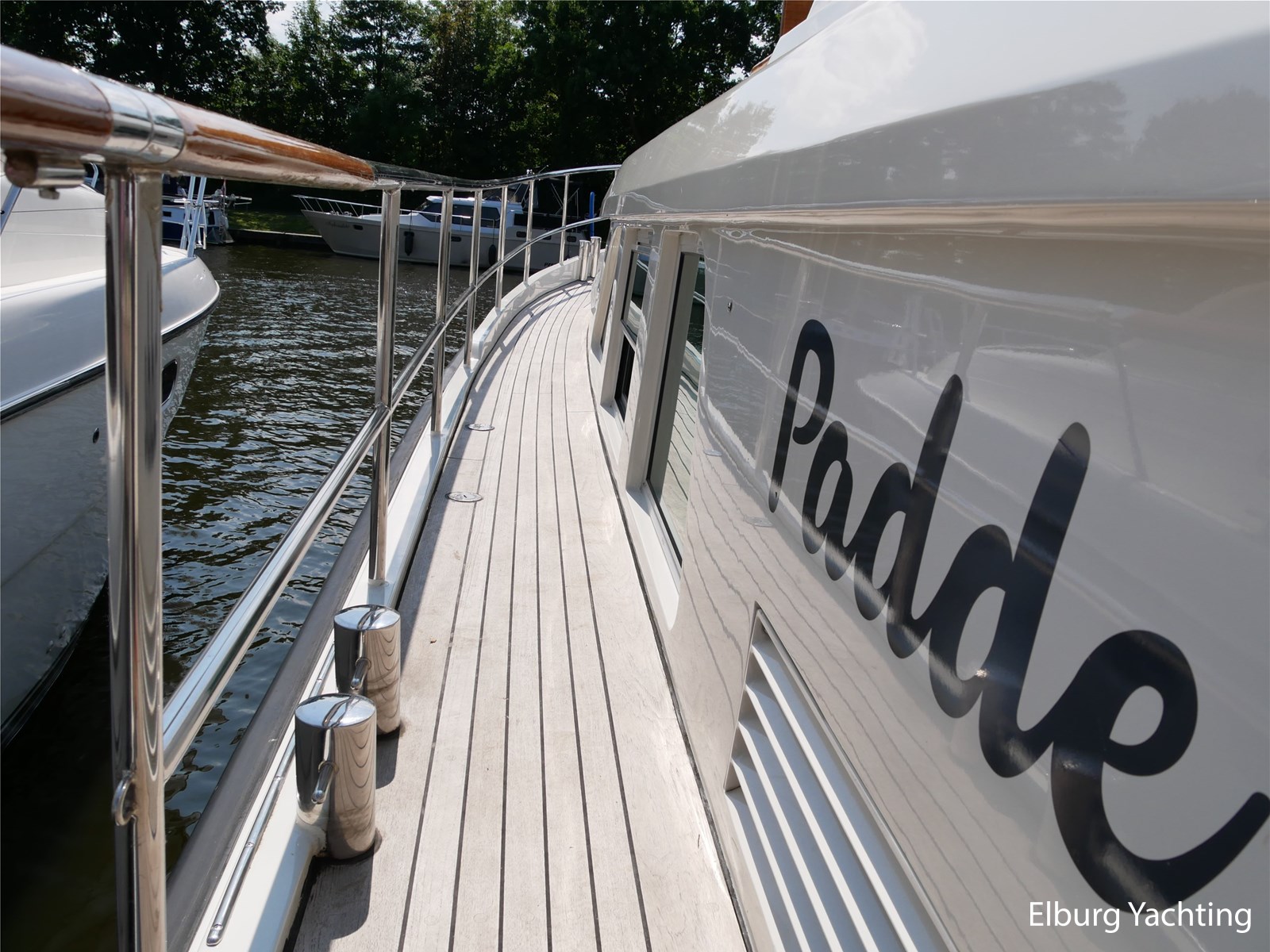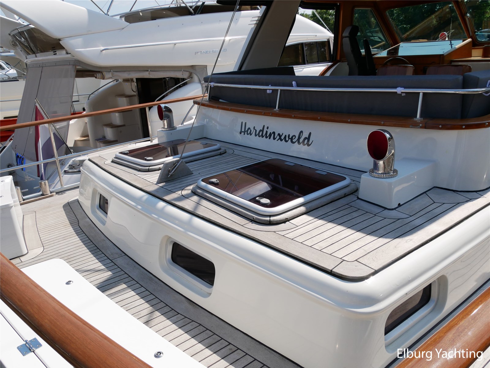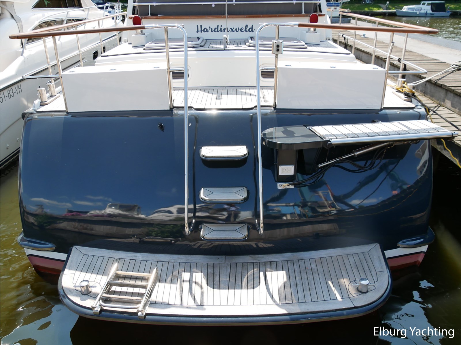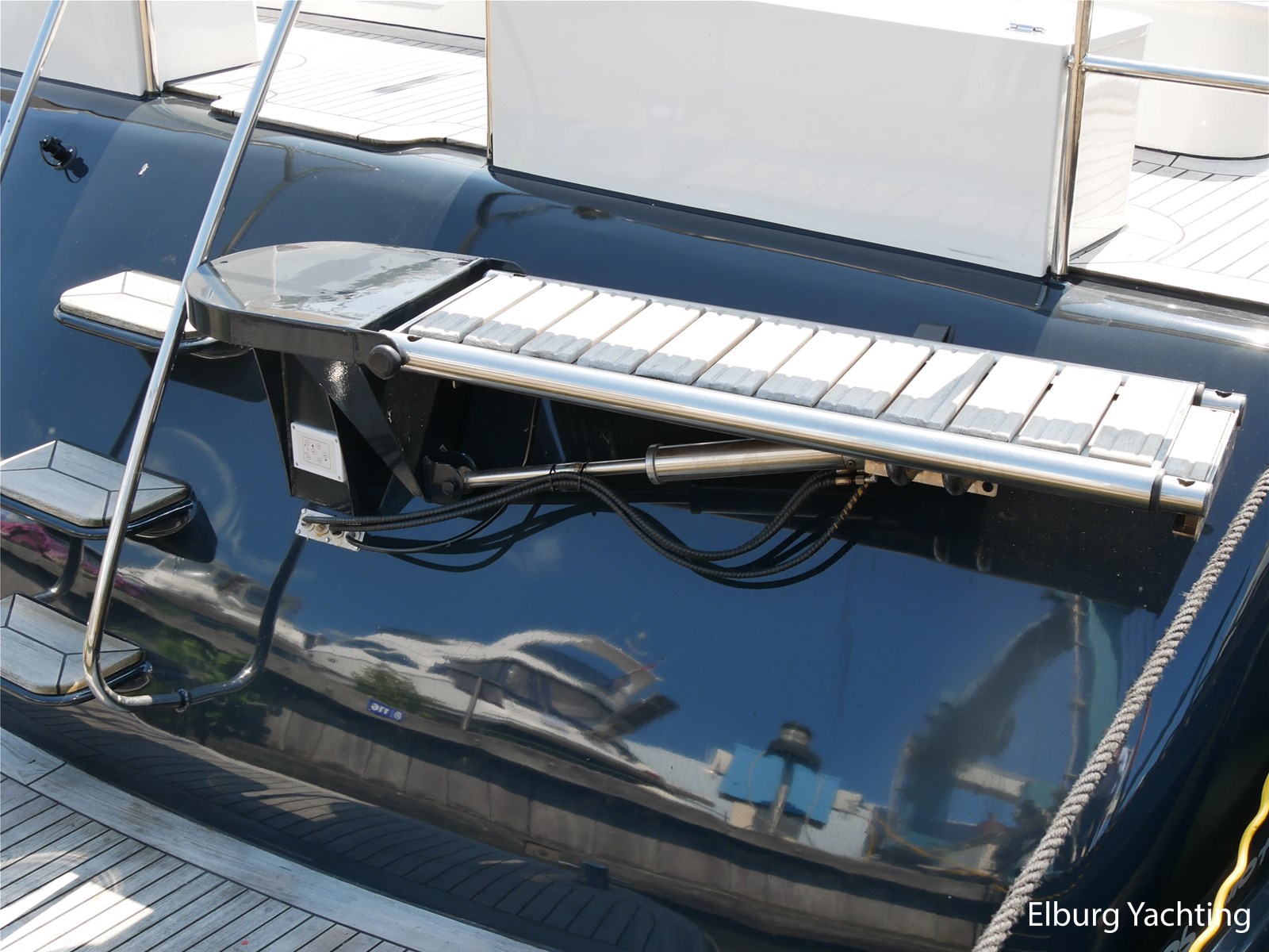 - Geintegreerd met teak dek + r.v.s. zwemtrap