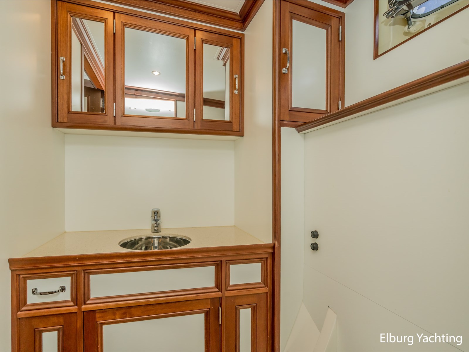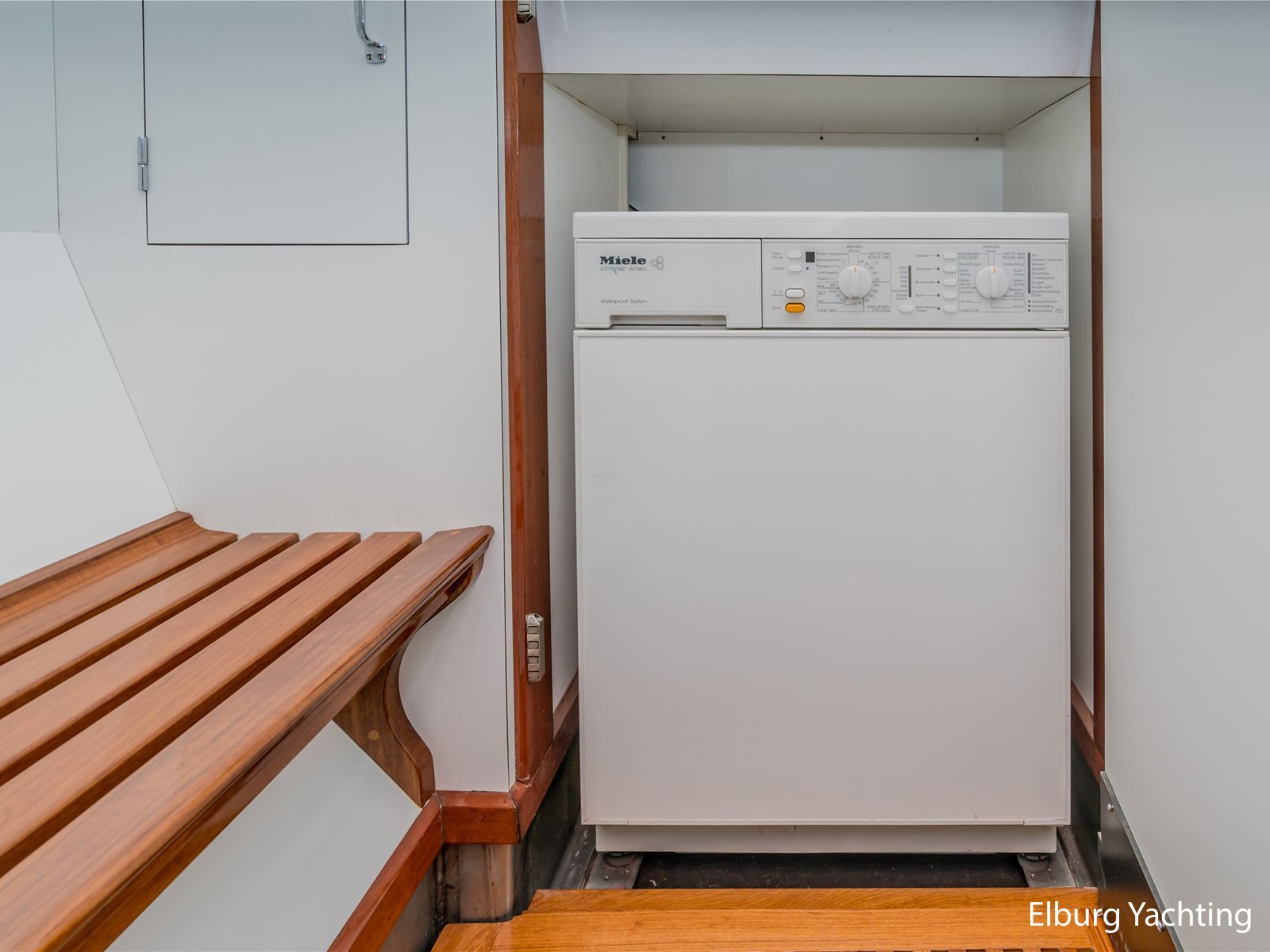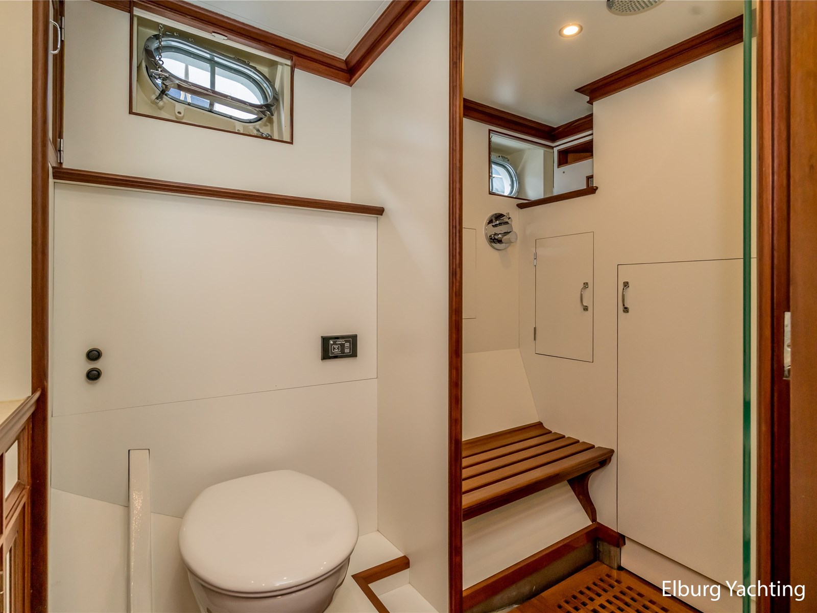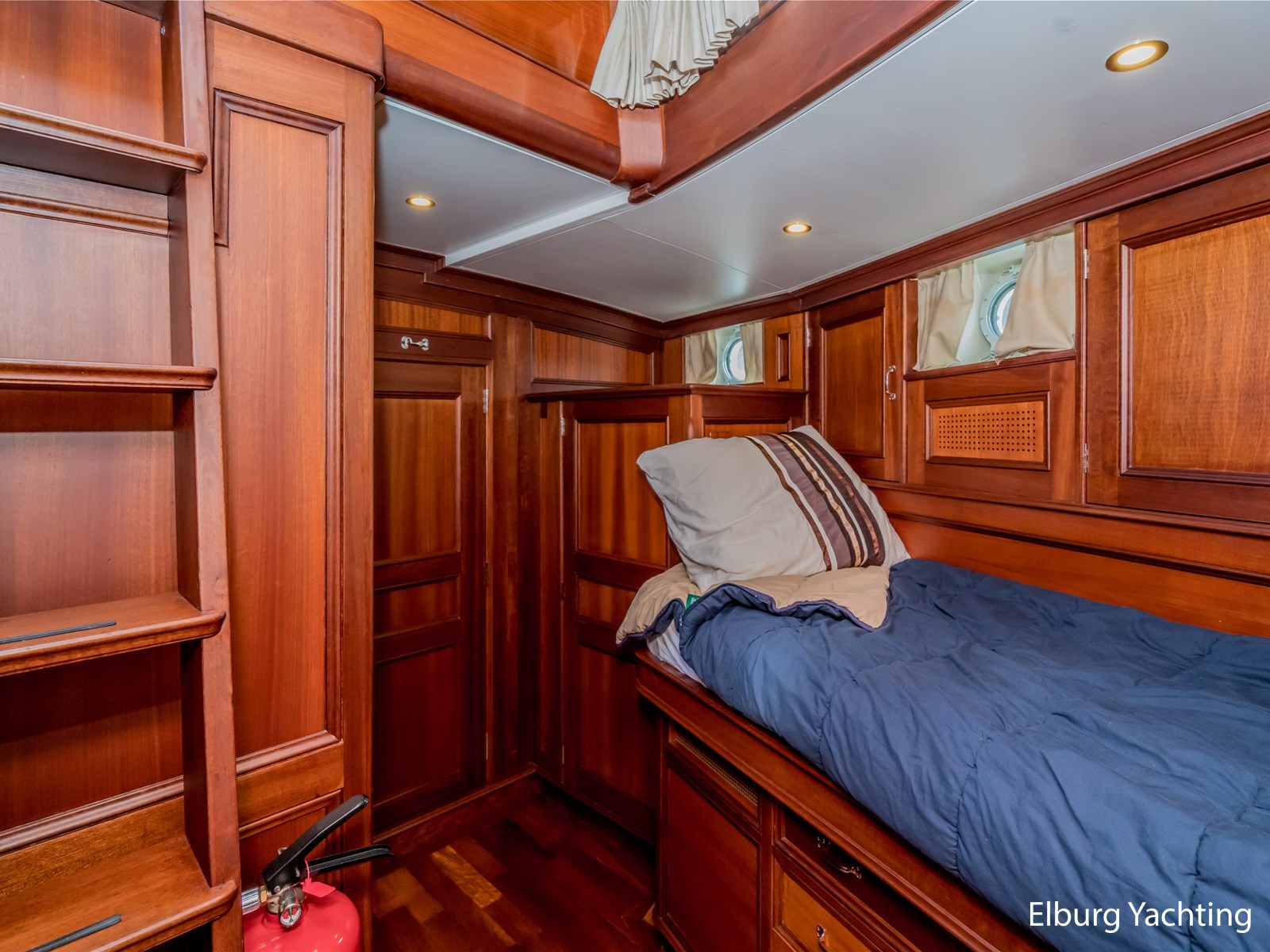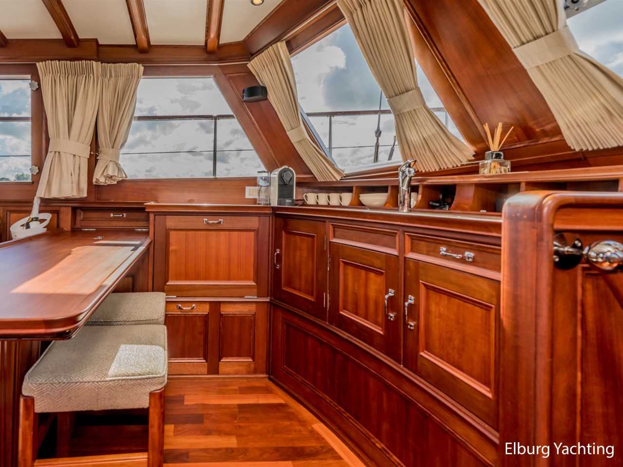 De Lunstroo 56 - (Total Refit 2015) is een stuk maritieme geschiedenis en zonder twijfel een van de meest in het oog springende kotterjachten die rondvaart. Het schip is gelanceerd in 1974, maar heeft in 2015 een volledige refit ondergaan op bij Nicolaas Witsen, waar kosten nog moeite zijn gespaard. Het schip heeft 2 nieuwe Perkins motoren gekregen, welke bekend staan om het lage toerental en laag geluidsniveau. Tijdens de refit is o.a. het volgende uitgevoerd : Nieuw massief teakdek (22 mm), nieuw teak kajuitdak (15 mm), Alle gelakte teakhout elementen van de kajuitopbouw zijn nieuw vervaardigd, verchroomde patrijspoorten, nieuw verpakte raamframes, de gehele elektrische installatie is vernieuwd incl. pompen en andere apparaten, nieuwe navigatieapparatuur, nieuw schroefassen, schroefaslagers, stuwdruklagers en schroeven. Alle tanks zijn open geweest, schoongemaakt en geïnspecteerd. (Zowel diesel, water en vuilwatertanks.), Leidingwerk is gemeten op wanddikte. Romp geschilderd in Awl Grip. Al het blanke lakwerk met impregneerhars en Dubbel UV Coating van Dubbelcoat Van de IJssel. (met uitzondering van de rondhouten), Motorbediening Morse omgebouwd tot elektronische bediening, Kabola CV met warmwatervoorziening gemonteerd, nieuwe stoffering, nieuw matrassen. De Lunstroo 56 beschikt over veel leefruimte in de salon en op het achterdek. Het is een uniek motorjacht met hoogwaardige afwerking met modern comfort en nieuwe techniek, geschikt om voor langere tijd op te verblijven. R.v.s. reling, r.v.s stootlijst, ruime zitgelegenheid in de salon, 7 slaapplaatsen, chroom omrand windscherm, achteringang, 2 x vluchtluik voorin, Miele wasmachine, stahoogte ca. 2 meter, achterhut geschikt voor crewcabine (incl. entree machinekamer), goed geïsoleerde machinekamer. Stereoset BOSE Binnen en Buiten (2015), Lowe TV + Lift (2015), CVO certificaat aanwezig, bilge alarm aanwezig in 3 zone’s . De huidige eigenaar heeft om makkelijker lage bruggen te passeren de voormast gedemonteerd en droog opgeslagen en de achtermast klapbaar gemaakt d.m.v. een lier. Ook is in de stuurboord hut één van de stabelbedden weggenomen om meer ruimte te creëren. De doorvaarthoogte met mast op is ca. 8,40m en met geklapte mast en kuipramen geklapt ca. 2,90m.