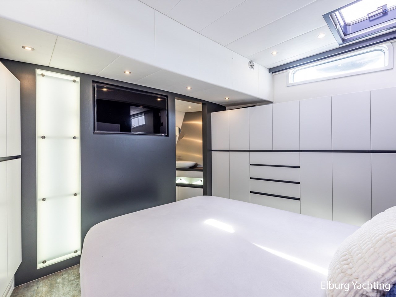 - Kabola HR 500 (19,7 kW) met vloerverwarming door gehele schip + Mar-IX airco in eigenaarshut op 24 Volt