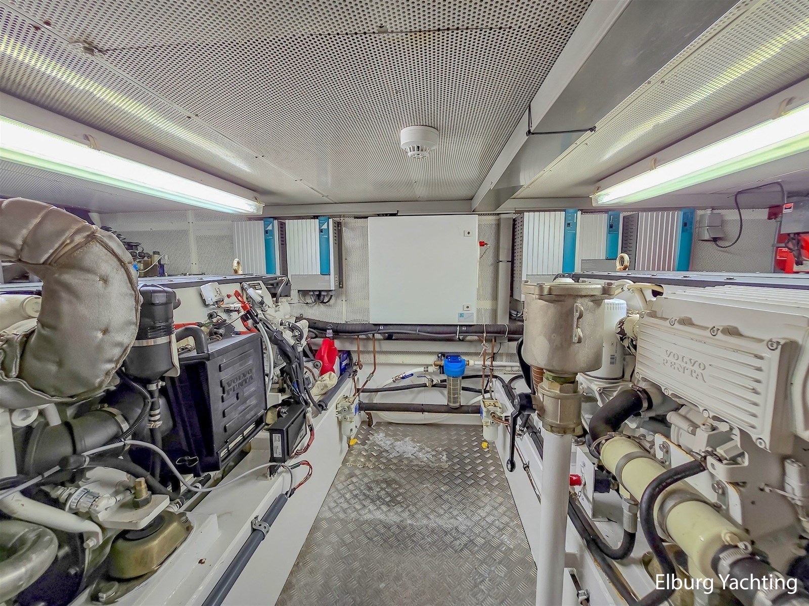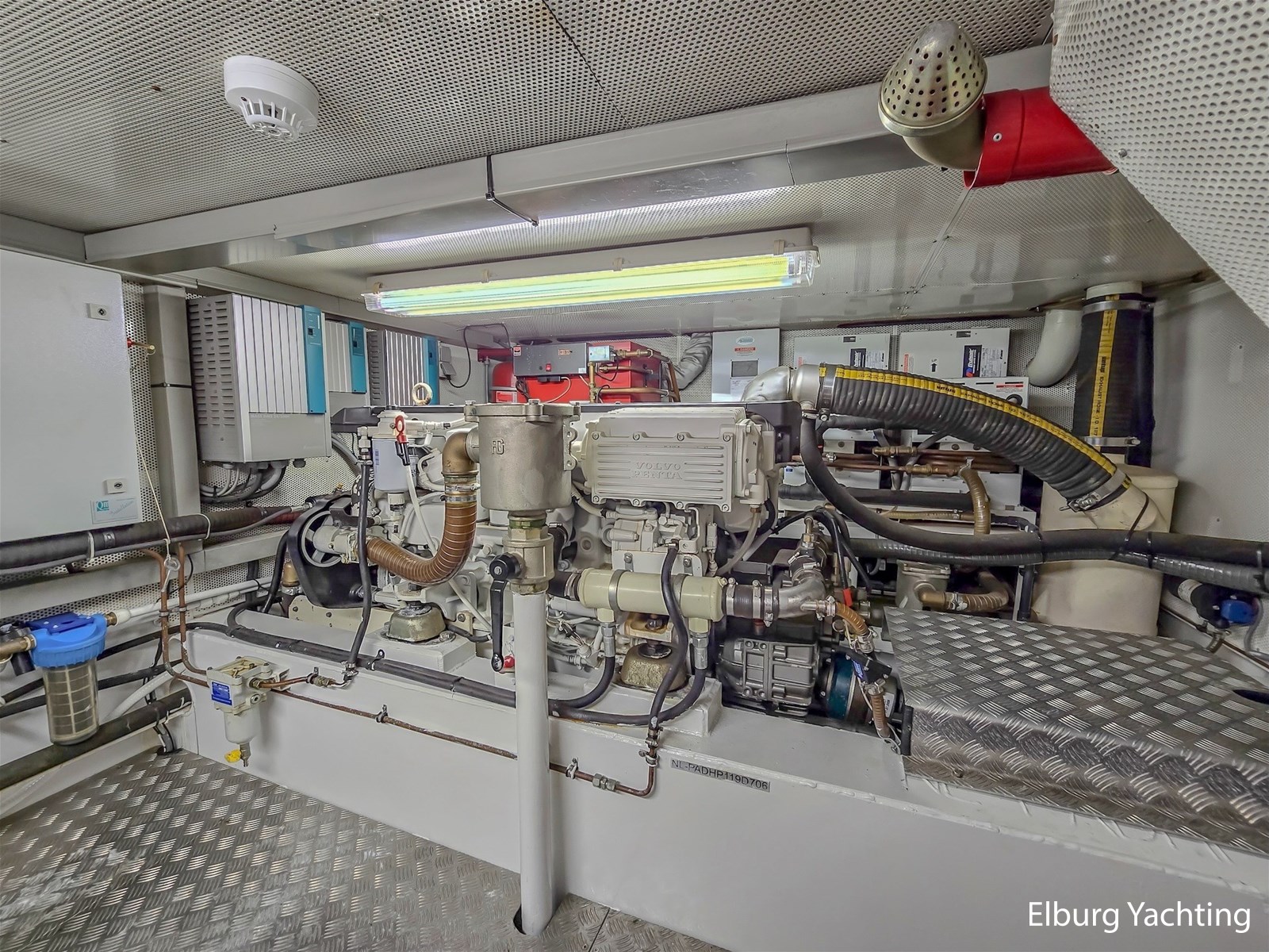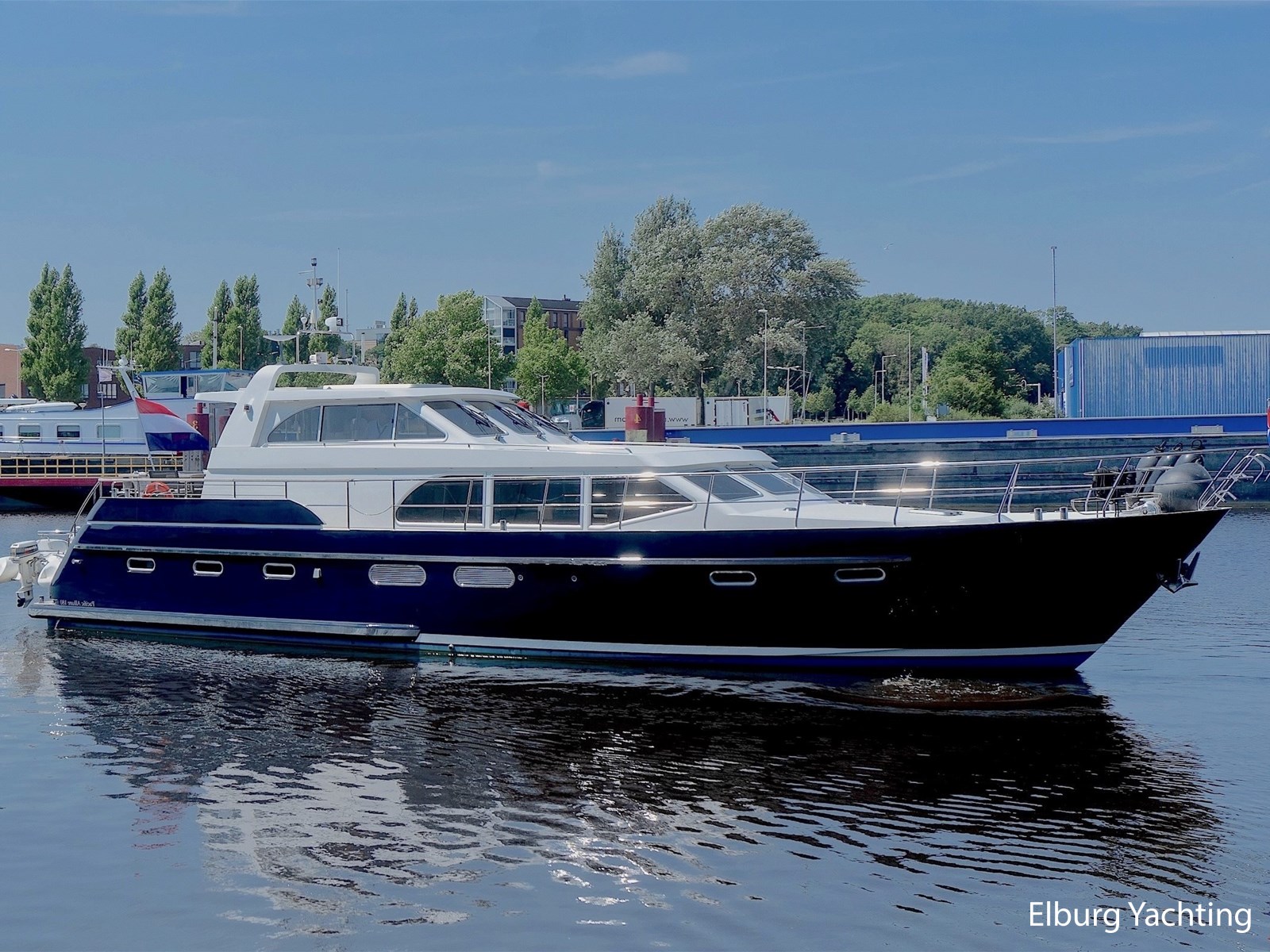 De combinatie van haar stille dubbele Volvo Penta D6-310 pk motoren, boeg-/ hekschroef en haar op afstand bedienbare dockingsysteem maakt manoeuvreren in havens en sluizen eenvoudig. Met haar ROTOSWING stabilisatoren is ze ideaal voor langere afstanden en het bevaren van rivieren. Haar marineblauwe romp en witte bovenzijde zijn in 2023 professioneel overgeschilderd in Alexseal. De teakhouten dekken zijn opnieuw gekit en licht geschuurd in 2023.