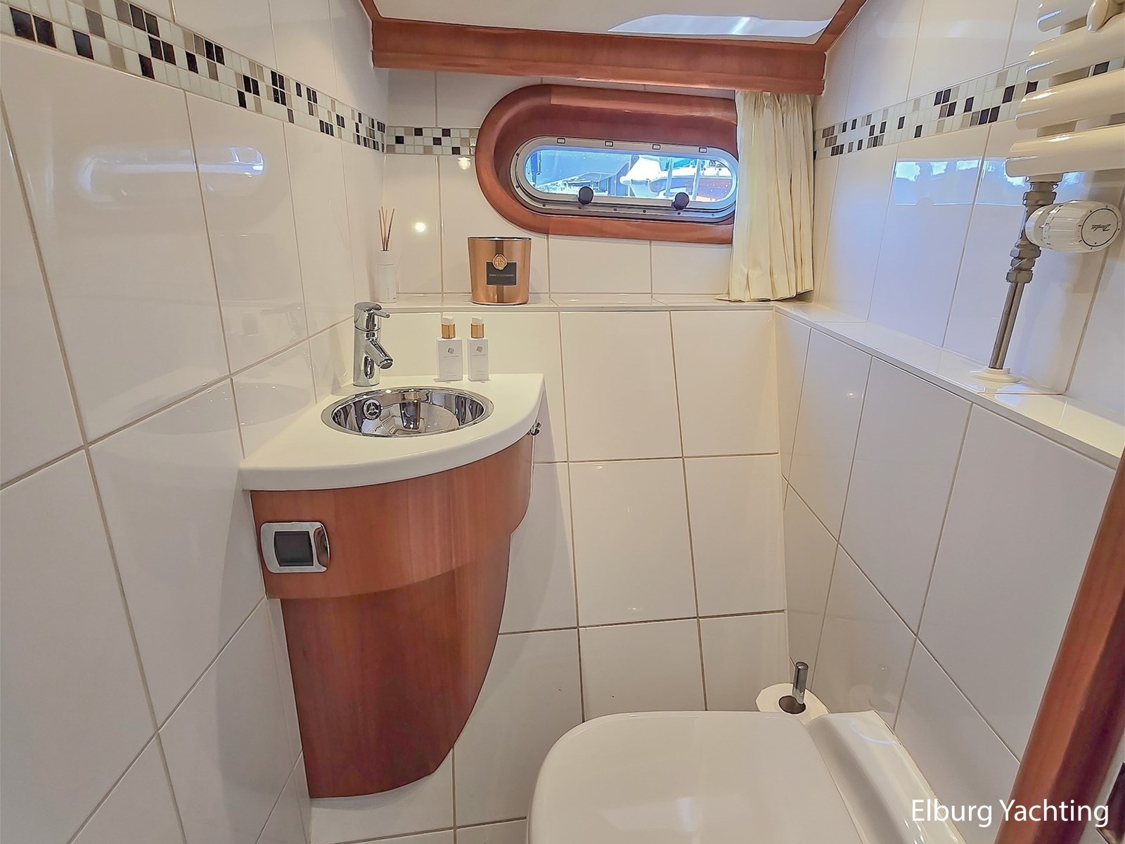 - Kersen + lederen bekleding + teak vloer in stuurhut en keuken