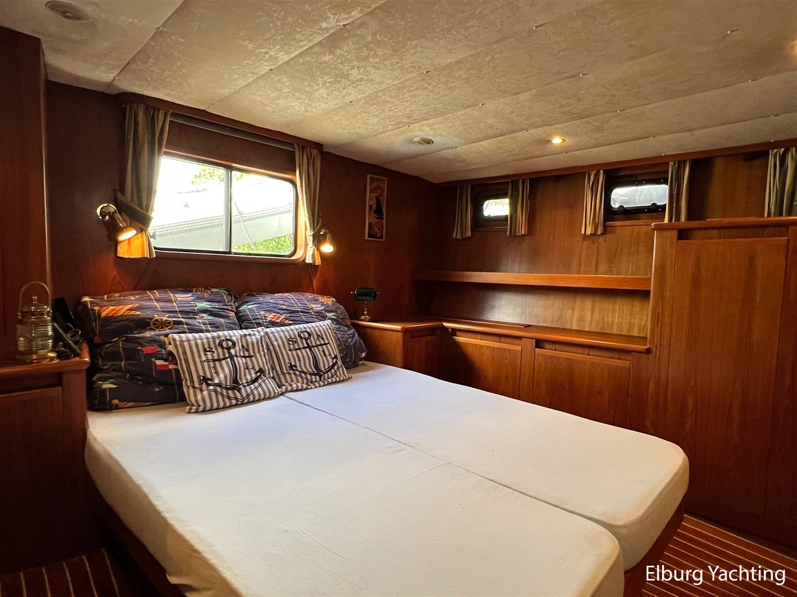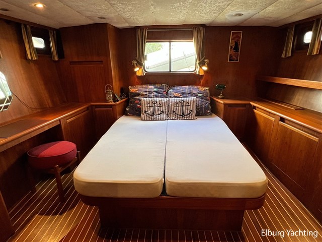 Deze Altena 48 Sedan met achterkajuit wordt verkocht door de eerste eigenaar! Het schip is van alle gemakken voorzien om ook permanente bewoning aan boord mogelijk te maken. Door zijn praktische indeling en uitgebreide techniek aan boord is dit een heerlijk vaar- en leefschip. In het oogspringende eigenschappen van dit schip zijn de 3 hutten indeling met dubbele badkamer, ruime salon, dubbel glas, centrale verwarming, hydraulische boegschroef en KOOP-Nautic vin stabilisatoren. Deze Altena 48 Sedan is o.a. voorzien van: Volledig afsluitbare tent over het achterdek, ruime buiten zit met geïntegreerde bank inclusief bijbehorende kussens, in vier delen te openen deuren naar het stuurhuis om binnen en buiten met elkaar te verbinden, vast stuurstoel met meevaarzit, Afneembare zonneschermen rondom ramen stuurhuis, hydraulisch klapbare mast, r.v.s. fenderhouders op voordek, horren voor patrijspoorten, half ronde trap naar het zwemplateau, TV in salon, veel kast ruimte met hang en leg mogelijkheid, buitenverlichting, Eumenia wasmachine, Megasat ontvanger.