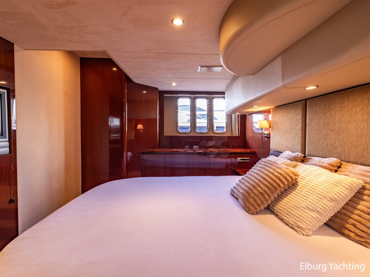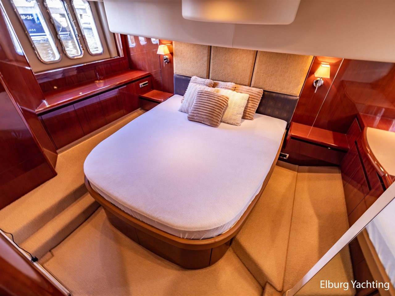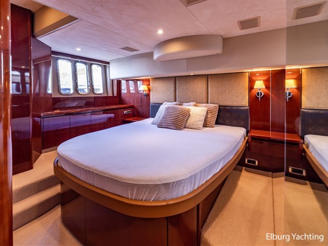 De Princess 58 Flybridge heeft drie ruime hutten waarvan twee met en-suite faciliteiten. Ook beschikt het jacht over een crew cabin die bereikbaar is via de kuipbank. De owners cabin is midscheeps met prachtige raampartijen die zorgen voor veel lichtinval, een mooi uitzicht en te openen zijn voor ventilatie.