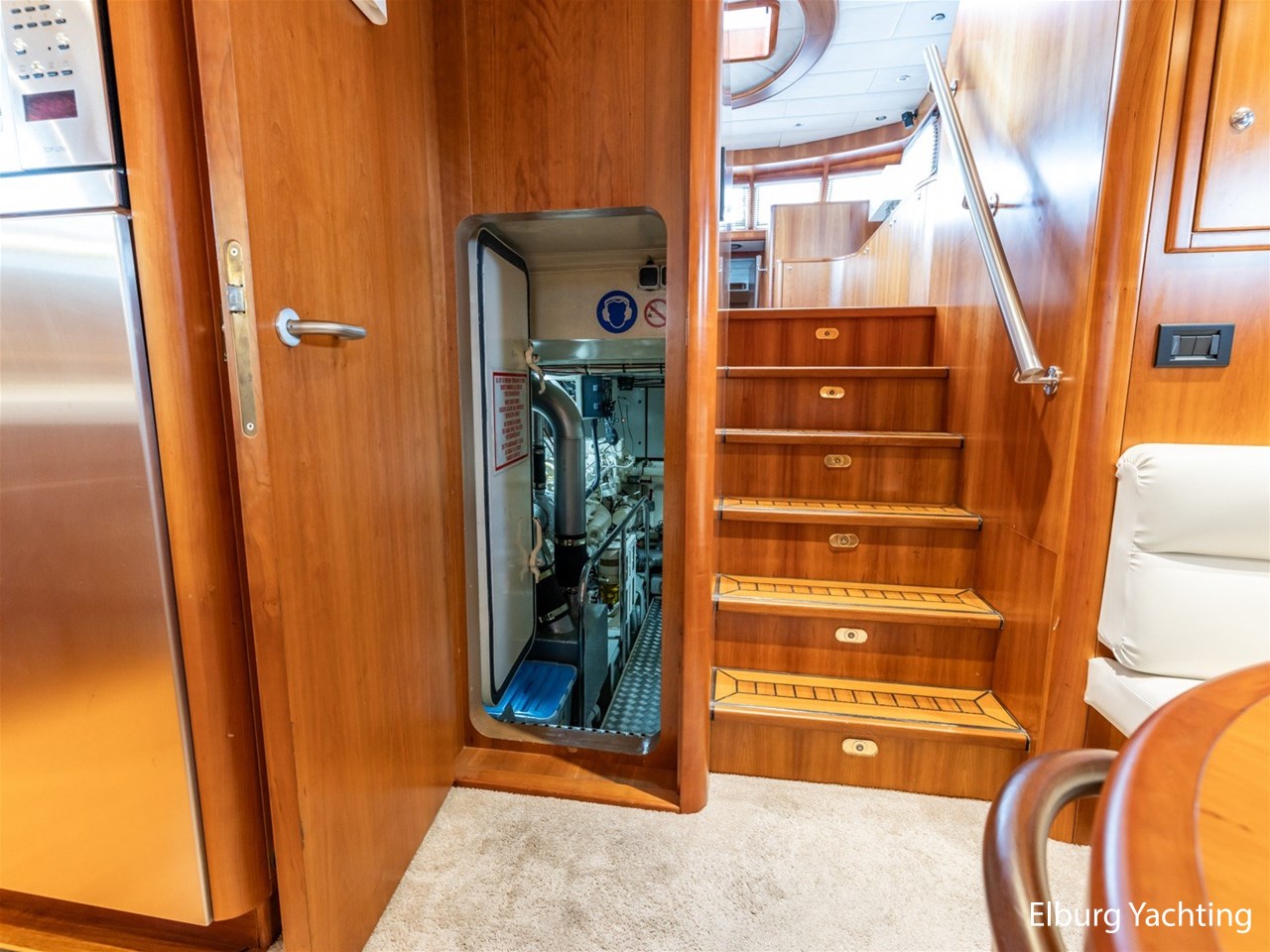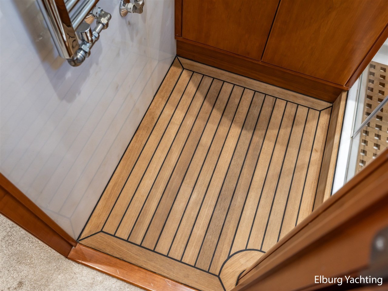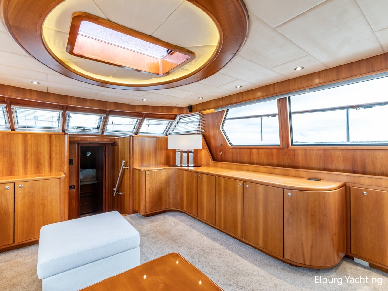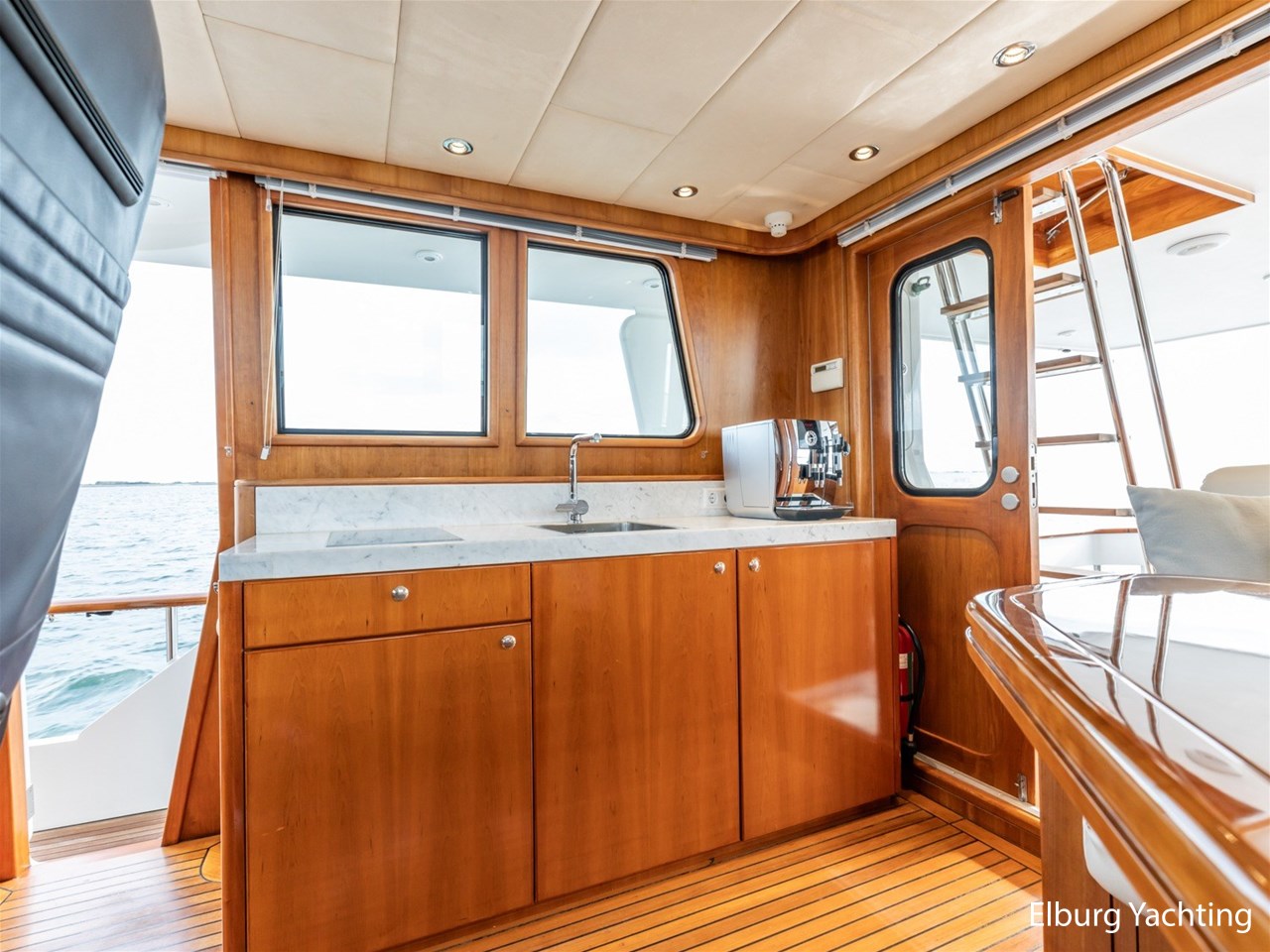 - Kersen scheepsinterieur + alcantara plafonddelen + teak vloer in de keuken