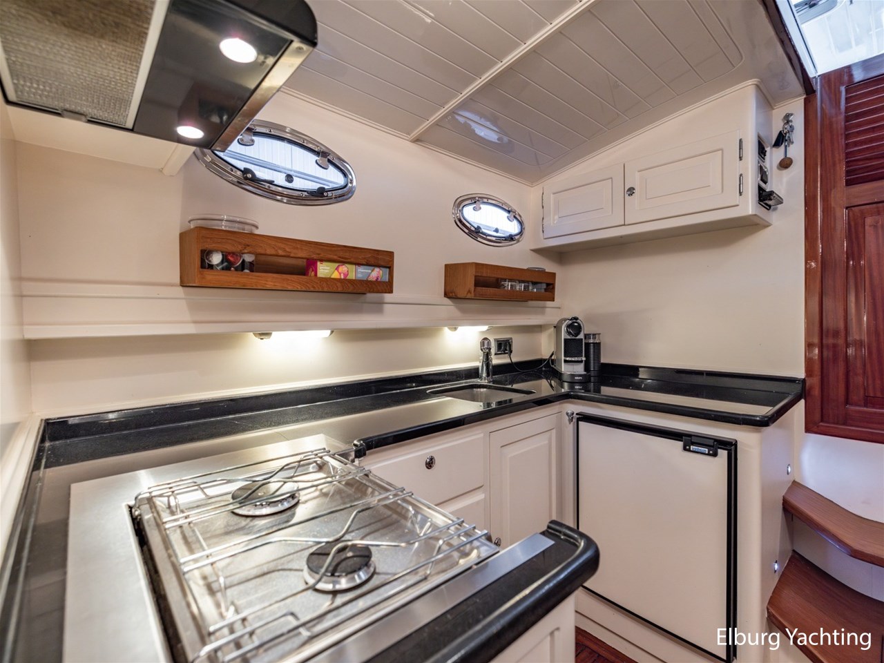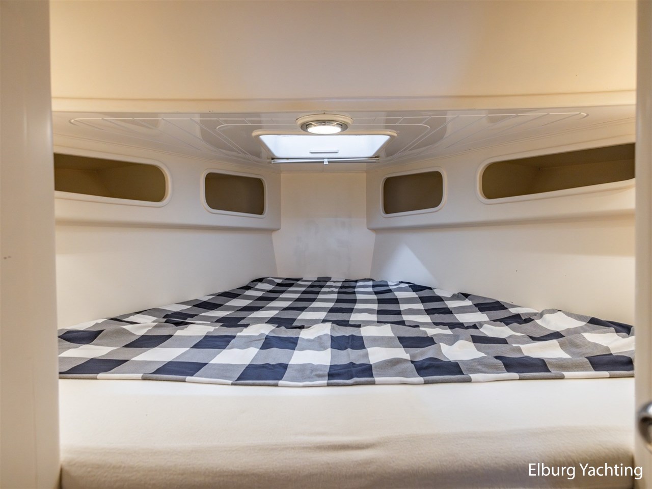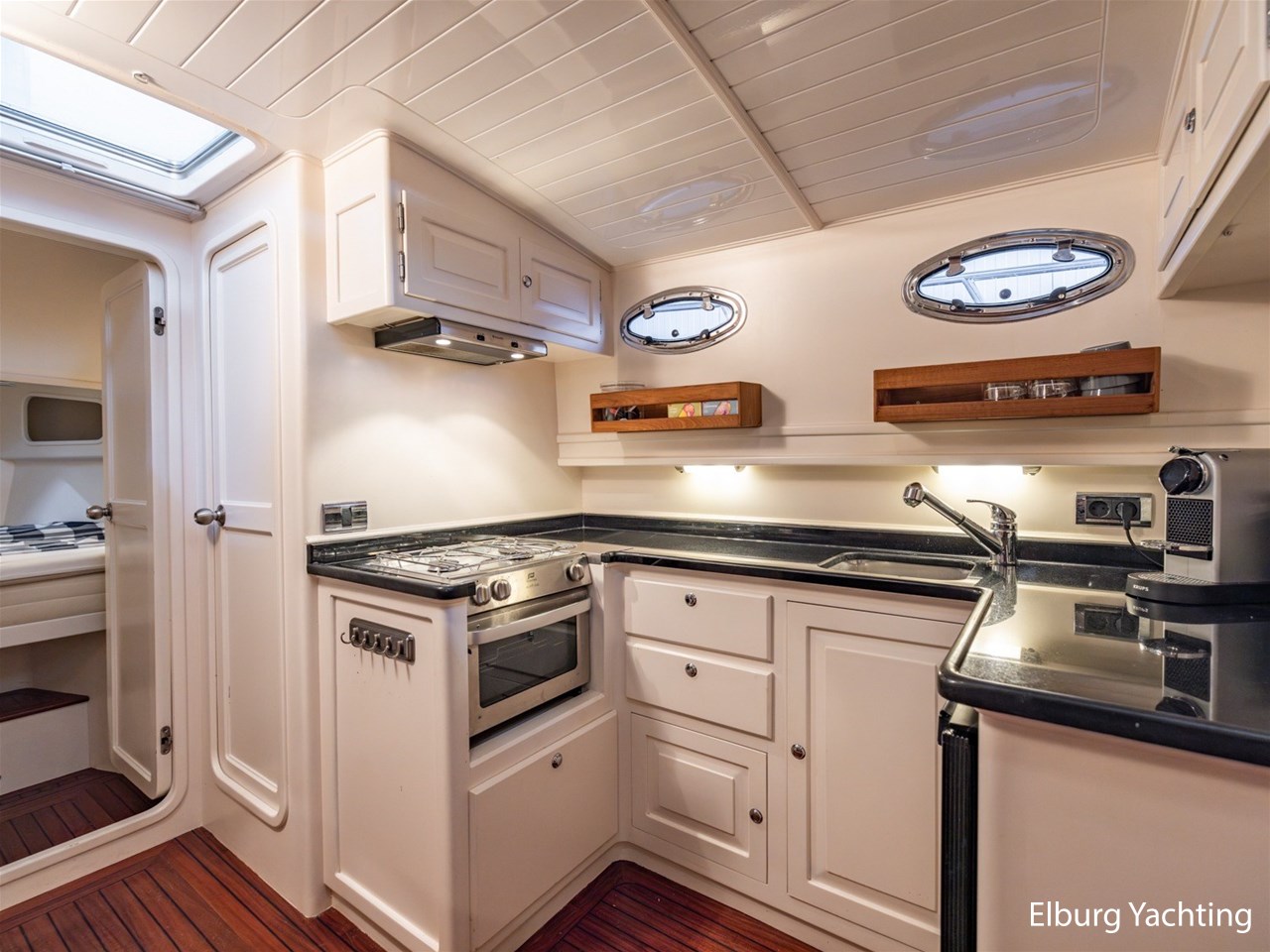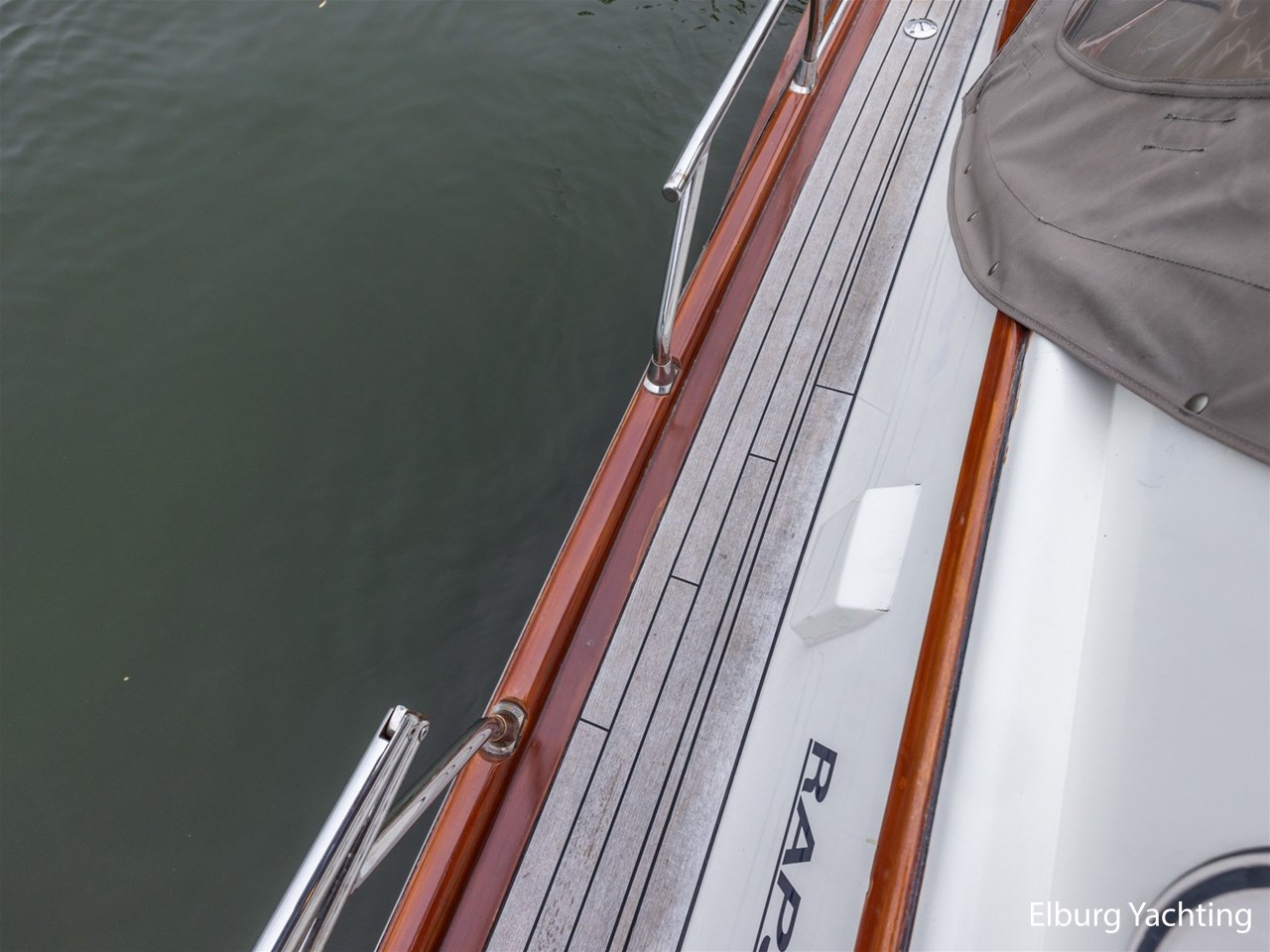Uiterst fraaie Rapsody 40 Offshore uit bouwjaar 2002 - voorzien van een prachtig Teakdek met gelakte omlijsting en r.v.s. zeerailing. Het jacht beschikt over een prachtige klassieke lijn met moderne ingrediënten zoals de ruime open kuip en het frisse lichte interieur. Het jacht is rondom voorzien van een Teakdek en is afgewerkt met gelakt Teak (zowel de opbouw, het dek en het zwemplateau). De ruime kuip beschikt over een prettige zitgelegenheid, een ijskast en veel bergruimte onder de banken. De stuurstand met nabijgelegen dinette is gezellig gesitueerd onder het vaste dak. Het vaste dak beschikt over twee dakluiken en twee schuiframen aan de zijden. De stuurstand is overzichtelijk vormgegeven en beschikt over onder andere een functioneel Stentec navigatiesysteem, boegschroef, motorbediening en dieptemeter . Aan boord is de kombuis aan stuurboord gesitueerd met de tweede dinette aan bakboord. De kombuis is ruimtelijk georganiseerd met een Plastimo kooktoestel + oven, koelkast, spoelbak en veel kastruimte. Voorin is de eigenaarshut gesitueerd met nabijgelegen toilet en douche. De doorvaarthoogte is ca. 3.65 meter met een minimale kruiphoogte van ca. 2.70 meter. Voor vragen en/of het maken van een afspraak bent u 7 dagen per week van harte welkom bij Elburg Yachting.