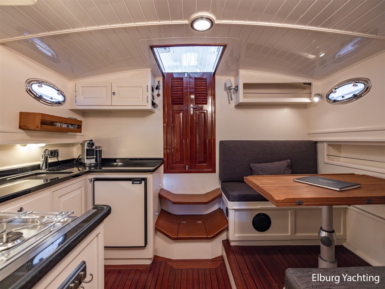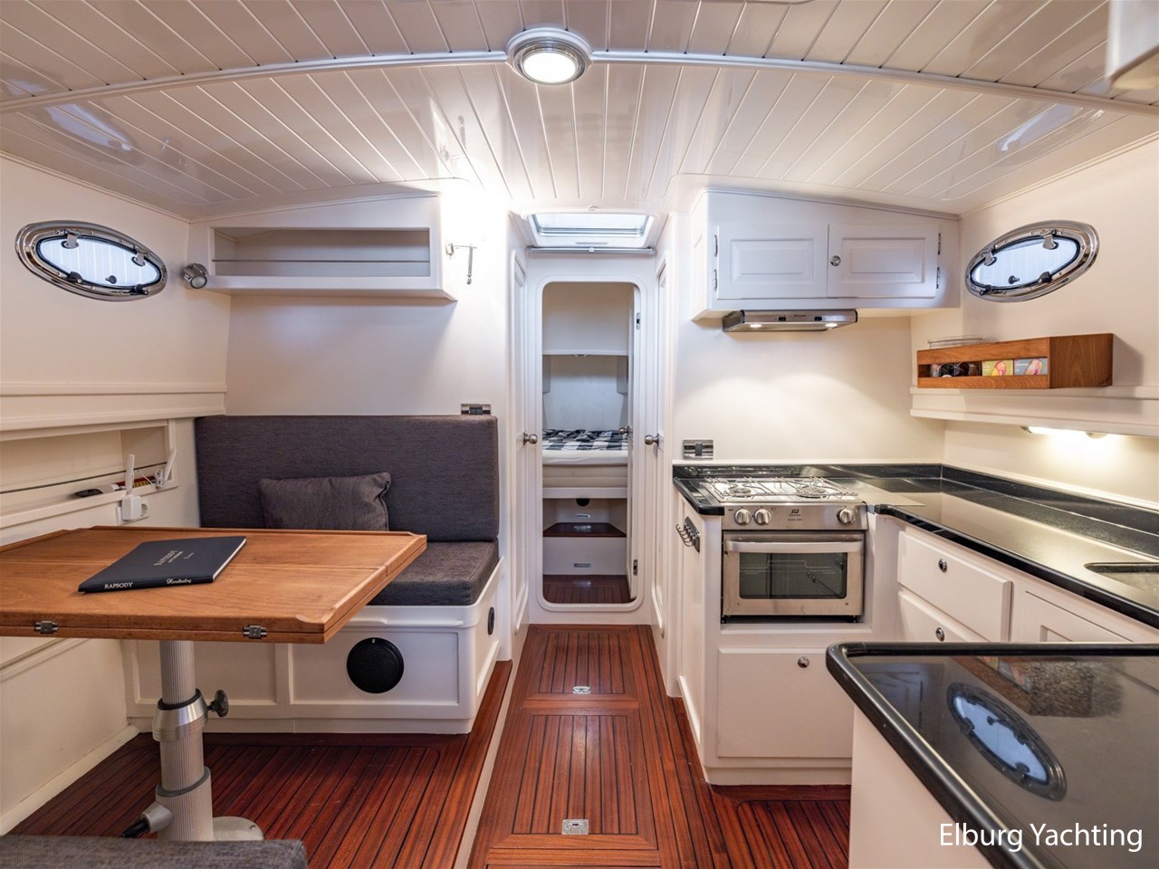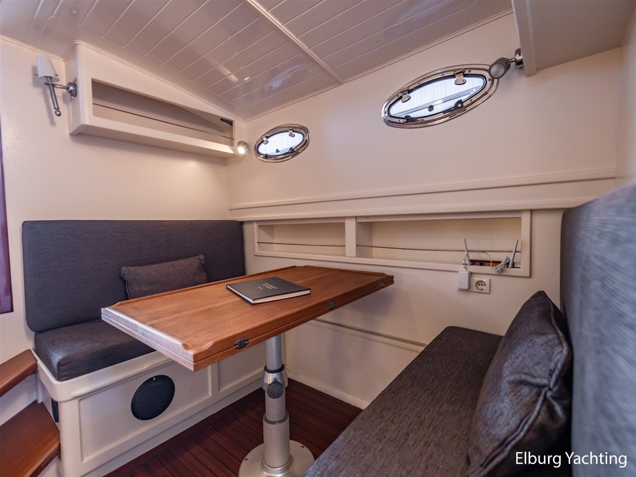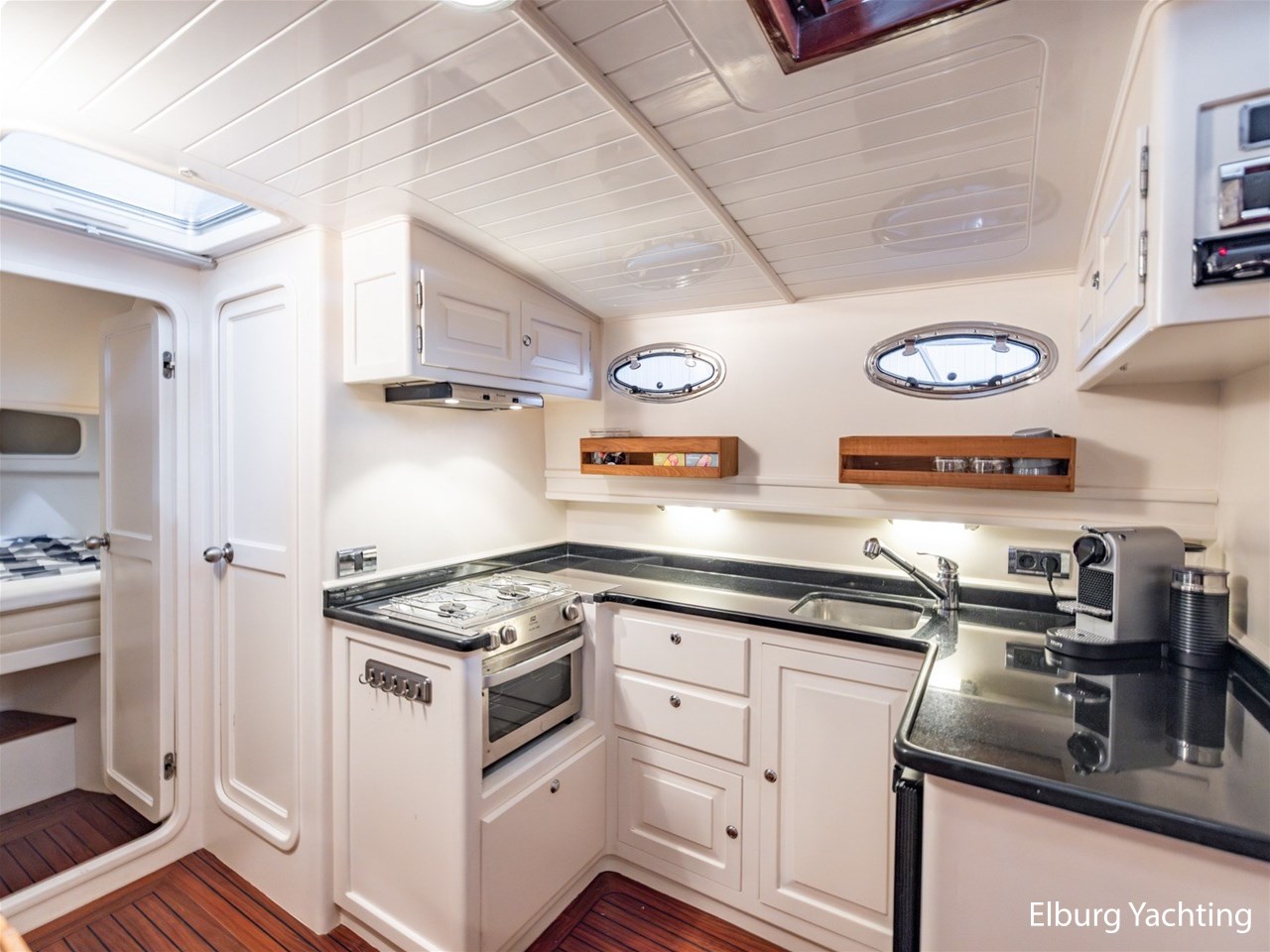 Uiterst fraaie Rapsody 40 Offshore uit bouwjaar 2002 - voorzien van een prachtig Teakdek met gelakte omlijsting en r.v.s. zeerailing. Het jacht beschikt over een prachtige klassieke lijn met moderne ingrediënten zoals de ruime open kuip en het frisse lichte interieur. Het jacht is rondom voorzien van een Teakdek en is afgewerkt met gelakt Teak (zowel de opbouw, het dek en het zwemplateau). De ruime kuip beschikt over een prettige zitgelegenheid, een ijskast en veel bergruimte onder de banken. De stuurstand met nabijgelegen dinette is gezellig gesitueerd onder het vaste dak. Het vaste dak beschikt over twee dakluiken en twee schuiframen aan de zijden. De stuurstand is overzichtelijk vormgegeven en beschikt over onder andere een functioneel Stentec navigatiesysteem, boegschroef, motorbediening en dieptemeter . Aan boord is de kombuis aan stuurboord gesitueerd met de tweede dinette aan bakboord. De kombuis is ruimtelijk georganiseerd met een Plastimo kooktoestel + oven, koelkast, spoelbak en veel kastruimte. Voorin is de eigenaarshut gesitueerd met nabijgelegen toilet en douche. De doorvaarthoogte is ca. 3.65 meter met een minimale kruiphoogte van ca. 2.70 meter. Voor vragen en/of het maken van een afspraak bent u 7 dagen per week van harte welkom bij Elburg Yachting.