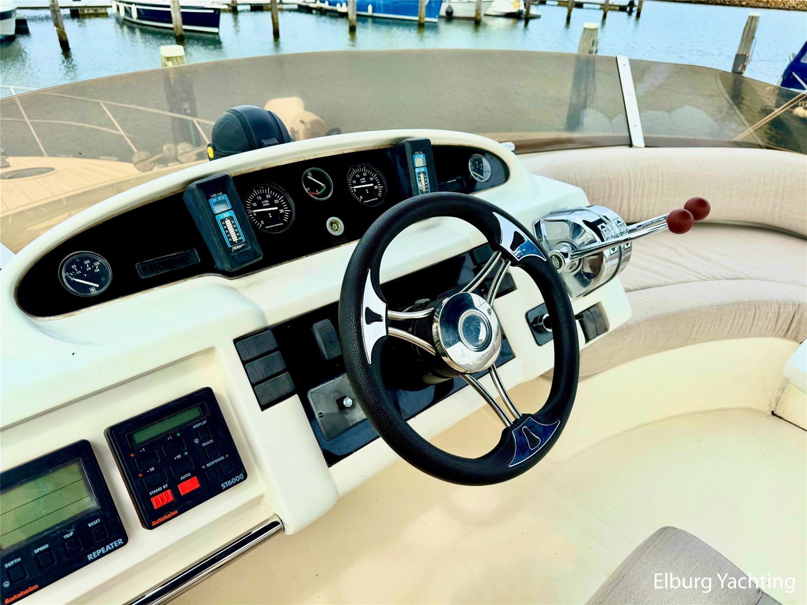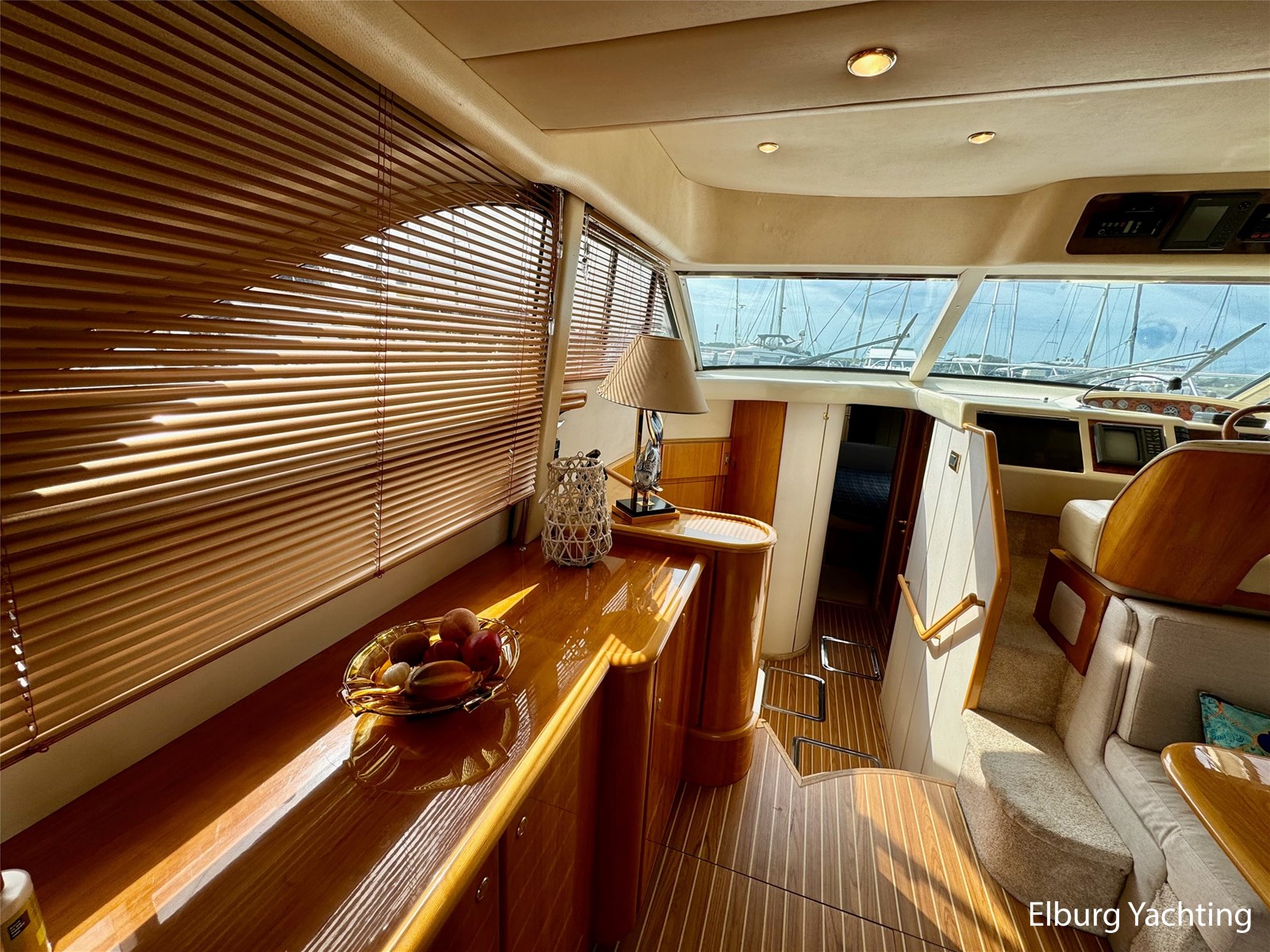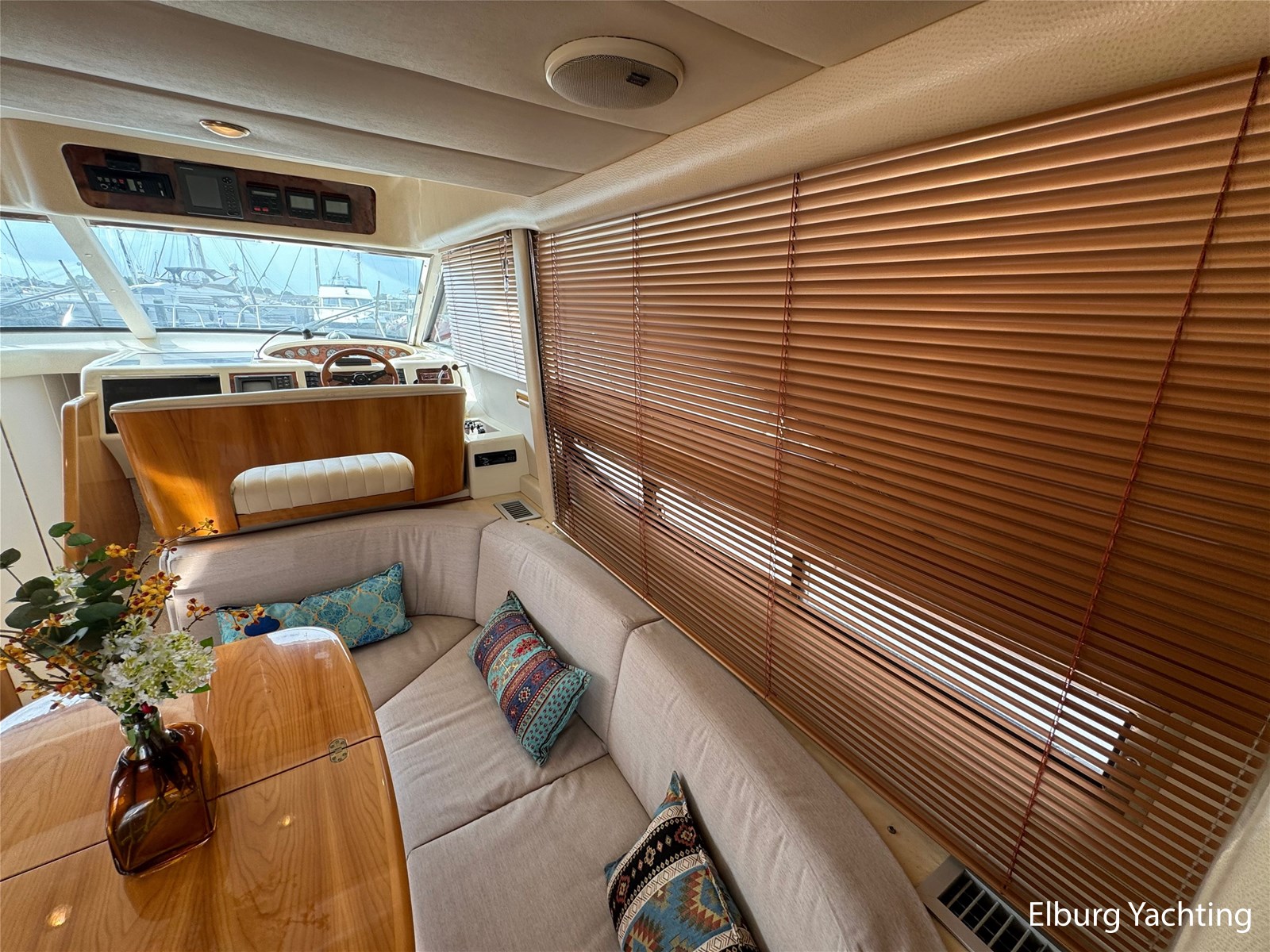 Het jacht heeft een luie trap naar de flybridge, salon, open kuip en zwemplateau gelijkvloers, biminitop op flybridge, nieuwe stoffering in 2024, nieuwe teaklook vloer in de salon, RVS reling rondom, meevaarbank bij stuurstand, RVS stootstrip rondom, de romp is gepolijst in 2024, antifouling 2024, , er is met zorg met het schip omgegaan.