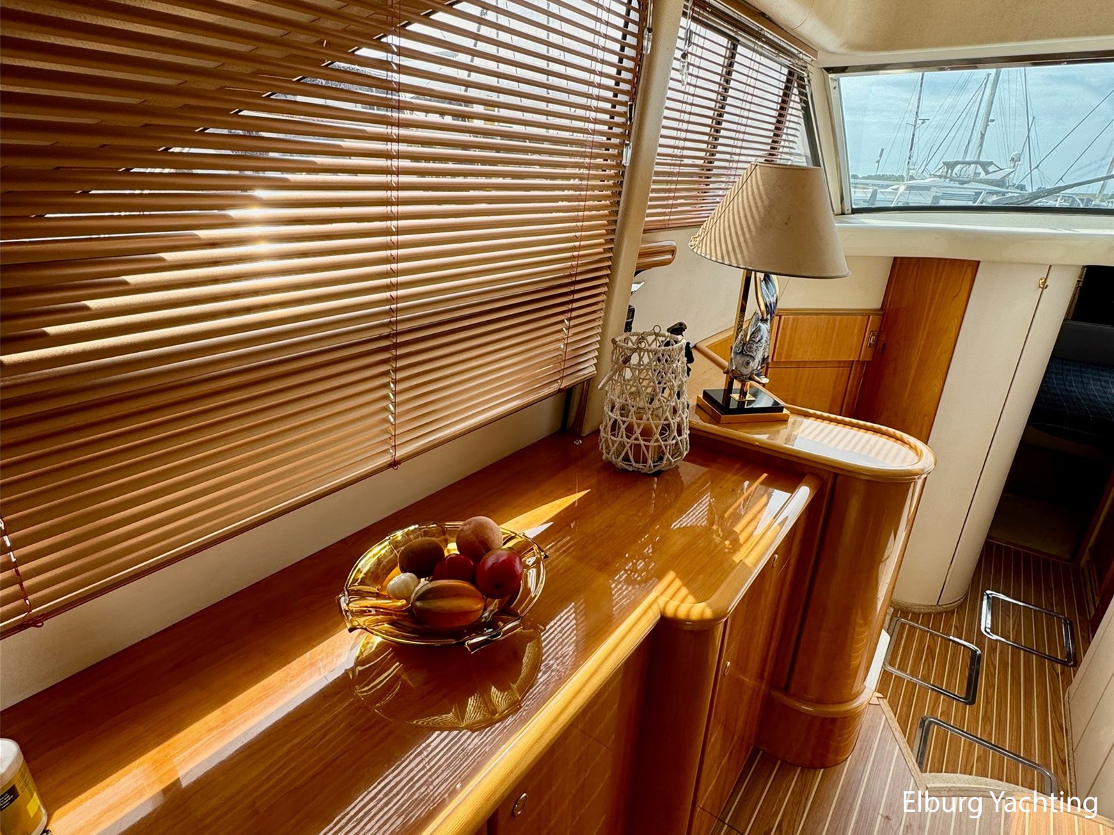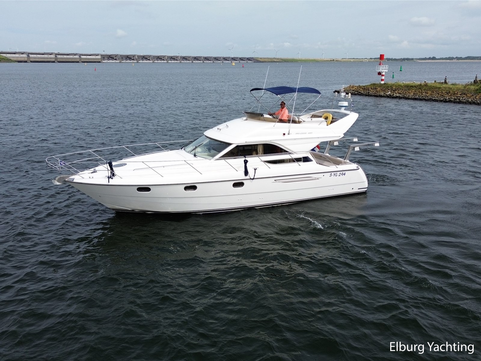 De Princess 420 is een sportief gelijnd, polyester jacht met flybridge. Het jacht beschikt over 2 hutten. Eigenaarshut met een 2 pers. bed, guestcabin heeft 2 x 1 pers. bed. Het jacht heeft een moderne uitstraling met hoogglans kersenhouten interieur.
