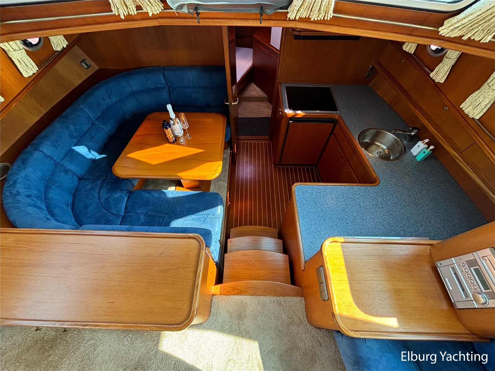 - 2 x (1 x ruime U-dinette t.o de kombuis + 1 x op het achterdek)