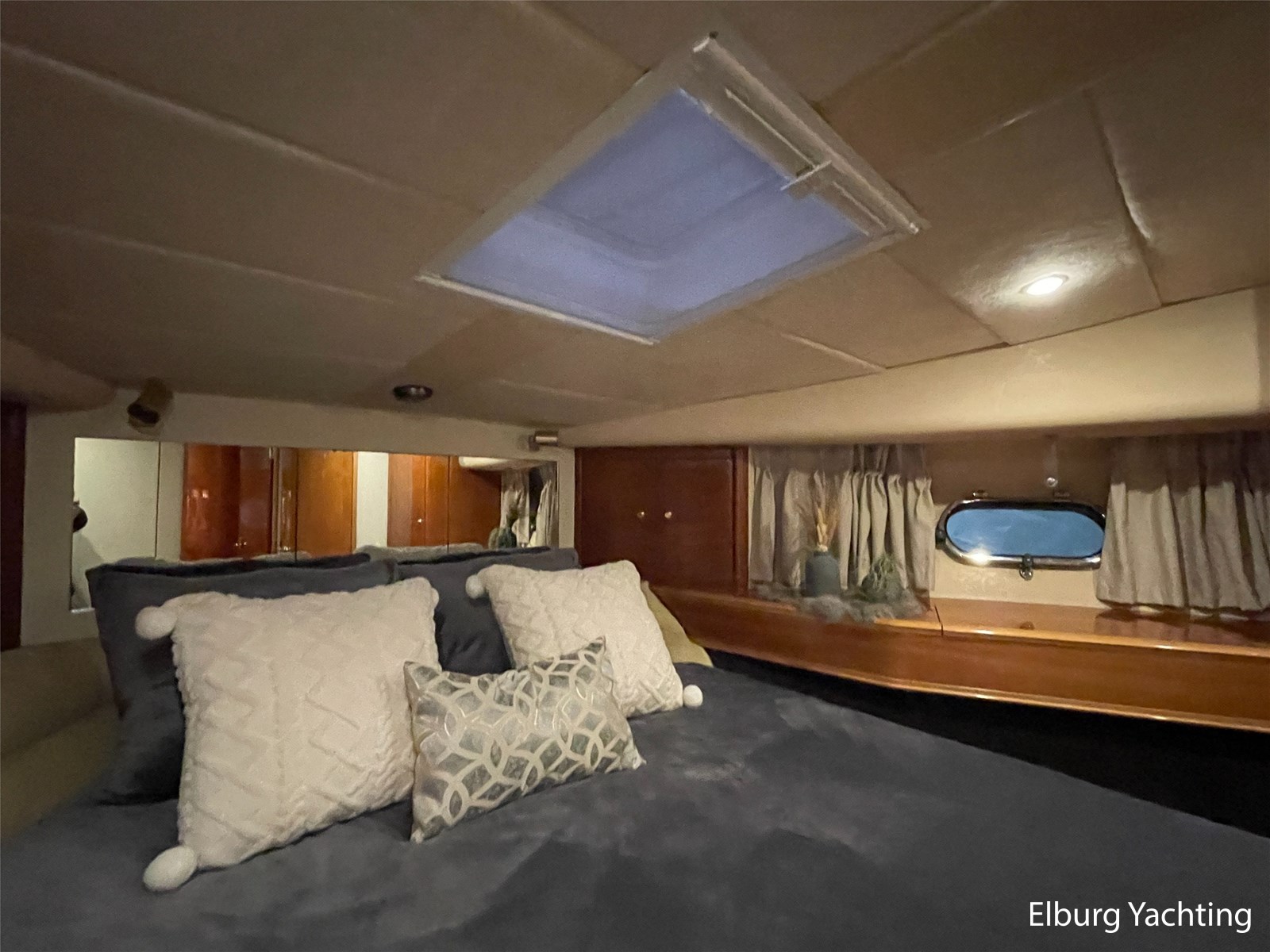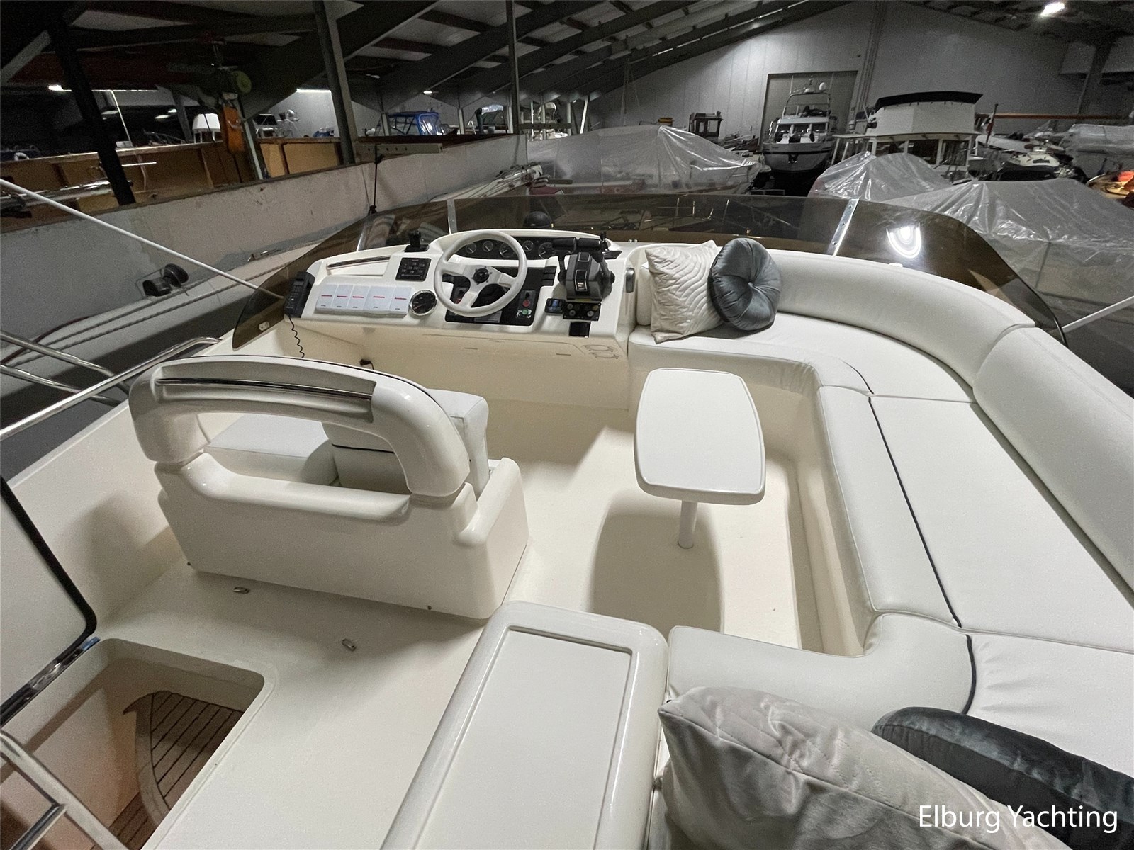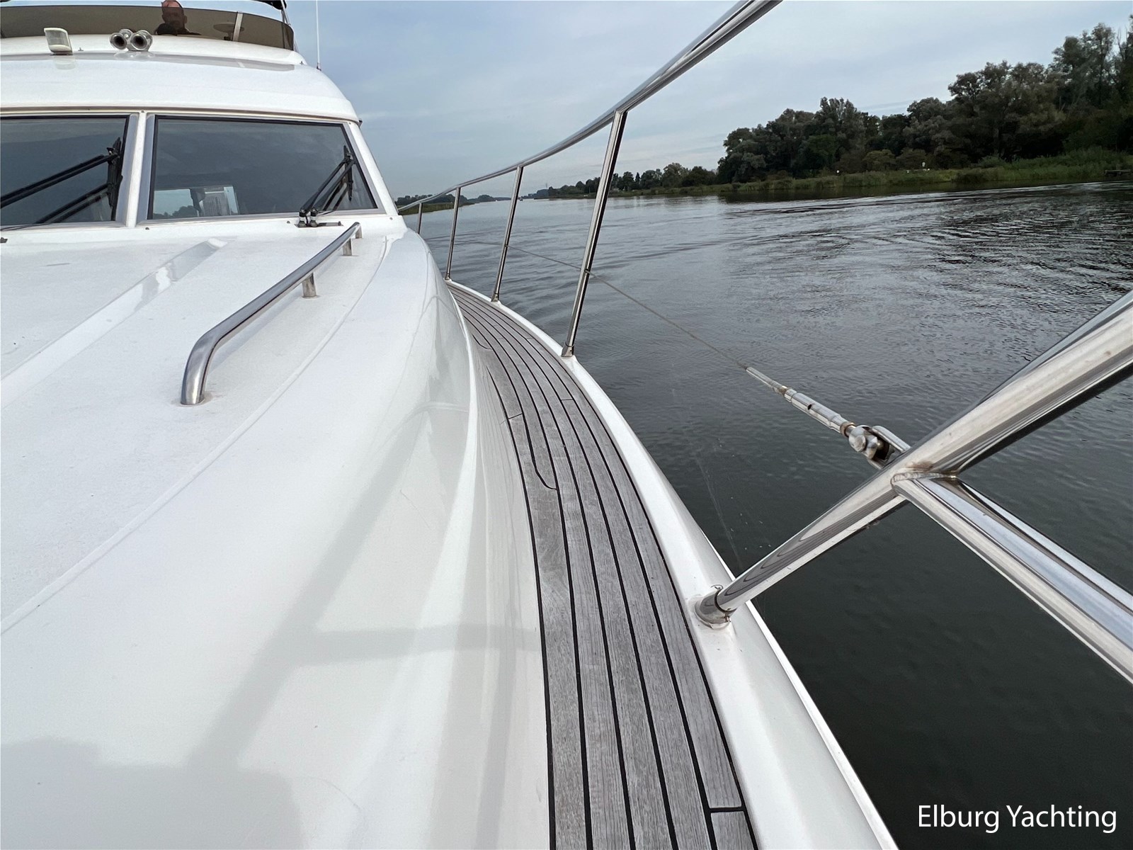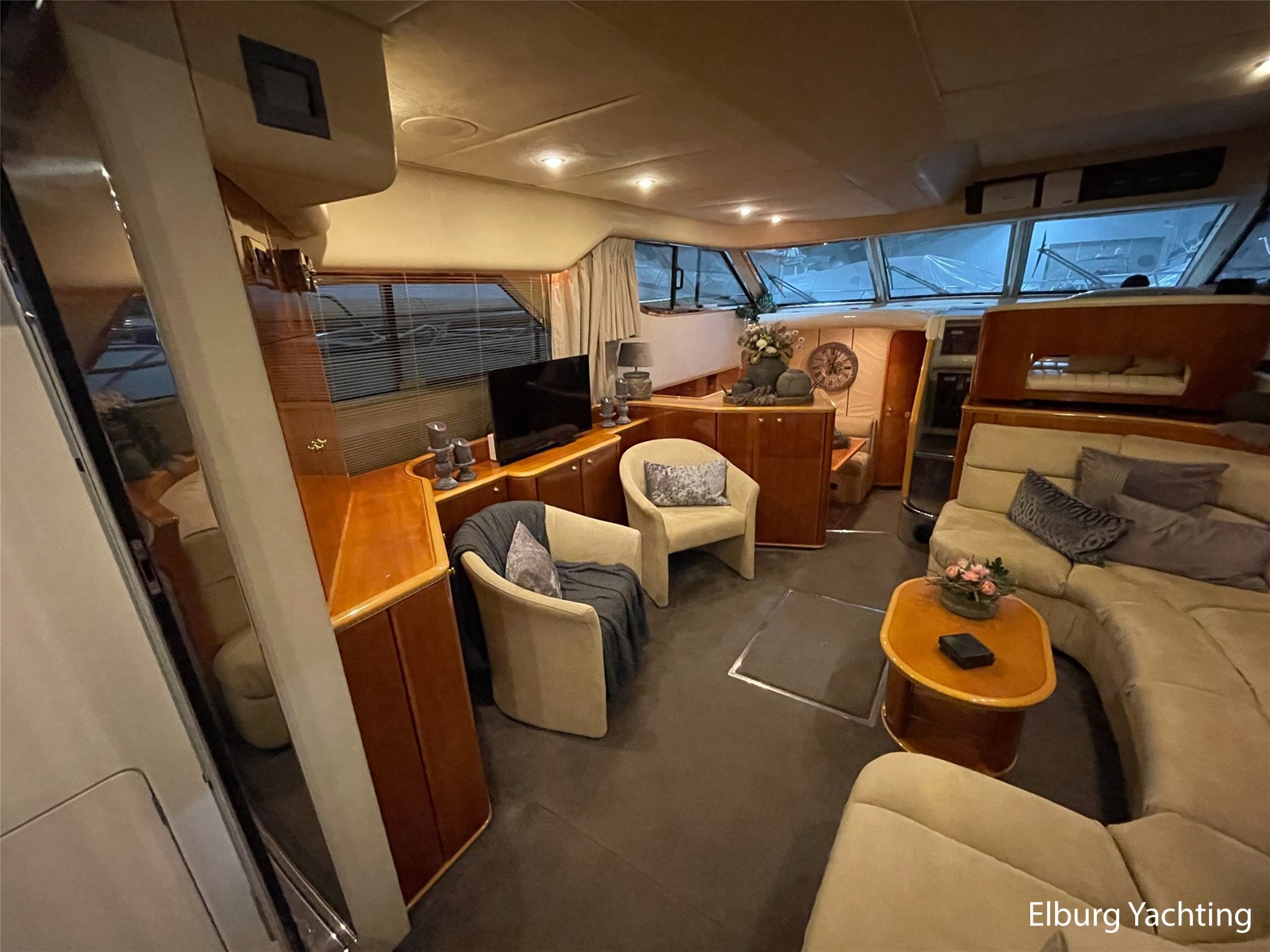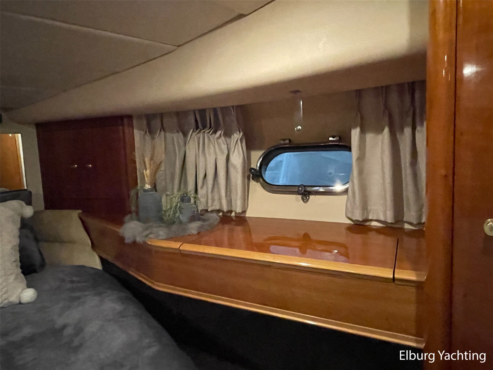 Prachtige Princess 480 Flybridge welke voorzien is van een zeer open en lichte salon / dinette indeling, twee comfortabele hutten en een ruime bering in het achterschip. Beide hutten hebben een 2-persoons bed met allebei toegang tot een eigen douche/toilet ruimte. Deze Princess 480 is uitgevoerd met: Vaste zitbank in open kuip met bijbehorende buitenkussens, de open kuip en salon gelijkvloers beloopbaar, r.v.s. schuifdeur naar salon, "luie" vaste trap naar flybridge, zonnebed op voordek, 2-persoons vaarbank op flybridge, trim tabs, volledige afsluitbare tent rondom kuip met uitristbare delen, r.v.s. buitenreling rondom, 2 x schuifraam in salon, biminitop op flybridge met afdekhoes 2024, buitendouche, ijsblokjesmachine, deur in spiegel naar zwemplatform, toegang machinekamer vanuit de open kuip en via salonvloer, zonneschermen rondom salonramen 2023, gordijnen in de salon vernieuwd in 2023. De verstuivers van de motoren zijn in 2024 gereviseerd, nieuwe antifouling + anode's 2024, nieuwe wasmachine 2024, nieuwe Eberspächer kachel 2024, nieuwe achtertent 2024, nieuwe biminihoes 2024 en zijn in 2023 beide dieseltanks gereinigd.