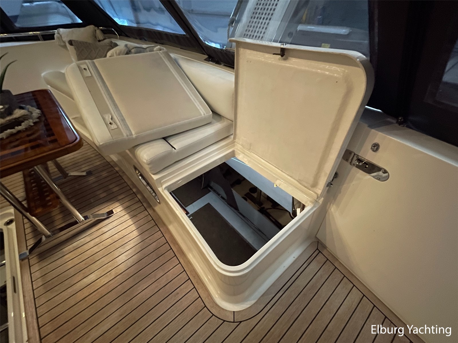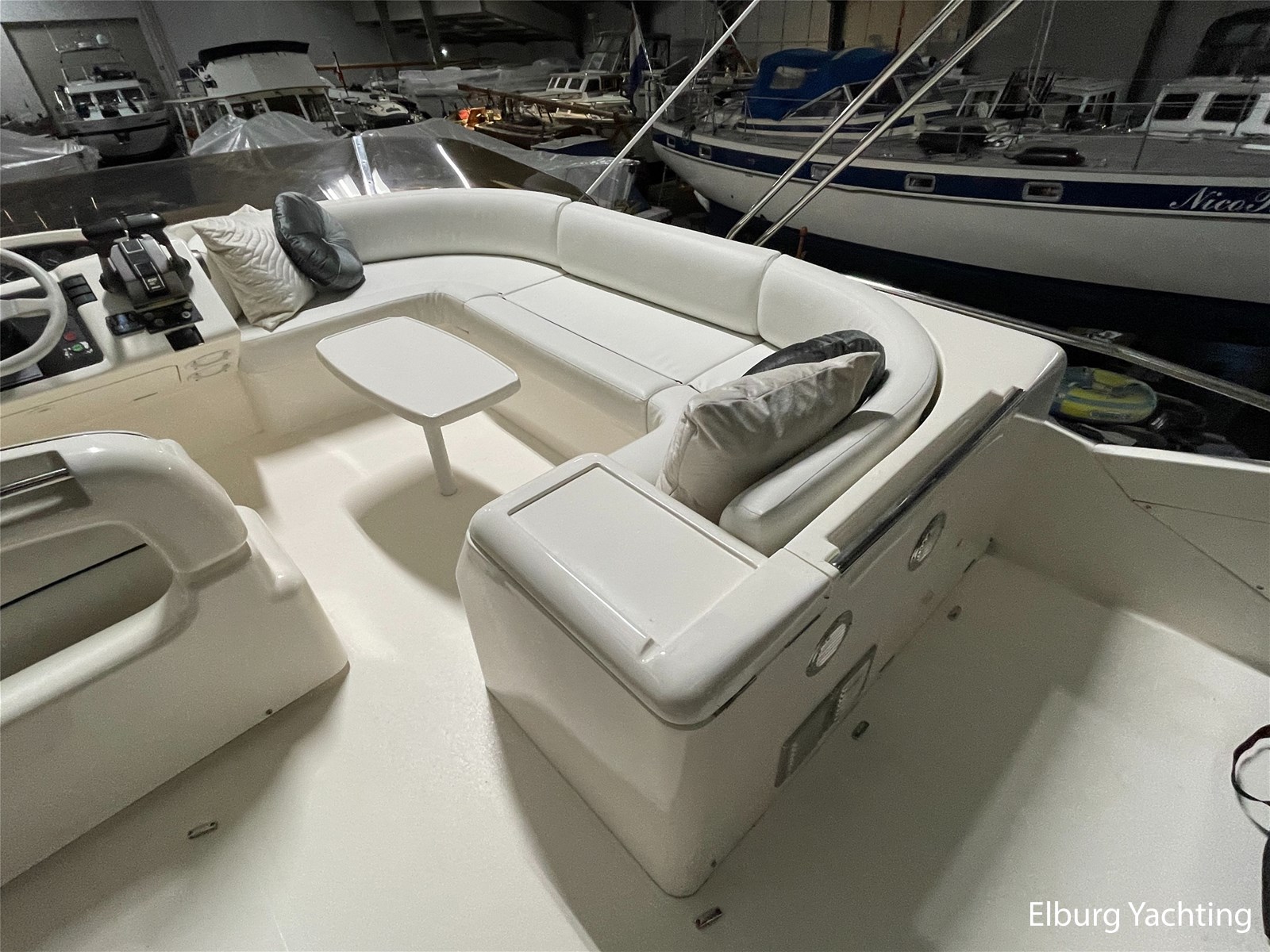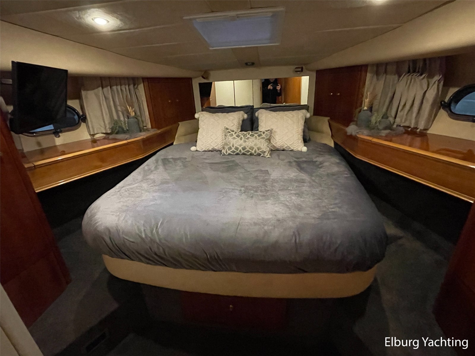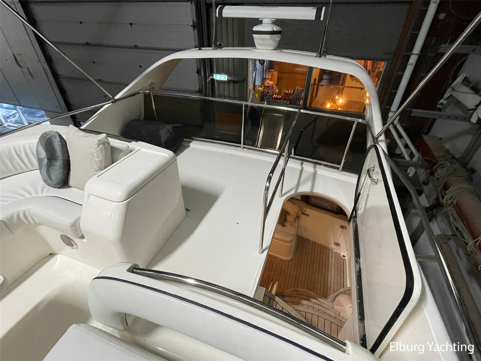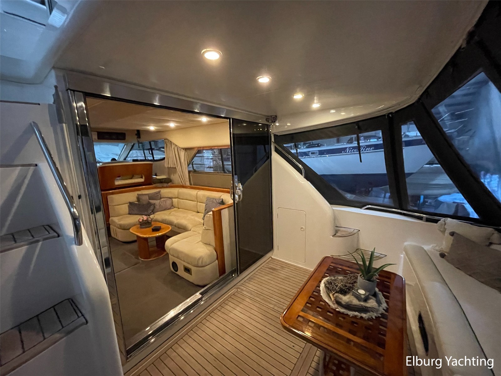 Prachtige Princess 480 Flybridge welke voorzien is van een zeer open en lichte salon / dinette indeling, twee comfortabele hutten en een ruime bering in het achterschip. Beide hutten hebben een 2-persoons bed met allebei toegang tot een eigen douche/toilet ruimte. Deze Princess 480 is uitgevoerd met: Vaste zitbank in open kuip met bijbehorende buitenkussens, de open kuip en salon gelijkvloers beloopbaar, r.v.s. schuifdeur naar salon, "luie" vaste trap naar flybridge, zonnebed op voordek, 2-persoons vaarbank op flybridge, trim tabs, volledige afsluitbare tent rondom kuip met uitristbare delen, r.v.s. buitenreling rondom, 2 x schuifraam in salon, biminitop op flybridge met afdekhoes 2024, buitendouche, ijsblokjesmachine, deur in spiegel naar zwemplatform, toegang machinekamer vanuit de open kuip en via salonvloer, zonneschermen rondom salonramen 2023, gordijnen in de salon vernieuwd in 2023. De verstuivers van de motoren zijn in 2024 gereviseerd, nieuwe antifouling + anode's 2024, nieuwe wasmachine 2024, nieuwe Eberspächer kachel 2024, nieuwe achtertent 2024, nieuwe biminihoes 2024 en zijn in 2023 beide dieseltanks gereinigd.