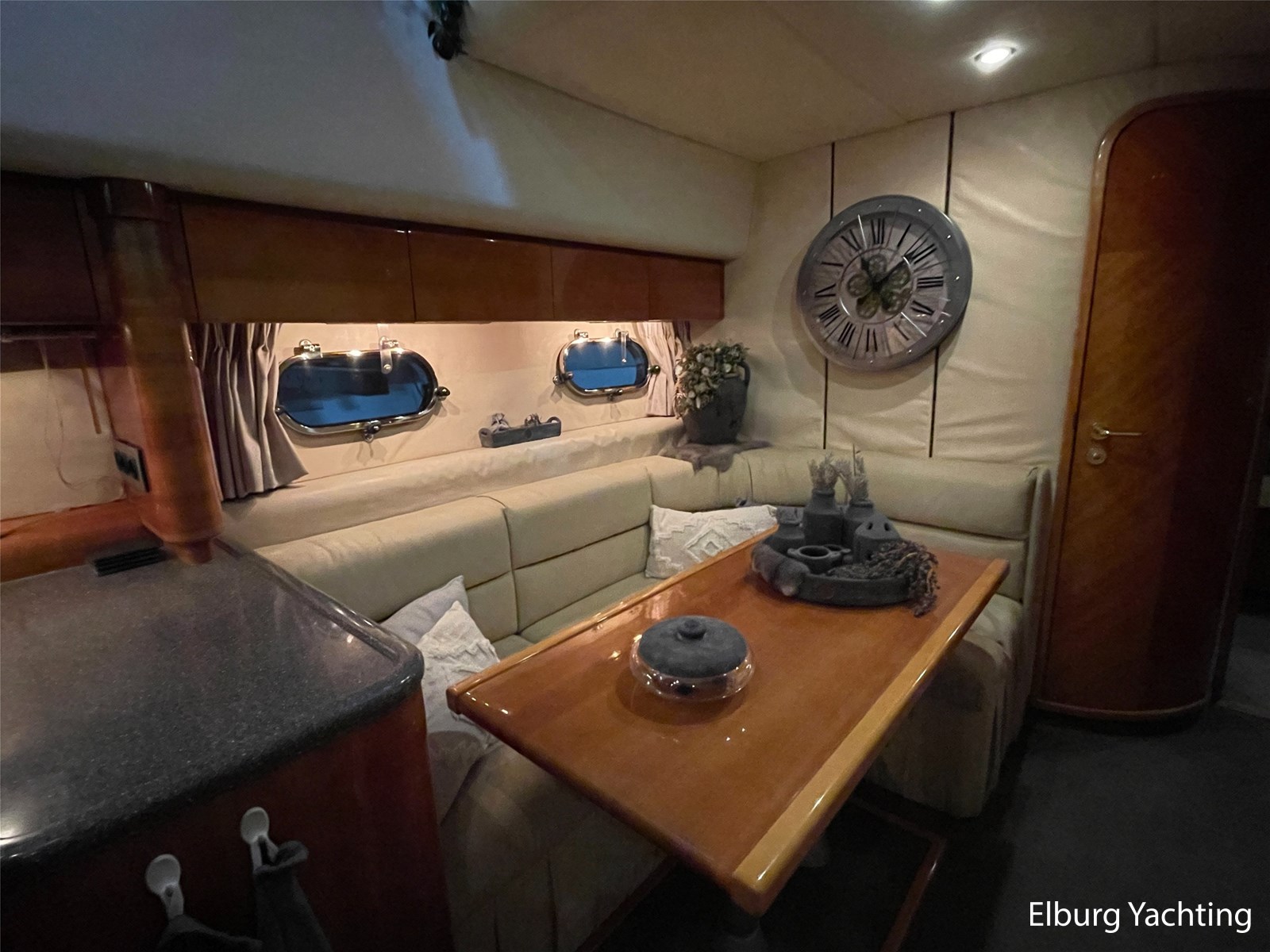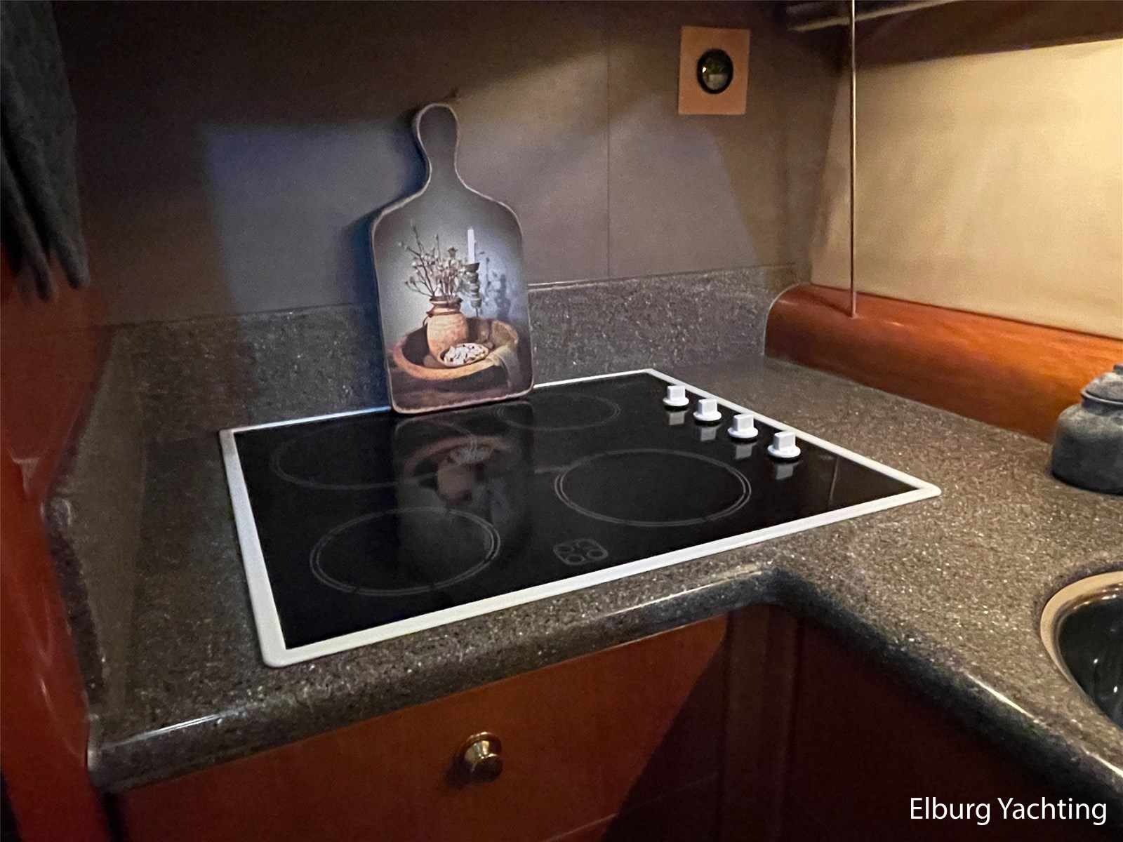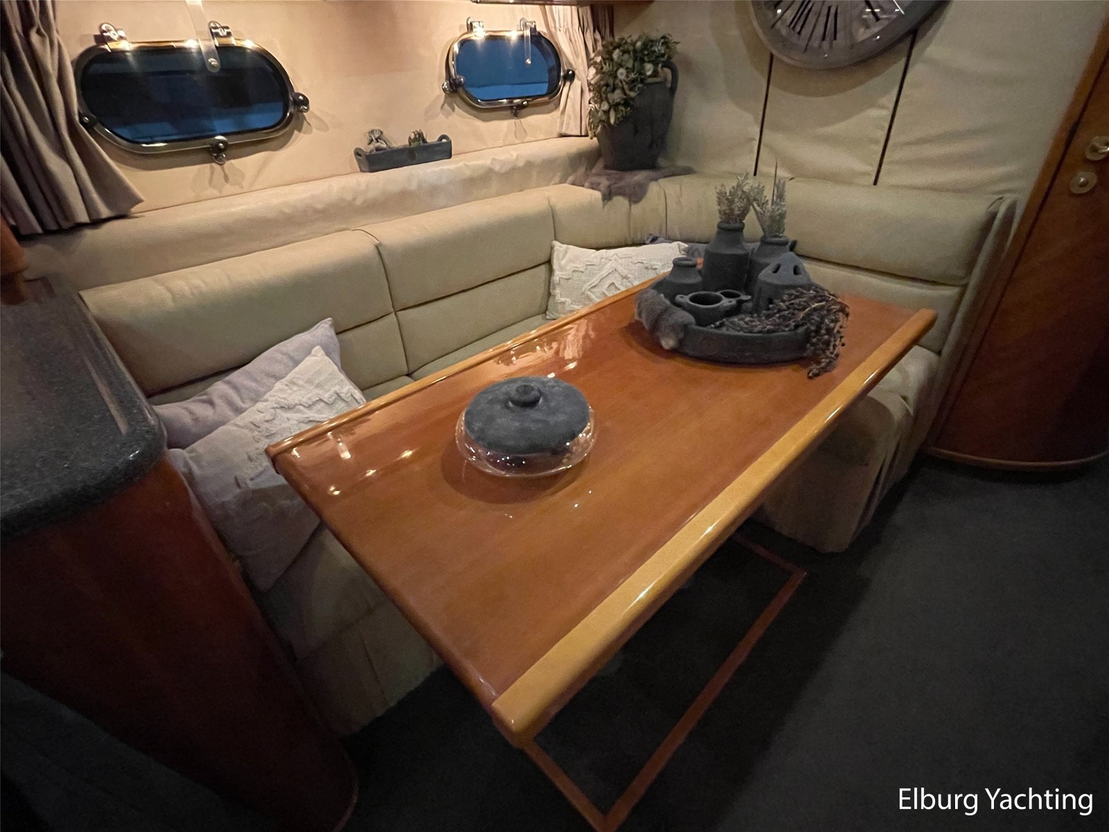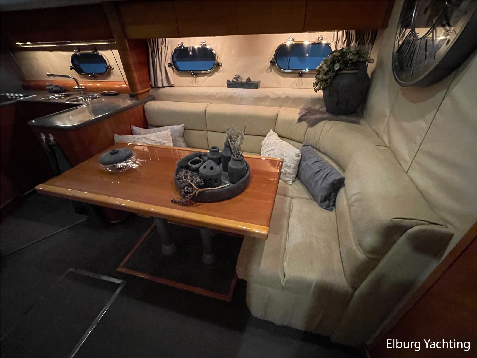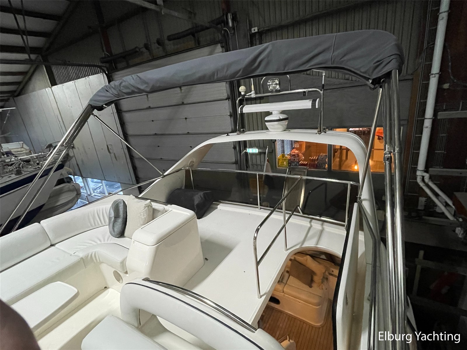 Prachtige Princess 480 Flybridge welke voorzien is van een zeer open en lichte salon / dinette indeling, twee comfortabele hutten en een ruime bering in het achterschip. Beide hutten hebben een 2-persoons bed met allebei toegang tot een eigen douche/toilet ruimte. Deze Princess 480 is uitgevoerd met: Vaste zitbank in open kuip met bijbehorende buitenkussens, de open kuip en salon gelijkvloers beloopbaar, r.v.s. schuifdeur naar salon, "luie" vaste trap naar flybridge, zonnebed op voordek, 2-persoons vaarbank op flybridge, trim tabs, volledige afsluitbare tent rondom kuip met uitristbare delen, r.v.s. buitenreling rondom, 2 x schuifraam in salon, biminitop op flybridge met afdekhoes 2024, buitendouche, ijsblokjesmachine, deur in spiegel naar zwemplatform, toegang machinekamer vanuit de open kuip en via salonvloer, zonneschermen rondom salonramen 2023, gordijnen in de salon vernieuwd in 2023. De verstuivers van de motoren zijn in 2024 gereviseerd, nieuwe antifouling + anode's 2024, nieuwe wasmachine 2024, nieuwe Eberspächer kachel 2024, nieuwe achtertent 2024, nieuwe biminihoes 2024 en zijn in 2023 beide dieseltanks gereinigd.