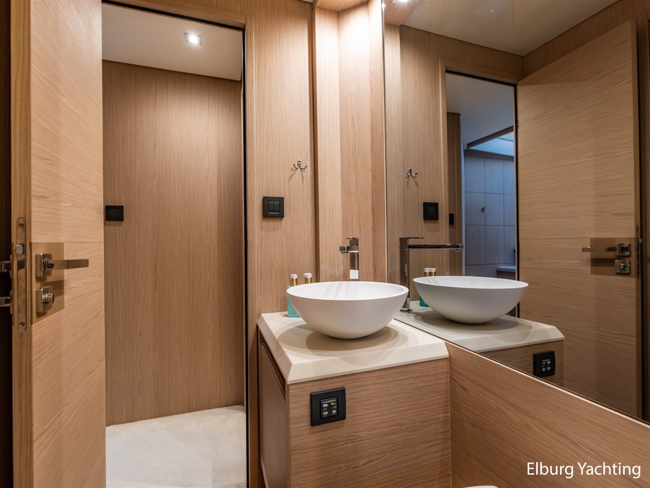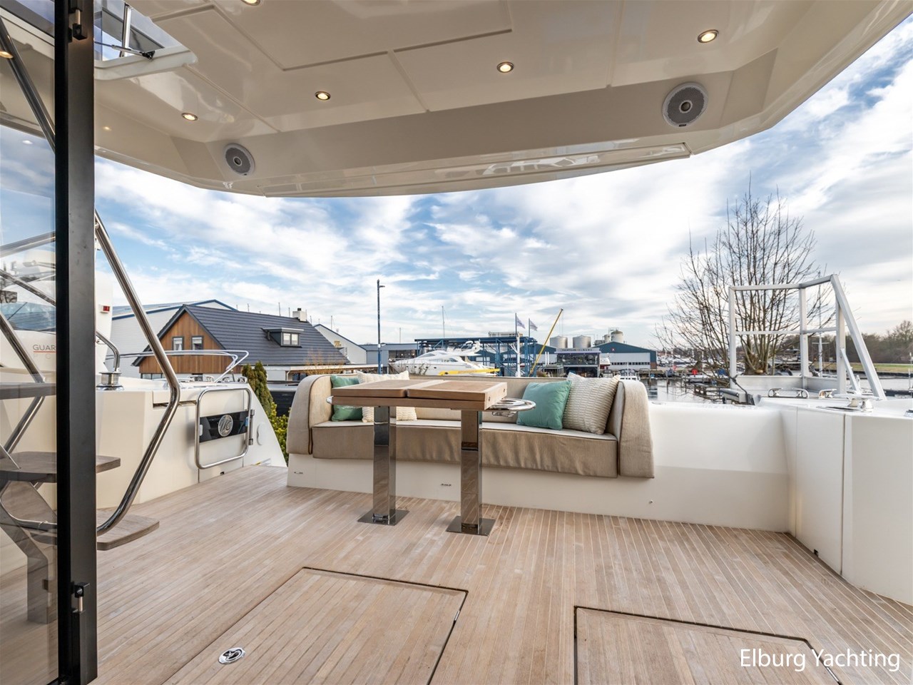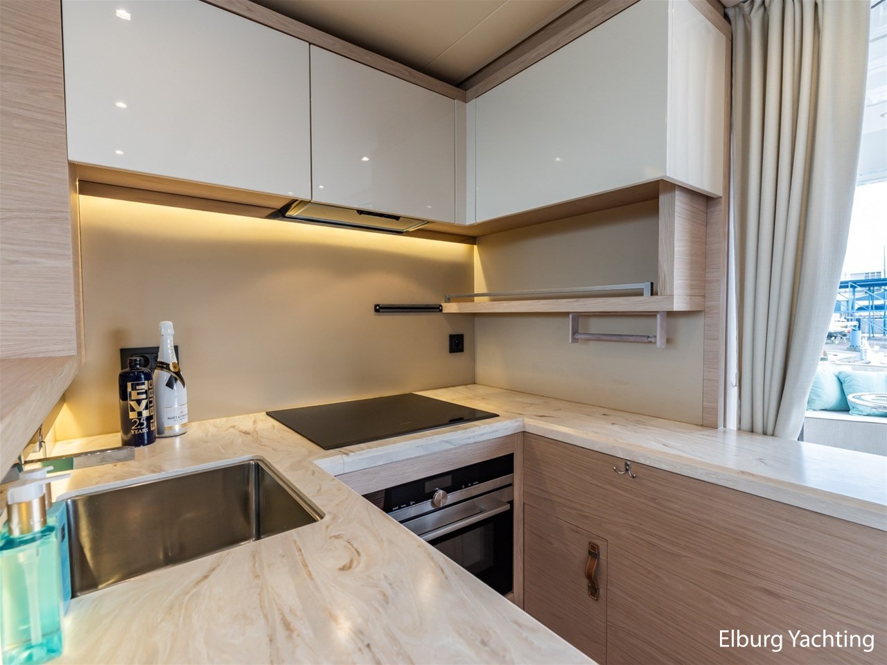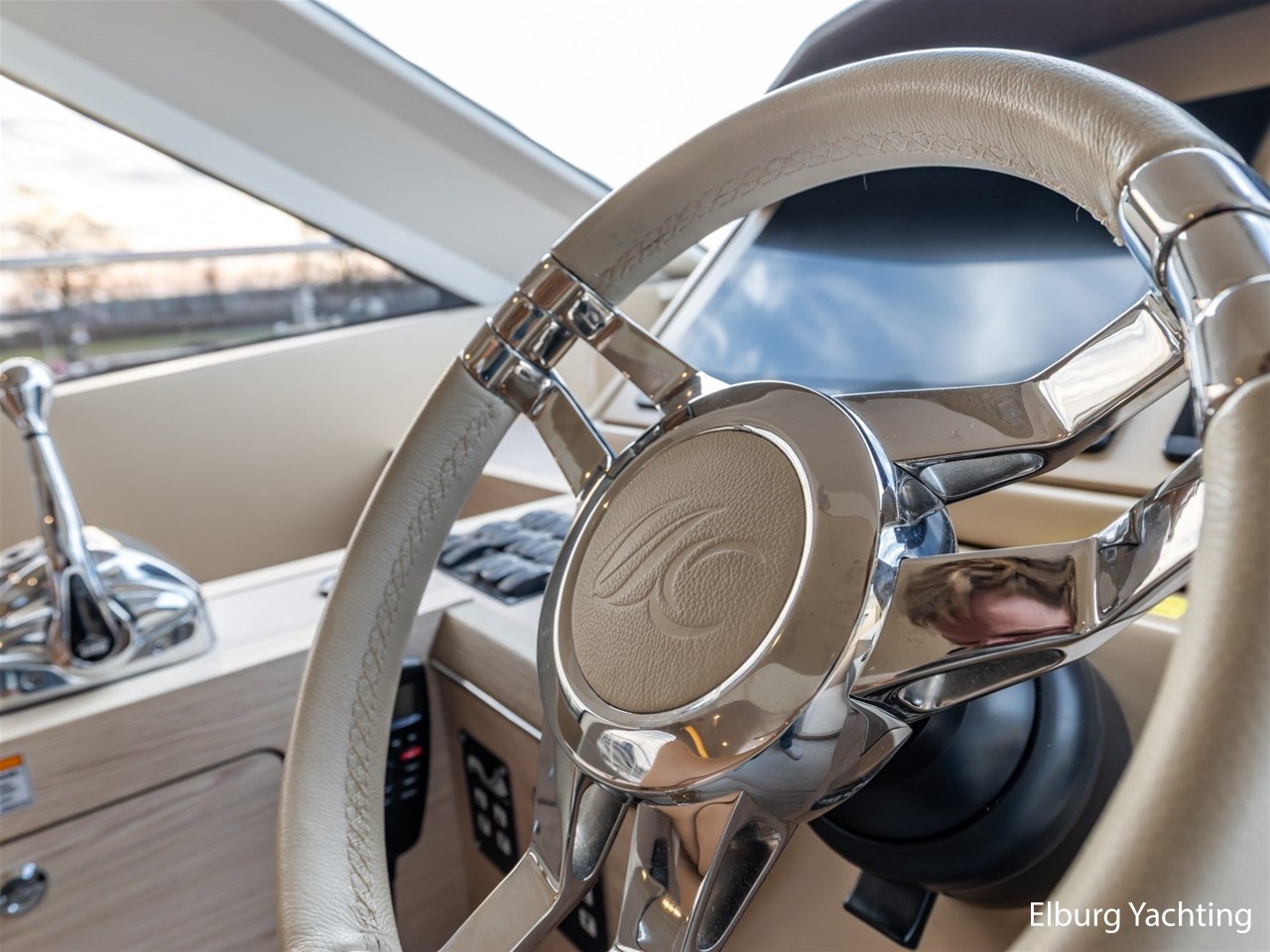 Deze fraaie Beneteau Monte Carlo 6 is een elegant, luxe, comfortabel en vooral sportief jacht en gekozen tot boot van het jaar in de categorie 'Flybridge tot 60ft' bij de 'Motor Boat Awards'. Het jacht is gebouwd in 2018 en is geleverd voor Boat Düsseldorf 2019. Het jacht wordt aangeboden door haar eerste Nederlandse eigenaar sinds haar aankoop in 2021 en is bij ons in Elburg te bezichtigen. In het ontwerp van deze Beneteau Monte Carlo 6 is goed nagedacht over de leefruimte. Het jacht is uitgerust met 3 volwaardige hutten met elk een natte cel, ook beschikt dit jacht over een volwaardige 'Crew-cabin' met eigen natte cel. Het moderne lichte interieur in combinatie met de beige bekleding geeft een ruimtelijk gevoel aan boord. Het jacht wordt voortgestuwd door 2 x 600 pk sterke Cummins Dieselmotoren in combinatie met het Cummins Zeus pod aandrijvingssysteem (middels joystickbediening) met drie stuurstanden door het jacht (1 x stuurstand in de salon + 1 x stuurstand op de Flybridge + 1 x stuurstand in de kuip). Het jacht is voorzien van een royale Flybridge met een T-top welke voorzien is van een schuifdak. Verder wordt dit jacht geleverd met onder andere: geïntegreerde hydraulische gangway, geüpgraded 17,5 KVA generator, onderwaterverlichting, koelkast op de Flybridge, grill op de Flybridge, wijnkoeler, wasmachine/droger, watergekoelde airconditioning 66KBTU door het jacht + watergekoelde airconditioning in de Crew-cabin 4000BTU en is het onderwaterschip in 2025 opnieuw opgebouwd. Voor vragen en/of het maken van een afspraak bent u 7 dagen per week van harte welkom bij Elburg Yachting.