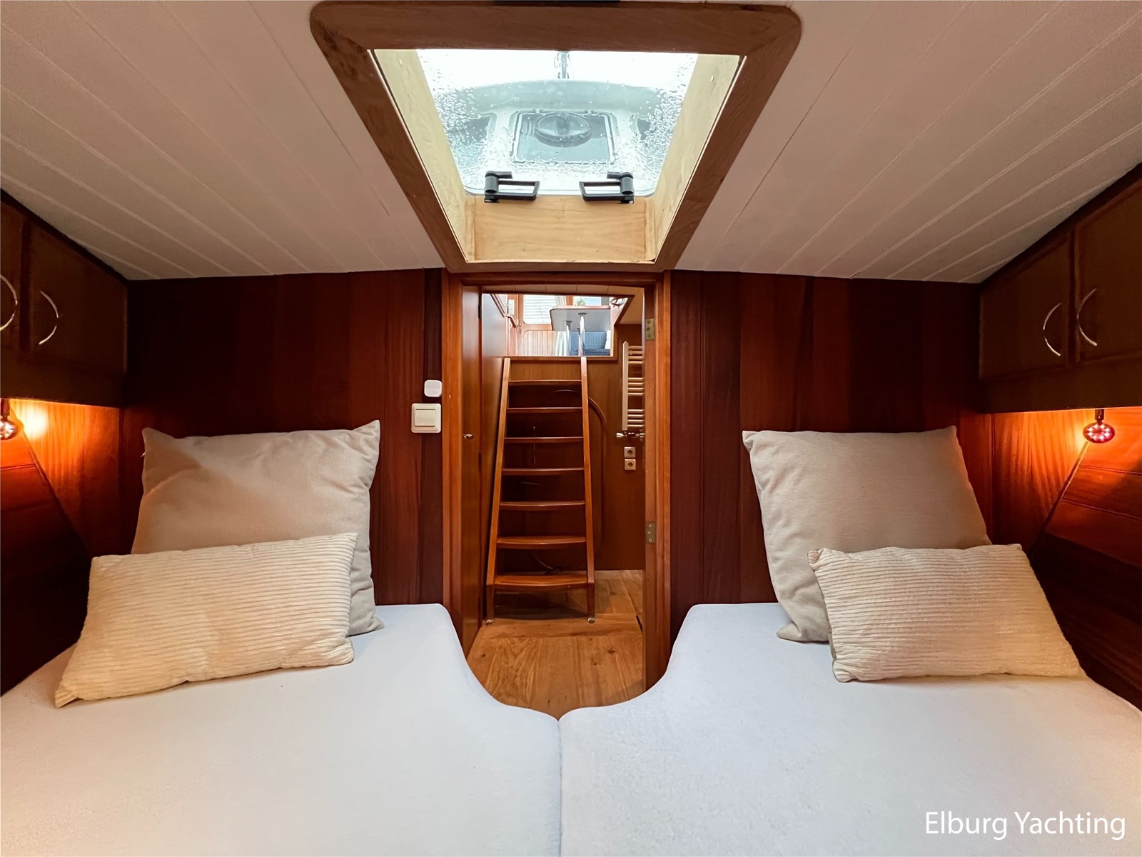 Origineel gebouwd als multi-purpose vessel (MPV) door de Katwijkse Scheepswerf PeGebo. Dit robuuste motorjacht heeft de kenmerken van een werkboot, maar is afgebouwd als luxe pleziervaartuig. De romp en opbouw zijn volledig vervaardigd van aluminium waardoor het schip zich economisch door het water verplaatst. Met de twee krachtige 140pk Scania dieselmotoren en de hydraulische boegschroef, laat het schip zich makkelijk manoeuvreren. De kuip, het gangboord en de salon/stuurhuis zijn op één niveau voor een prettige loop in en rondom het schip. Benedendeks bevindt zich de kombuis, natte cel en voorhut met een 2 persoons V-bed. De stahoogte in de salon is ca. 190cm en de kombuis is ca. 185cm. De toegang tot een 'echte' machinekamer is binnendoor via een waterdichte deur. Via de machinekamer, met stahoogte, bereik je in het achterschip meer opslagruimte en toegang tot de techniek. In de afgelopen twee jaren is er veel in het schip geïnvesteerd. Hier volgt een opsomming van de uitgevoerde werkzaamheden: Victron Quattro omvormer/acculader vernieuwd, Victron scheidingstransformator geplaatst, 3 x zonnepanelen (175Wp) gemonteerd met Victron omvormer, Victron Cerbo display, 8 x Varta accu's 12V 180Ah geplaatst, elektrisch toilet vernieuwd, matrassen in voorhut vernieuwd, Kabola HR400 combi ketel geplaatst, koelkast in salon. Deze Patrol 1500 OK is verder voorzien van: slingerruit, klapbare voorruit, bakskisten in open kuip, kuipbanken met afneembare kussens, houten buitenreling rondom, elektrisch kaapstaander op het achterdek, 2 x hydraulisch bedienbare kraan op achterdek, professioneel ingericht dashboard bij stuurstand, separate joystick t.b.v. roerbediening, afsluitbare ankerkluis in voorpiek, hydraulisch klapbare mast, doorvaarthoogte met staande mast ca. 8,50 m en met geklapte mast ca. 4,50 m. Antifouling vernieuwd in 2025.