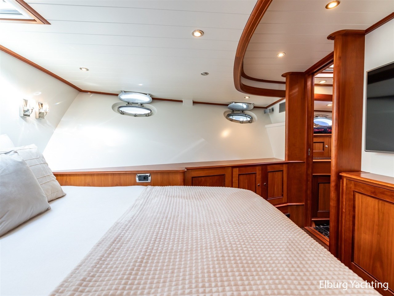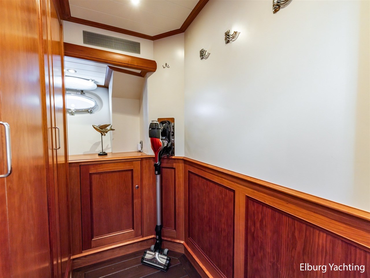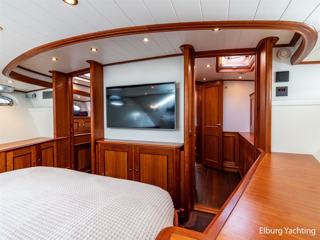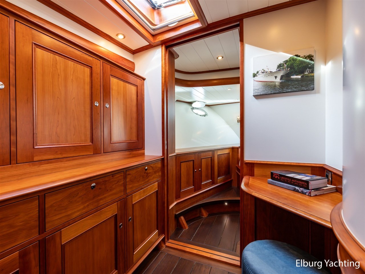 Het jacht beschikt over een ruime keuken en een zeer ruime U-vormige dinette tegenover de keuken. De eigenaarshut is ontworpen met oog voor detail en comfort. Het is een ruime hut met ensuite een badkamer, en biedt een royale inloopruimte incl. een bureau met veel kastruimte voordat de slaapruimte wordt betreedt Het interieur heeft prachtig gebogen deuropeningen en deuren, die de traditionele en klassieke charme benadrukken, terwijl de moderne accenten in het jacht haar veelzijdigheid onderstrepen.