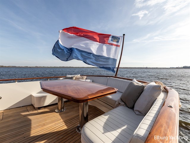 De Mulder Classic - 77 Eleonore straalt door haar stijlvolle houten elementen, 2 trappen naar het achterdek, ruime rondom lopende gangboorden, zonnedek op het voordek, ruime zitbank in de reling.