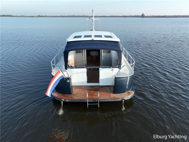 Via de kuip loopt u door middel van een openslaand deurtje naar het zwemplateau. Via de twee luie, halfronde trappen loopt u de gangboorden op die voorzien zijn van een RVS reling, dubbele RVS bolders en antislip verf. Op het voordek staat een elektrisch klapbare mast, en de elektrische ankerlier. Het dak is voorzien van een viertal zonnepanelen via Victron MPPT 100/20. Het jacht heeft een minimale doorvaarthoogte van ca. 2.40 m.
