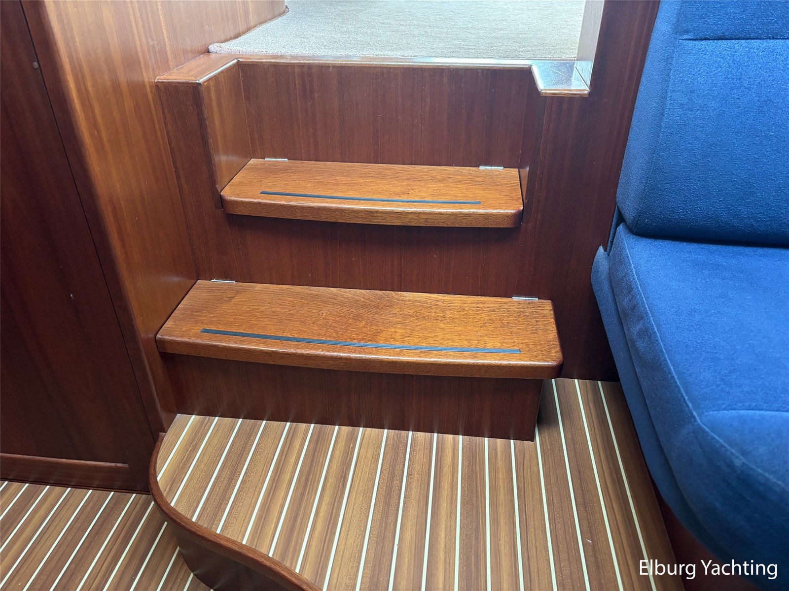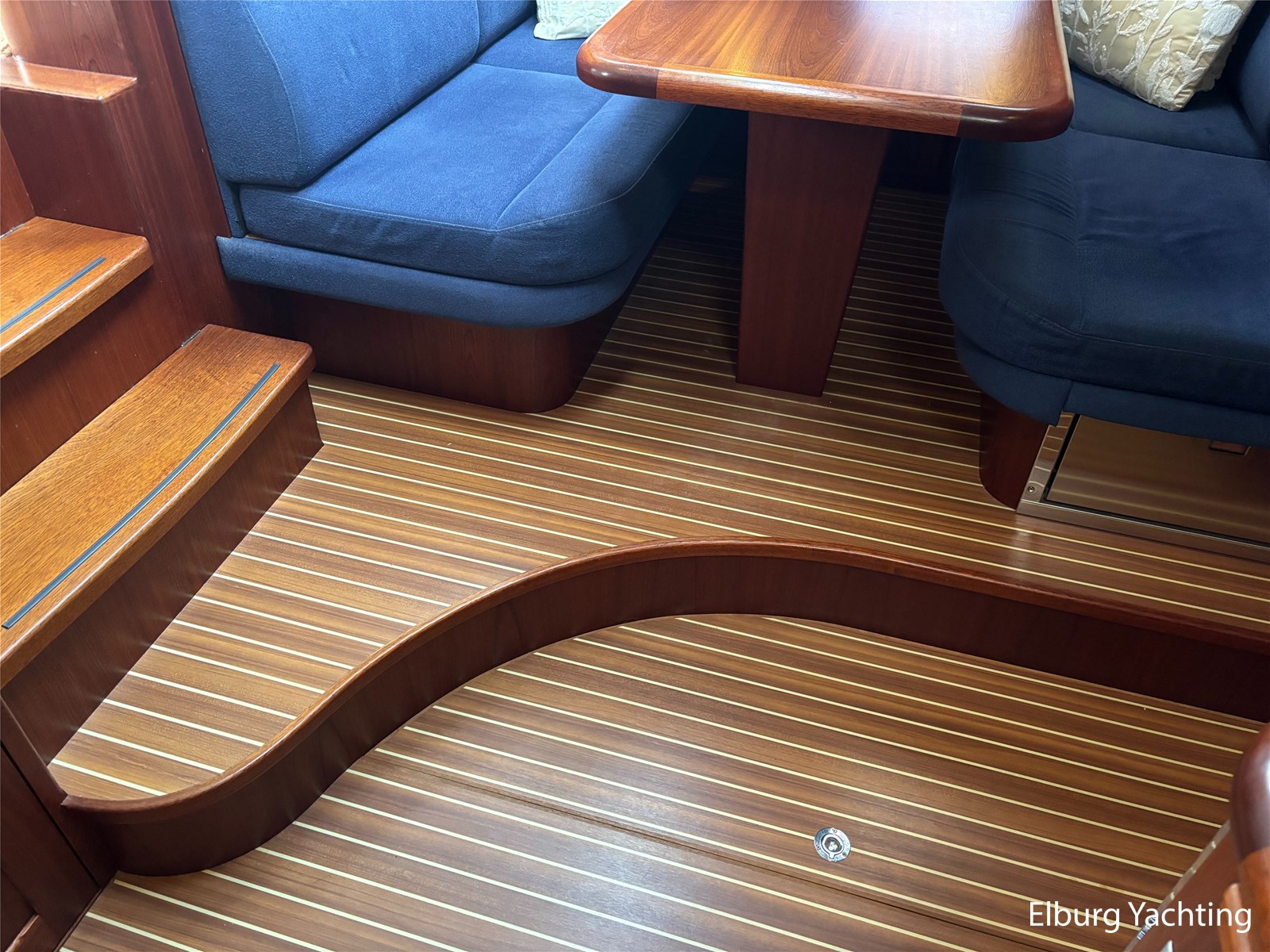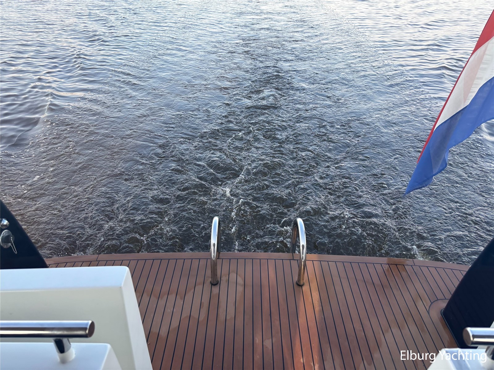 - Geïntegreerd met kunst teak + 2 x half ronde trap vanaf dek + R.V.S. zwemtrap