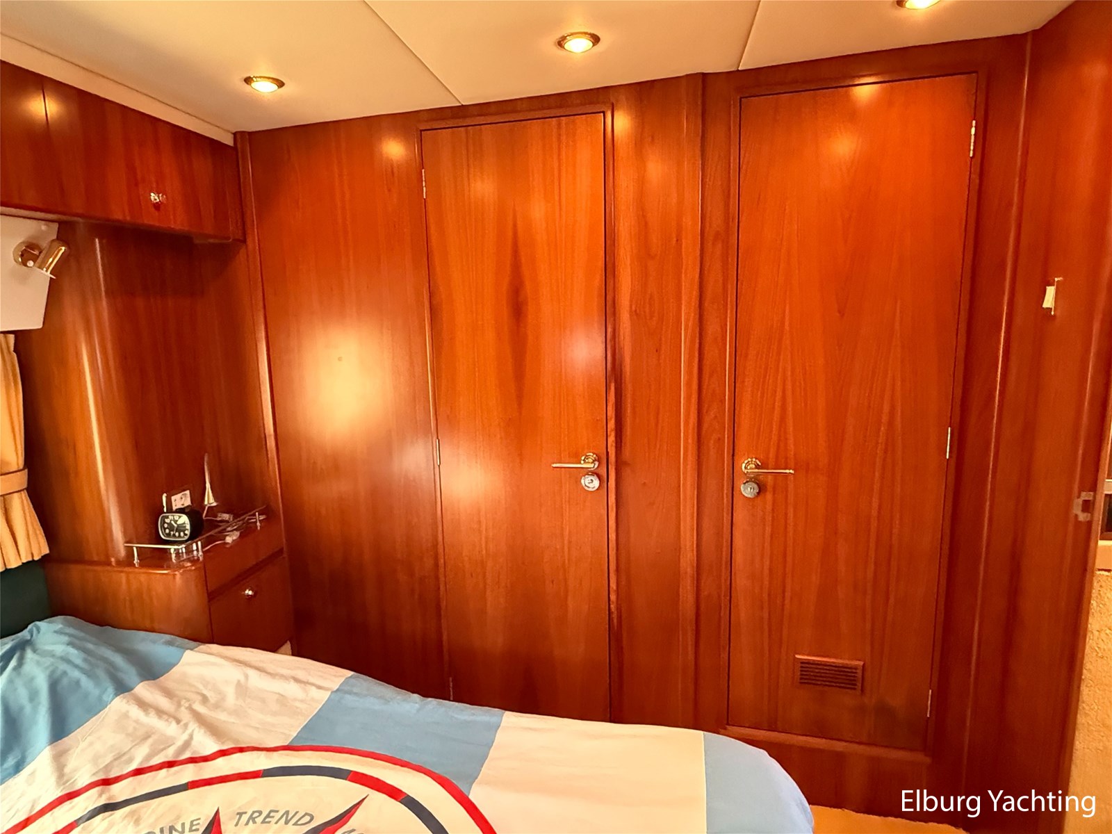 R.v.s. reling, biminitop over achterdek, geïntegreerde bank op achterdek, kunststof stootrand, Raytheon ST60 roerstandaanwijzer, Raytheon ST60 windmeter, elektrisch searchlight, 3 x dubbelarmige ruitenwissers, polyester radarbeugel, verstelbare stuurbank, Corian topbladen in keuken en toiletten, vaatwasser, vlucht- en ventilatieluiken, douche/toilet gescheiden in achterkajuit, r.v.s. fenderhouders, uitlaatslangen vernieuwd 2024, antifouling 2025, was- en droogcombinatie, verwarming bij stuurstand,, r.v.s. windscherm, houten vloer in keuken, blowers bij windscherm, voorkajuit heeft eigen ingang naar toilet, polyester verschansing, r.v.s. zijtrap in r.v.s. reling, ieder jaar servicebeurt, onderhoud is gelogd,, r.v.s. beugel voor bimini (ex. kap), nieuwe antraciet kuiptent, 12 x nieuwe verstuivers (2025), altijd in de winter verwarmd binnen gestaan, 2 x vuilwatertank (ongebruikt), accupakket is al volgt: service accu's ca. 2020 vernieuwd, 4 x start accu ( 2 x 2020 en 2 x 2024) 1 x generator accu. 2 x 2 boeg/hek. Victron Multiplus 24/3000/120, Victron Centaur voor boeg/hekaccu's.