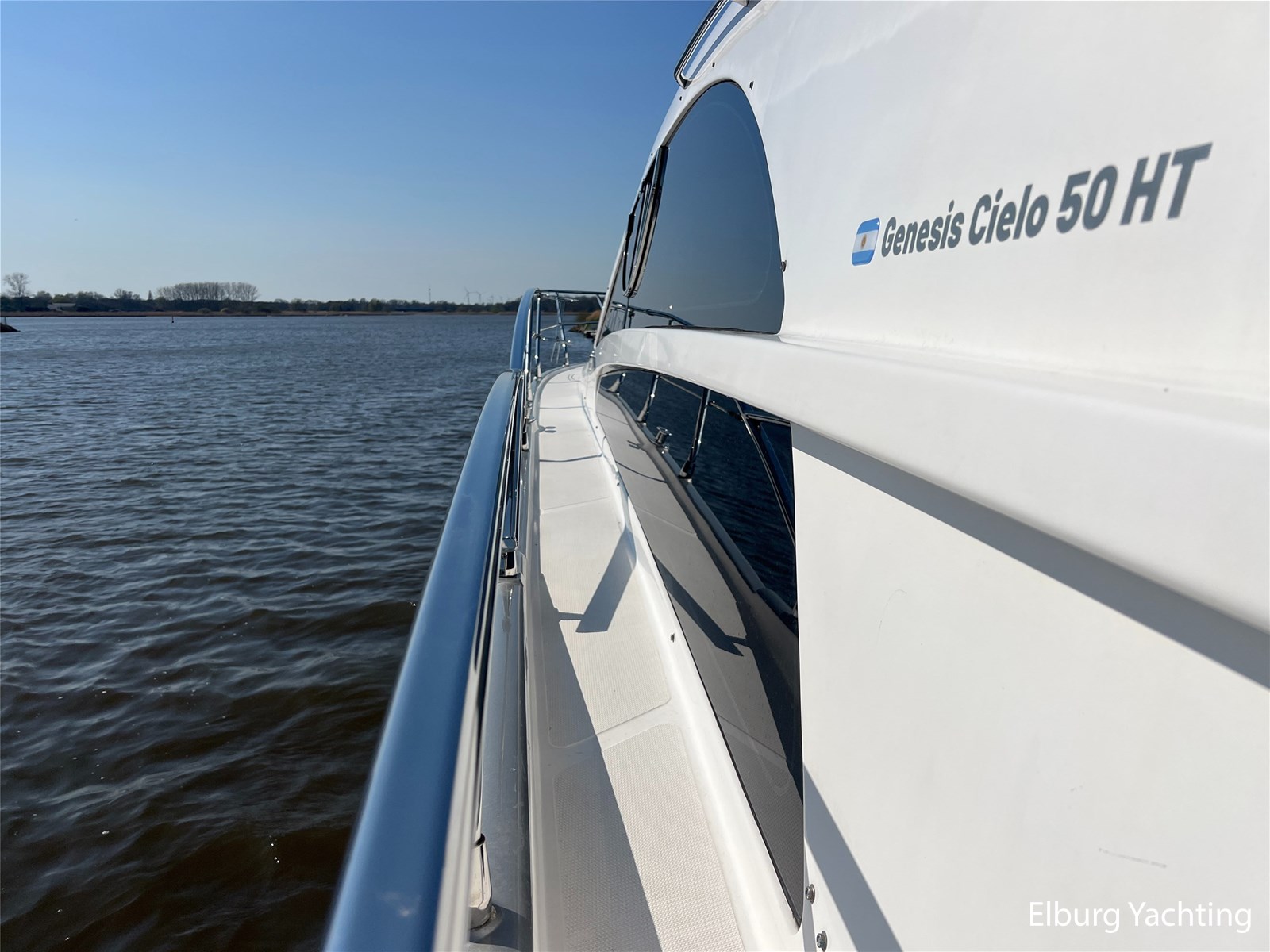 Deze Genesis 50 HT is een bijzondere verschijning op het water. Door haar mooi getekende profiel is het jacht zeer mooi in proportie. Het schip beschikt over een vaste r.v.s. deur waardoor de salon gemakkelijk is af te sluiten. Daarnaast biedt dit de mogelijkheid om de salon, en het achterdek als een groot geheel bij elkaar te voegen. Dit schip wordt verder geleverd met o.a: vernieuwde Raymarine navigatie apparatuur (2023), verlichting aan boord veranderd naar LED (2024), salonbank welke om te bouwen is naar een 2 persoons bed, Hydronautica afstandsbediening (2024), motorservice (2025), nieuwe kussen set met Bentley stiksels in kuip en op zonnedek (2024), Miele ijskast met vriesvak (2024), Bose geluidsinstallatie, onderwaterverlichting, vrije doorloop naar zwemplatform, 2 x zwemtrap, hydraulisch machinekamer luik, Bennet trimtabs, laminaat vloer, groot schuifdak in salon, grote gebogen voorruit wat zorgt voor veel lichtinval, luifel om uit de zon in de kuip te kunnen zitten.