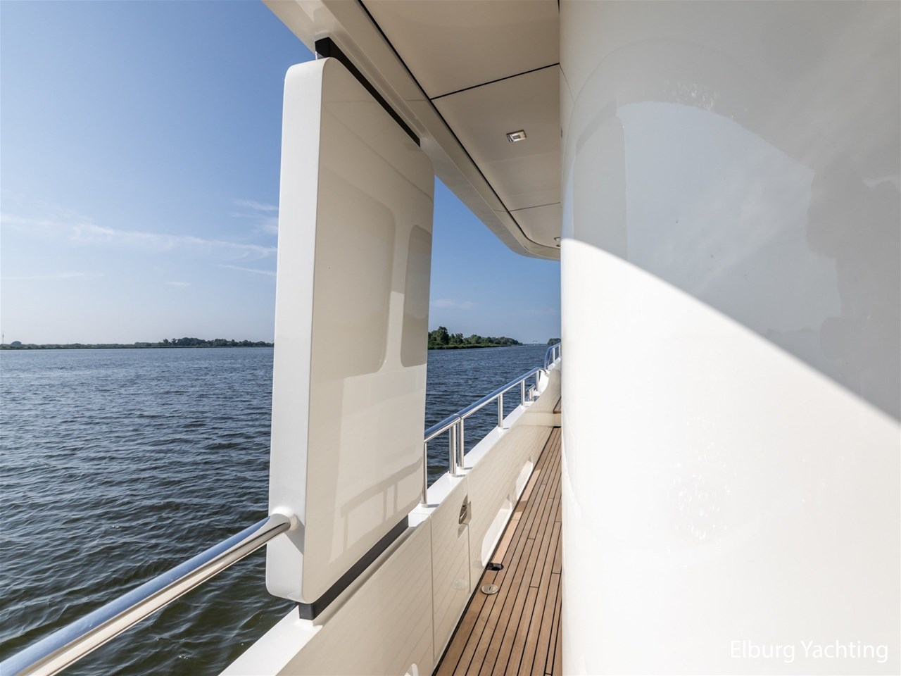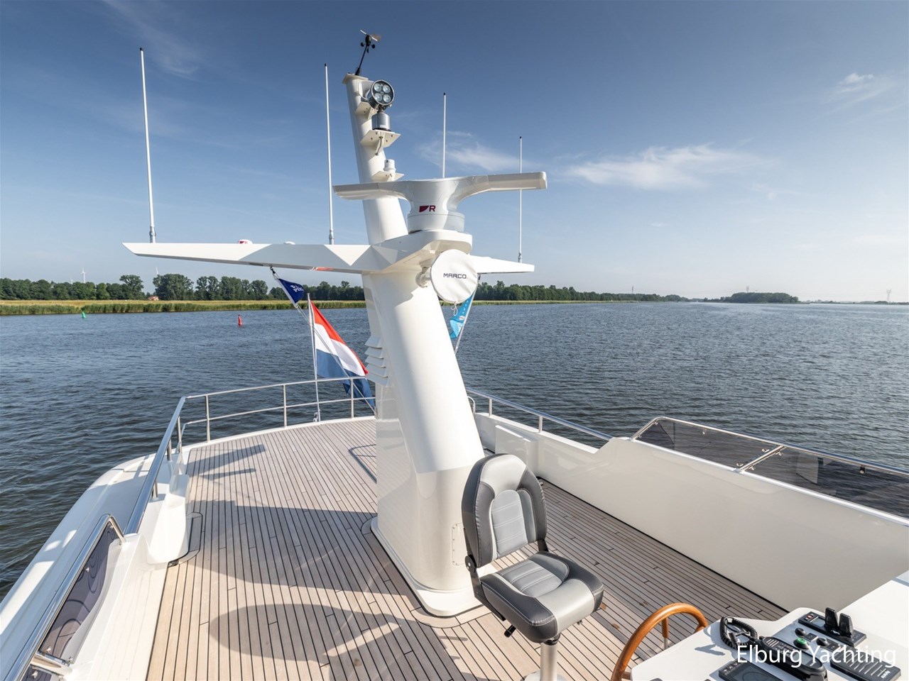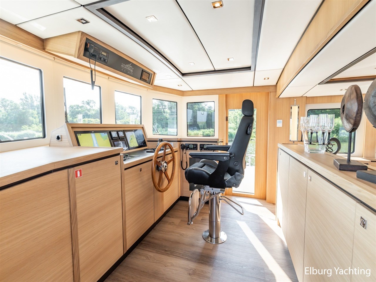 Deze prachtige nieuwe De Alm Grand Voyager 65 is gebouwd door Jachtwerf De Alm uit Waalwijk en ontworpen door Werner Yacht Design in combinatie met Azza Yachting. Dit jacht is zeer exclusief gebouwd in Grade A-steel dat is afgewerkt met een zeer hoogwaardig VANDENENDEN 2023 Awl Grip superyacht verfsysteem. Het jacht is gebouwd met een multiknikspant romp in combinatie met hydraulische stabilisatoren, twee hydraulische spudpalen en hydraulische boeg- en hekschroef. Via de dubbele stuurstand (1 x in het stuurhuis + 1 x op de flybridge) is het jacht tevens via de Hydronautica afstandsbediening eenvoudig te besturen.