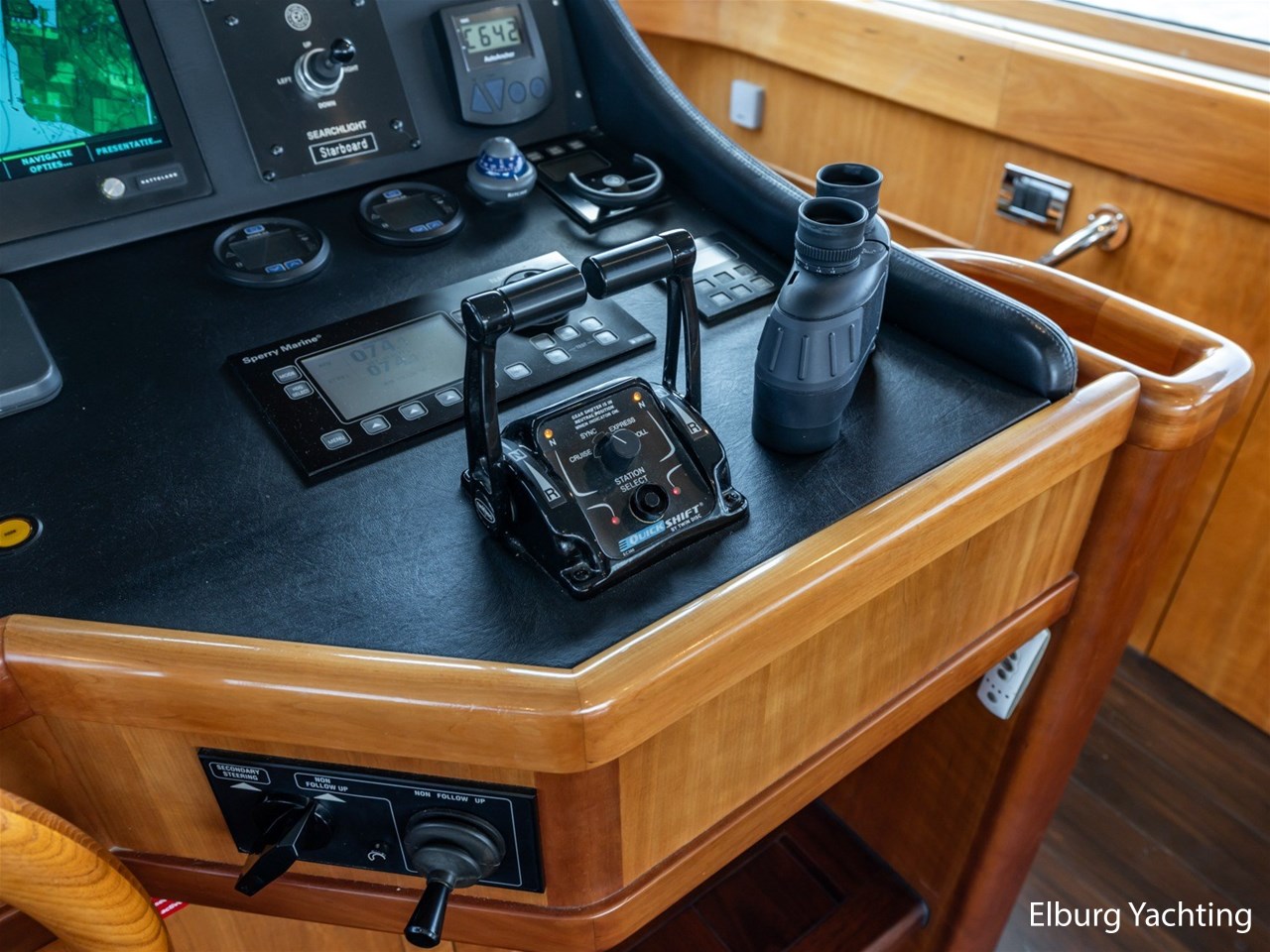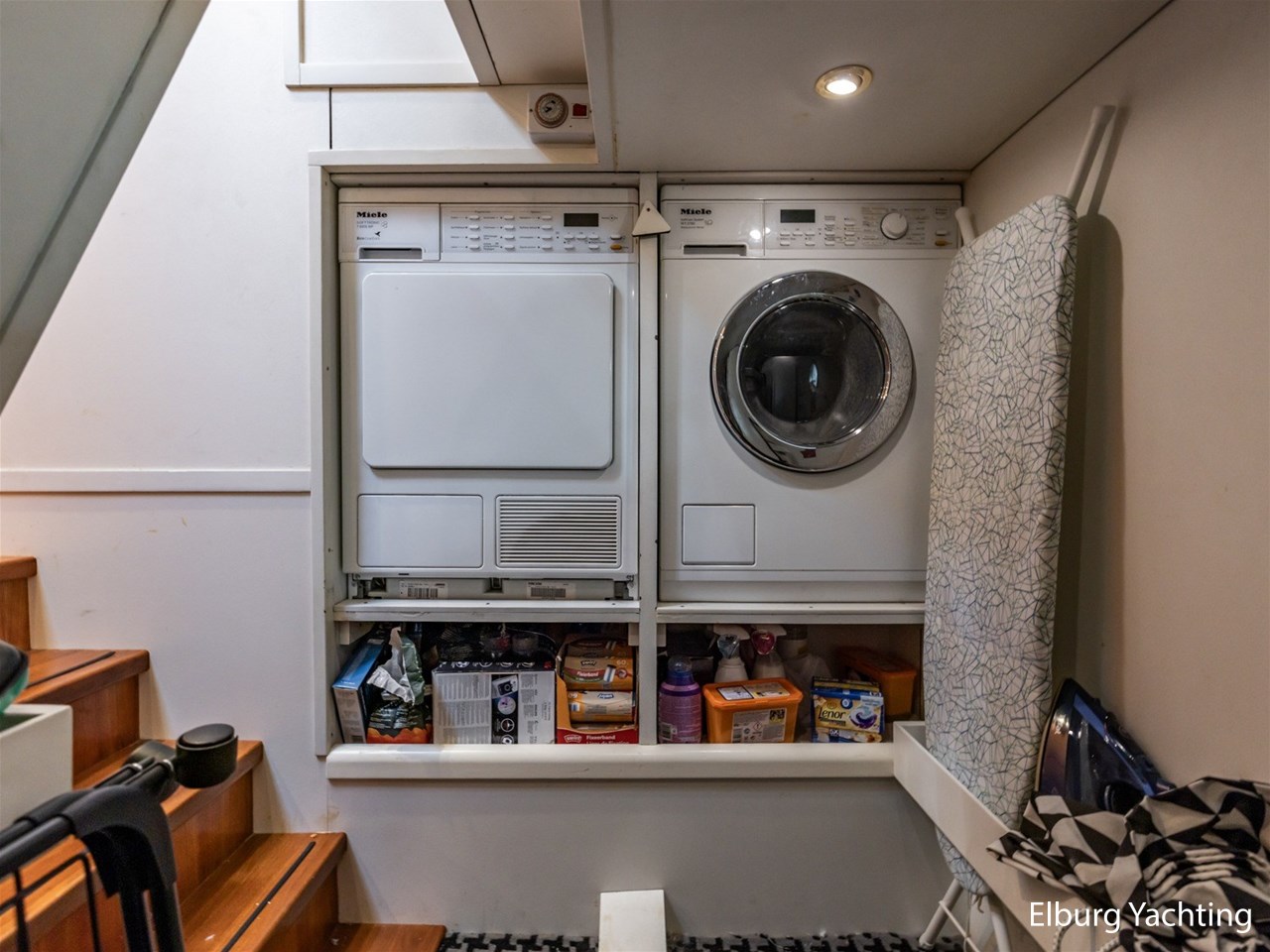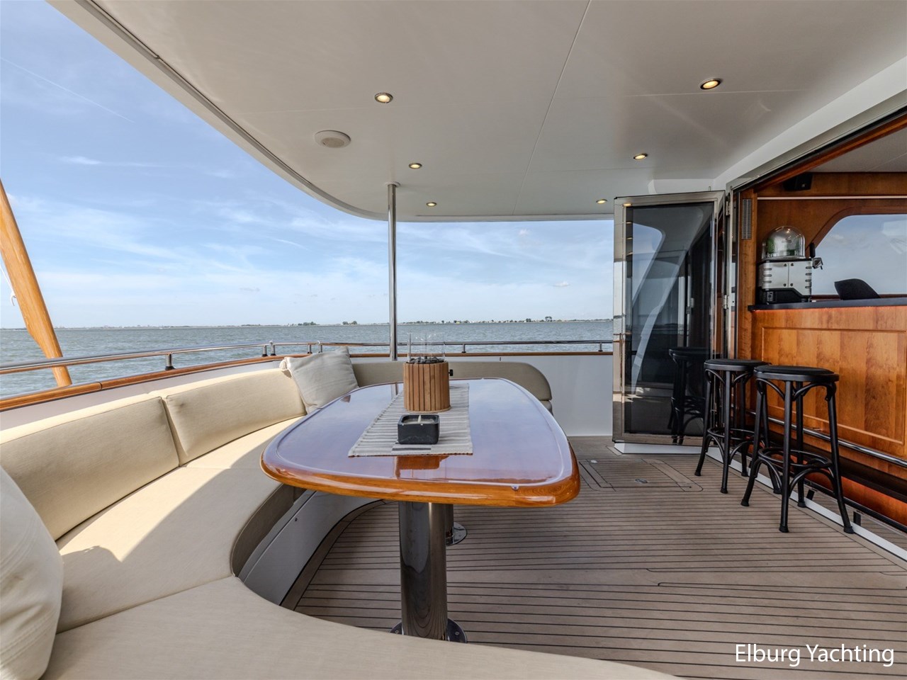 De Mulder 73 Wheelhouse - Alu Fast Going beschikt over o.a.: Groot overdekt en verlicht achterdek met ruime U-dinette, dinette op voorroef, hoogglans gelakte potdeksel, r.v.s dekbeslag, gangway, 2 x Carlisle & Finch searchlight, navigatie computer met Maxsea software, Furuno windsensor, tracphone KVH F55, satelliet tv KVH G6, Mastervolt main manager, Bose audio systeem, elektrisch bedienbare jaloezieën, houten vloeren in gehele boot, thermostaatregeling per vertrek, camerasysteem, wijnkoelkast, tender garage, kaapstanders, Miele vaatwasser, Miele wasmachine, Miele droger, Tecnicomar watermaker, 2025 laatste servicebeurt hoofdmotoren.