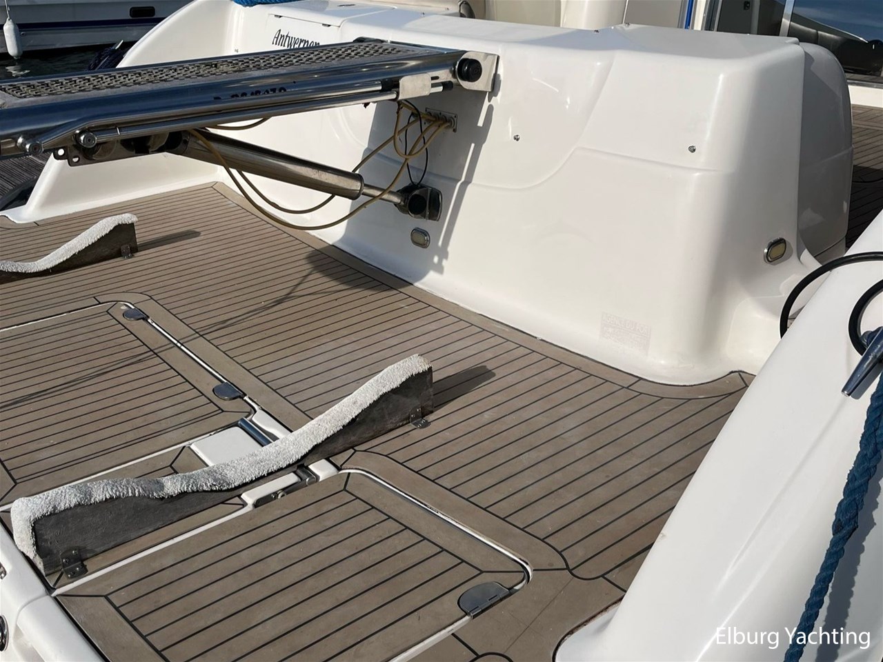 - Geintegreerd met kunststof dek en inklapbare bijboot steunen