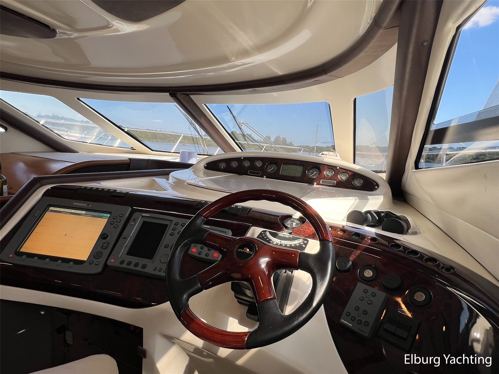 - Raymarine E120 (binnen) + Raymarine E80 (flybridge)