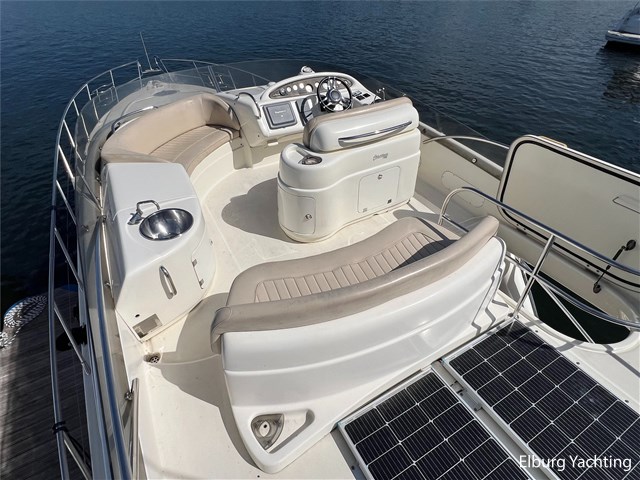 De Cranchi Atlantique 48 is een mooi gelijnd snelvarend polyester motorjacht. Het jacht beschikt over maar liefst 3 vaste hutten + crew cabin waarmee er plaats aan boord is voor minimaal 6 opvarenden. Doormiddel van de r.v.s. schuifpui is het achterdek en de salon met elkaar te verbinden. De salon is ruim opgezet met een aangesloten open keuken. Uniek voor dit schip is de Maritieme Booster CV dieselkachel voor een comfortabele verwarming aan boord in ieder vertrek inclusief motorruimte waardoor dit schip ook in de winter te gebruiken is en/of permanente bewoning. Dit jacht is voorzien van: Geïntegreerde kuipbanken inclusief bijbehorende kussens, ronde dinette in salon, entree naar flybridge via een trap in open kuip, koeling/verwarming per vertrek afzonderlijk regelbaar via de airconditioning, overzichtelijk elektrisch schakelpaneel, kleine praktische wasmachine in open kuip, 2 x zijraam in salon en bij stuurstand, 2-persoons stuurbank bij beide stuurstanden, afsluitbare kuip met spiegeldeur aan SB zijde, Benzensoni hydraulische gangway voor opstap op de steiger of het kranen van een bijboot op het zwemplateau, 2 x toegang naar machinekamer, r.v.s. fenderhouders op het voordek, de open kuip en het zwemplateau zijn volledige belegt met een kunststof teakdek voor minder onderhoudszorgen, 2 x zonnepanelen op de flybridge.
