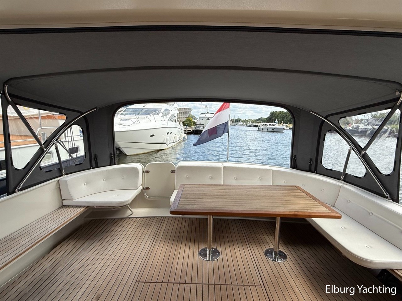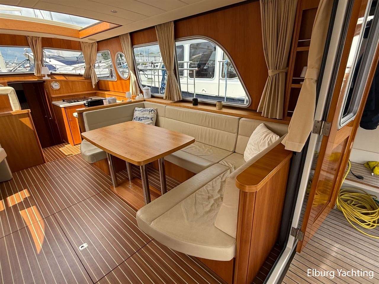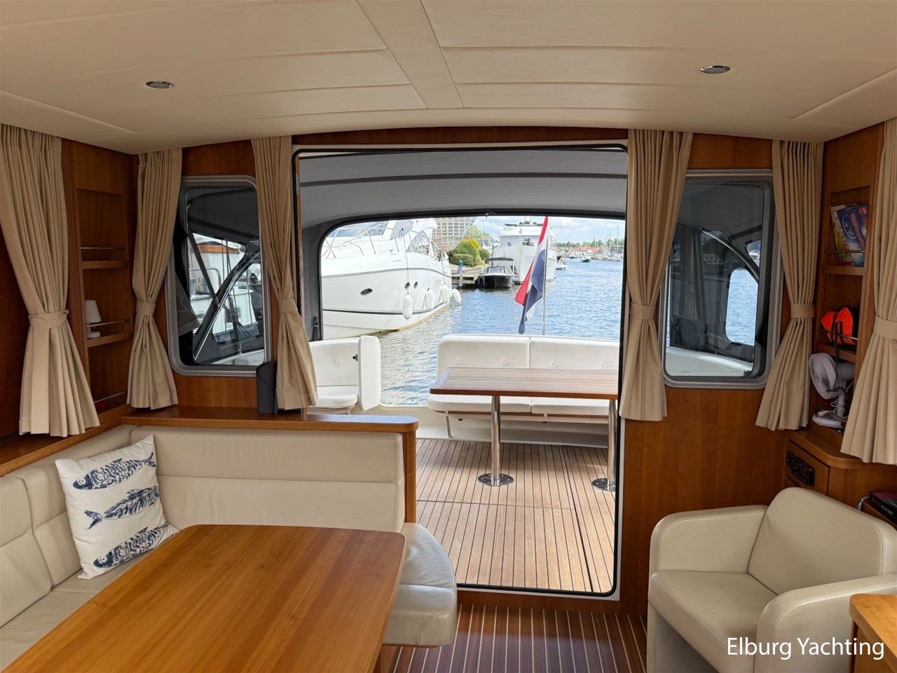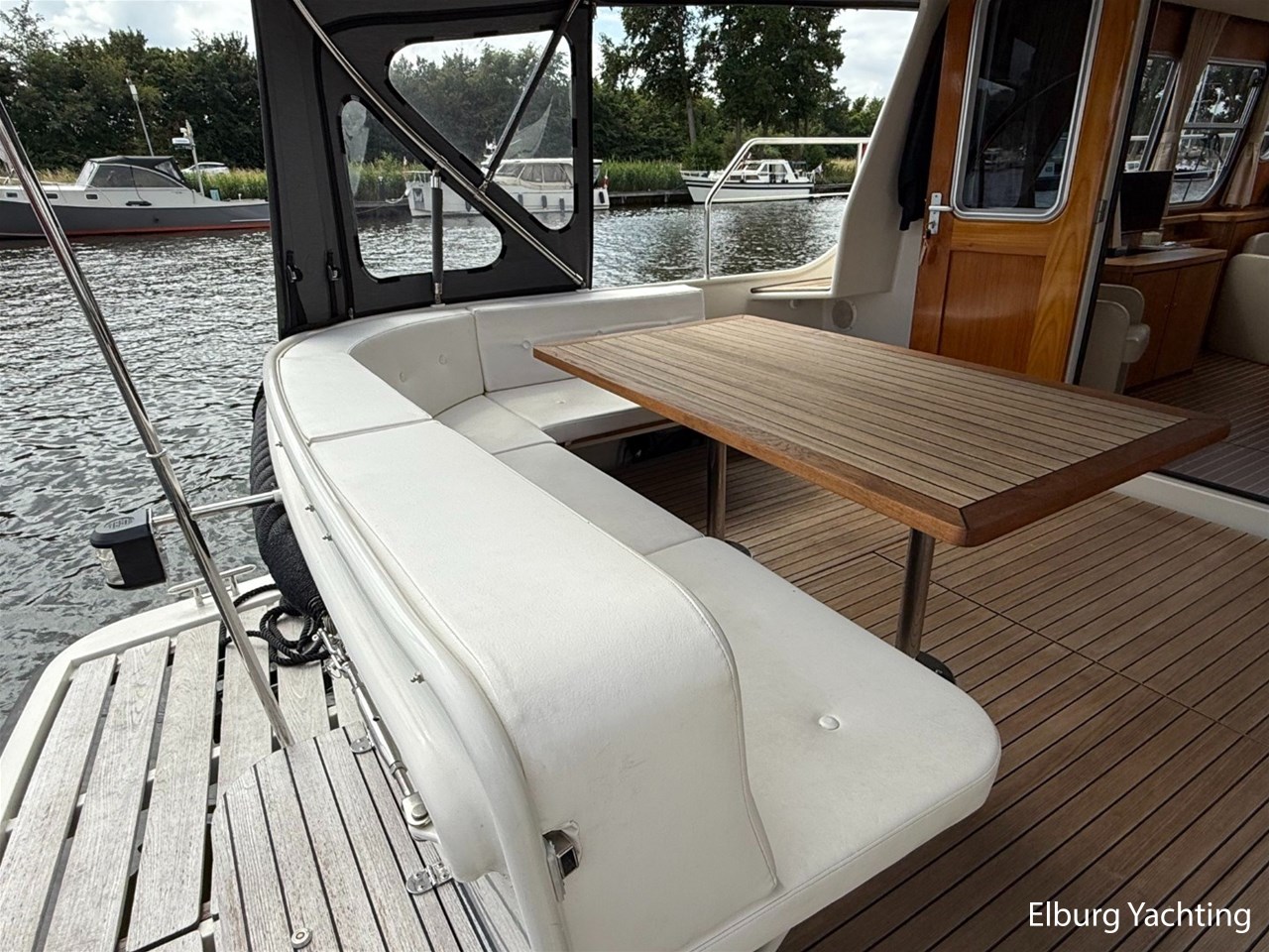 Het Sedan model kenmerkt zich met de ruime Open kuip met luxe kussens en een grote vaste Teakhouten tafel. Via deze royale kuip beweegt u zich comfortabel naar de gelijkvloerse Salon met royale U-bank (welke uit te schuiven is tot een 2 persoons bed) met daartegenover 2 comfortabele fauteuils. Aan bankboordzijde is de stuurstand gesitueerd met ruime bank voor twee personen. Boven de stuurstand is een fraai schuifdak gemonteerd voor het ultieme buitengevoel. Verder naar voren is de Kombuis gesitueerd met royale koelkast, 3 pits kooktoestel, elektrische combi oven/magnetron. Voorin is de eigenaarshut met dubbel bed, aan bakboord de gastenhut met twee enkele bedden en aan stuurboord de aparte toilet en de aparte douche met mogelijkheid tot het inbouwen van een wasmachine. Voor vragen en/of het maken van een afspraak bent u 7 dagen per week van harte welkom bij Elburg Yachting.