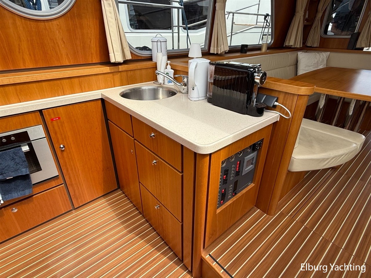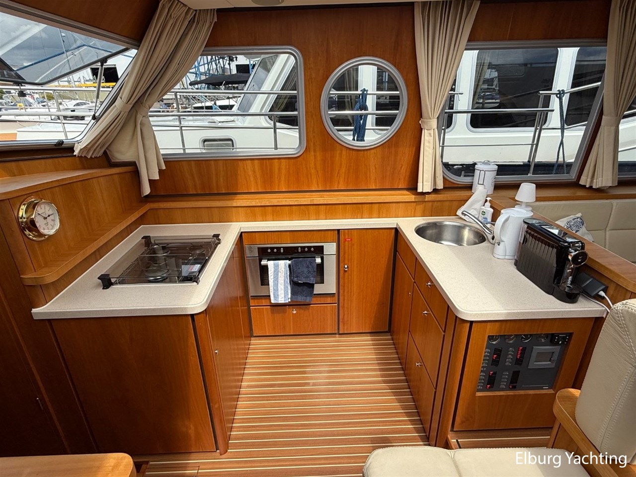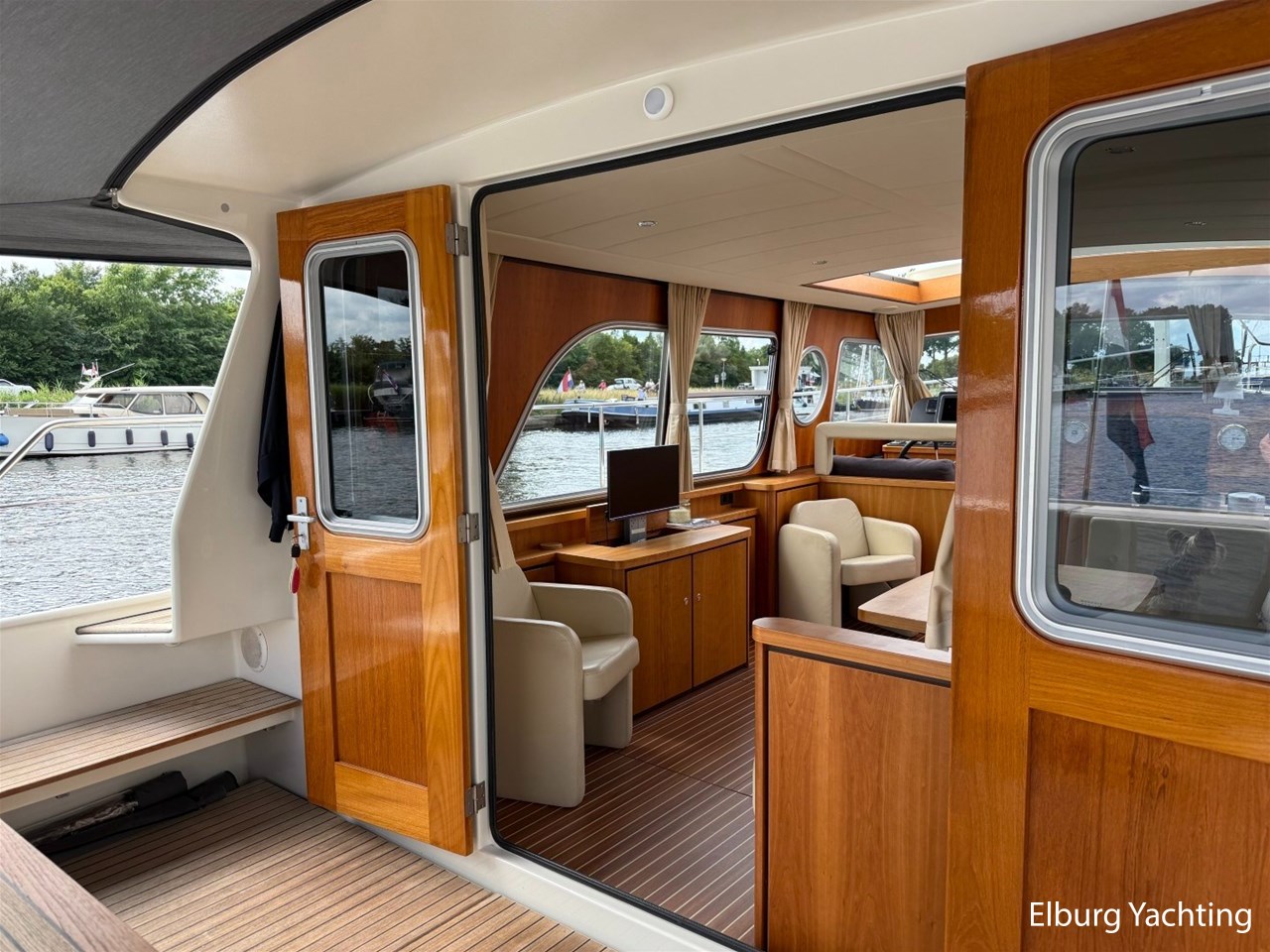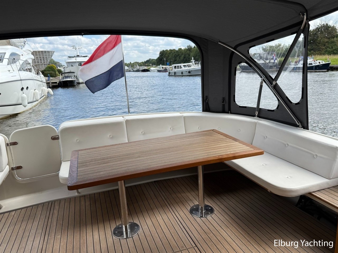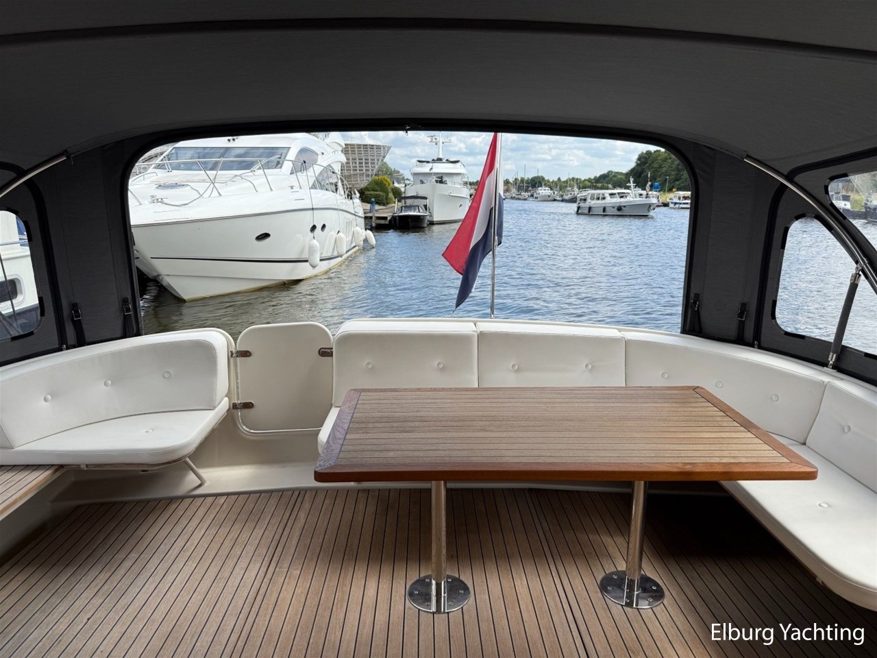 Het Sedan model kenmerkt zich met de ruime Open kuip met luxe kussens en een grote vaste Teakhouten tafel. Via deze royale kuip beweegt u zich comfortabel naar de gelijkvloerse Salon met royale U-bank (welke uit te schuiven is tot een 2 persoons bed) met daartegenover 2 comfortabele fauteuils. Aan bankboordzijde is de stuurstand gesitueerd met ruime bank voor twee personen. Boven de stuurstand is een fraai schuifdak gemonteerd voor het ultieme buitengevoel. Verder naar voren is de Kombuis gesitueerd met royale koelkast, 3 pits kooktoestel, elektrische combi oven/magnetron. Voorin is de eigenaarshut met dubbel bed, aan bakboord de gastenhut met twee enkele bedden en aan stuurboord de aparte toilet en de aparte douche met mogelijkheid tot het inbouwen van een wasmachine. Voor vragen en/of het maken van een afspraak bent u 7 dagen per week van harte welkom bij Elburg Yachting.