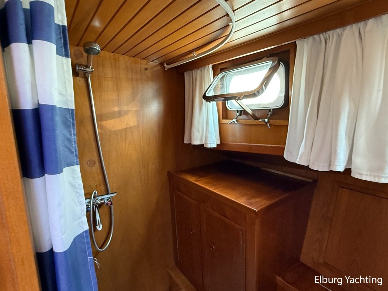Prachtige klassieke De Ruiter Kruiser 12.50 Open Kuip aangeboden door een eigenaar die veel liefde in het jacht heeft gestoken. Deze De Ruiter Kruiser is in 1979 gebouwd in Hoogeveen door de gerenommeerde werf De Ruiter. Het jacht is voorzien van een 6 cilinder sterke Ford Dieselmoter die 110pk levert. in 2006 heeft de dieselmotor een professionele revisiebeurt gehad en de motor is jaarlijks professioneel onderhouden door een scheepsmonteur. Door de gelijkvloerse verbinding tussen de salon en de kuip (open kuip) heeft het jacht een kruiphoogte van ca. 2.45 meter waardoor er een groot vaargebied kan worden aangedaan. in de afgelopen jaren is er flink geïnfesteerd in het jacht, zo is er onder andere in 2018 een nieuwe boiler ingebouwd, in 2019 de romp geheel geschilderd in een 2k systeem, in 2020 de opbouw geheel geschilder in een 2k systeem tevens is het houtwerk buiten en in de kuip gelakt, in 2020 is er ook een nieuwe kuiptent met RVS frame (met horren en zonnescherm) geplaatst, in 2021 een nieuw tapijt binnen, in 2022 een nieuwe wintertent en wordt de gasinstallatie van het jacht om de drie jaar gekeurd. Voor vragen en/of het maken van een afspraak bent u 7 dagen per week van harte welkom bij Elburg Yachting.