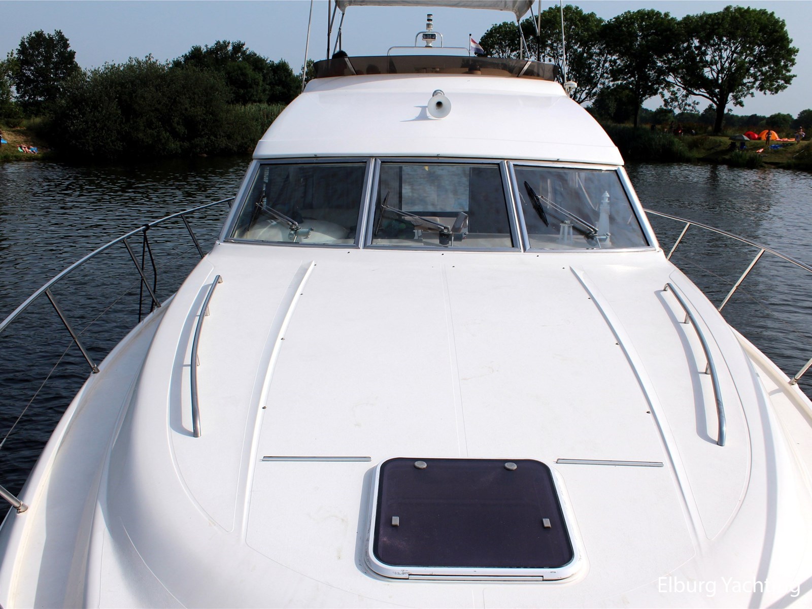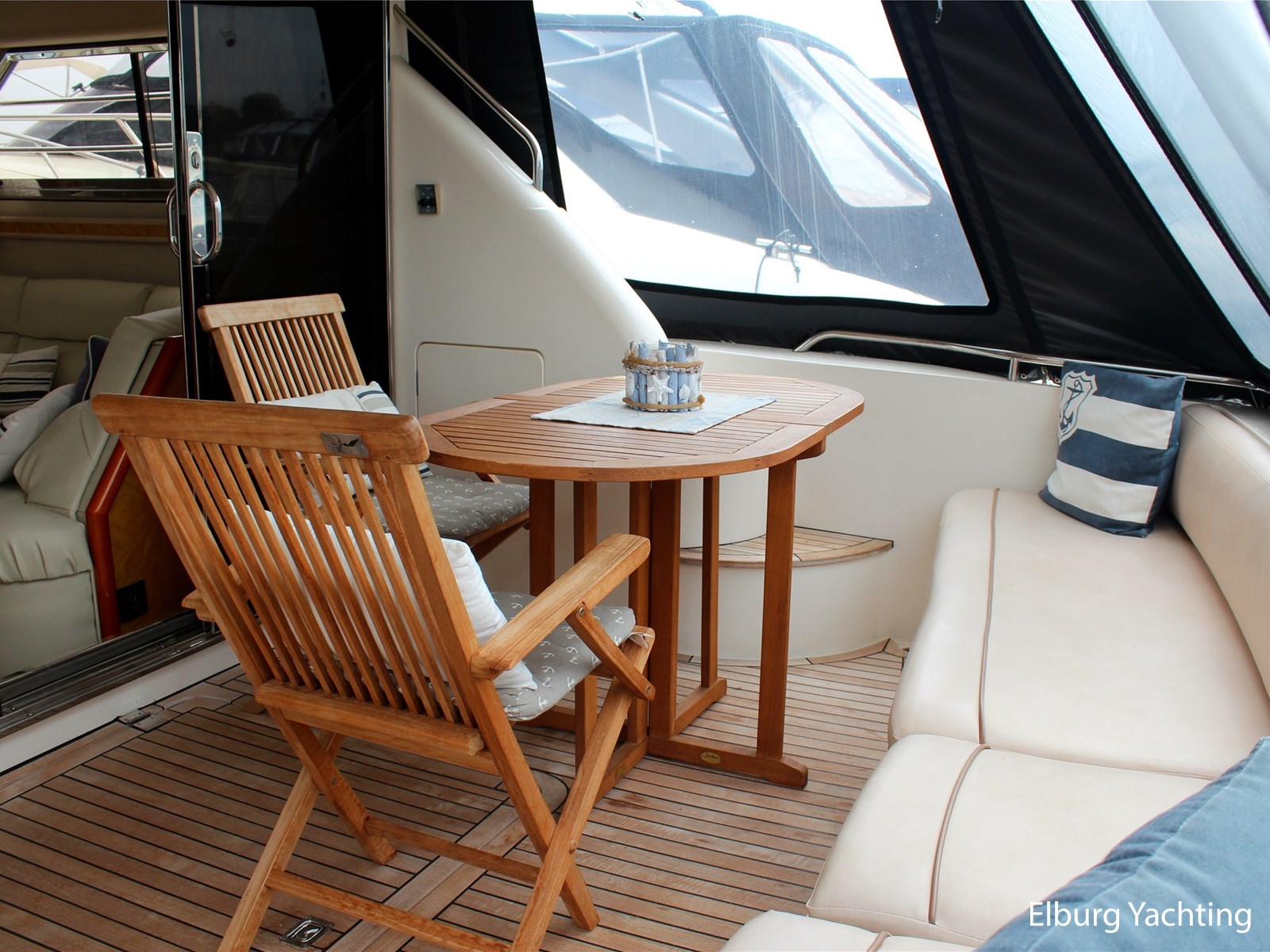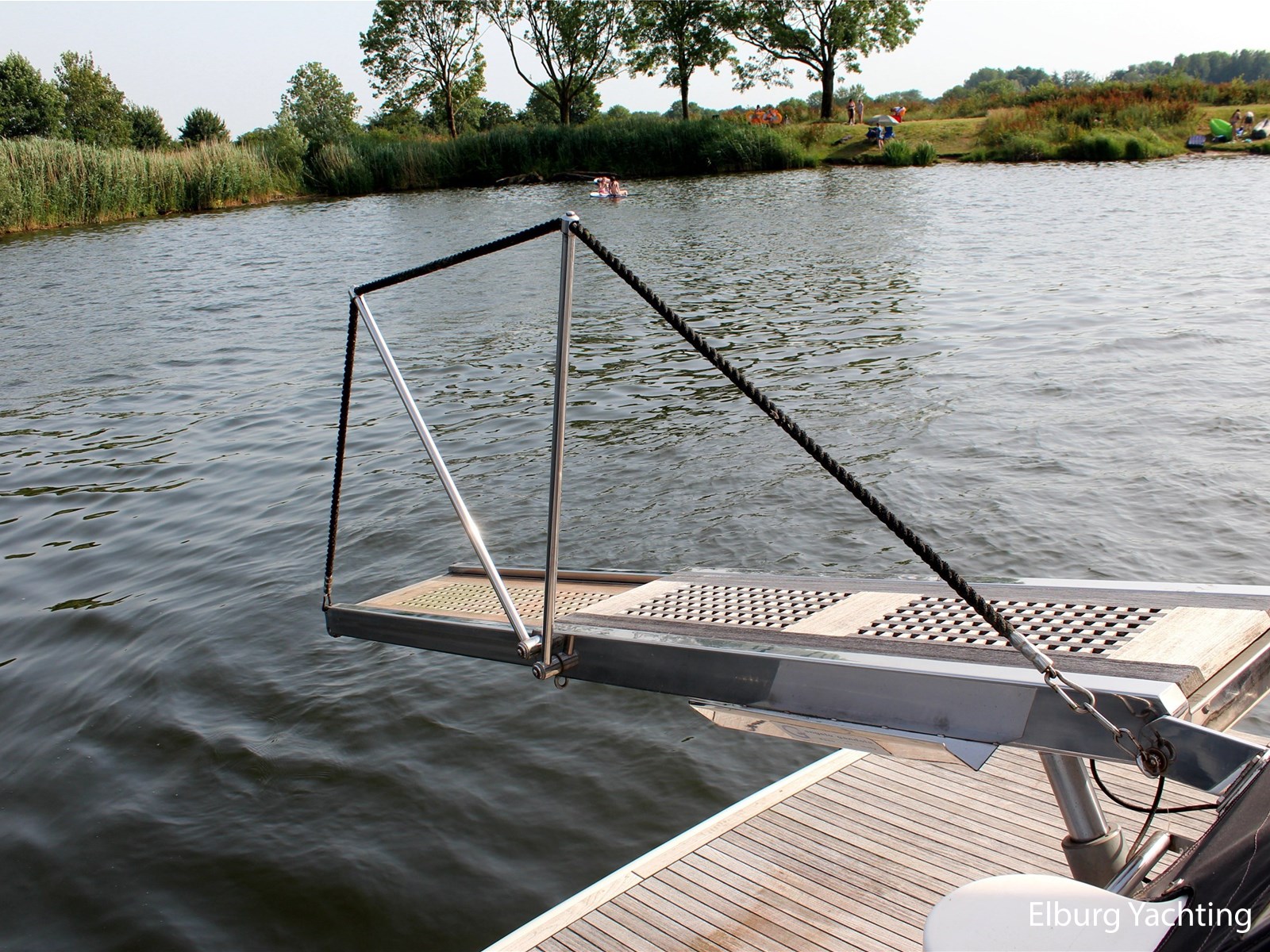 - Geïntegreerd met teak dek (vernieuwd in 2017) + r.v.s. zwemtrap