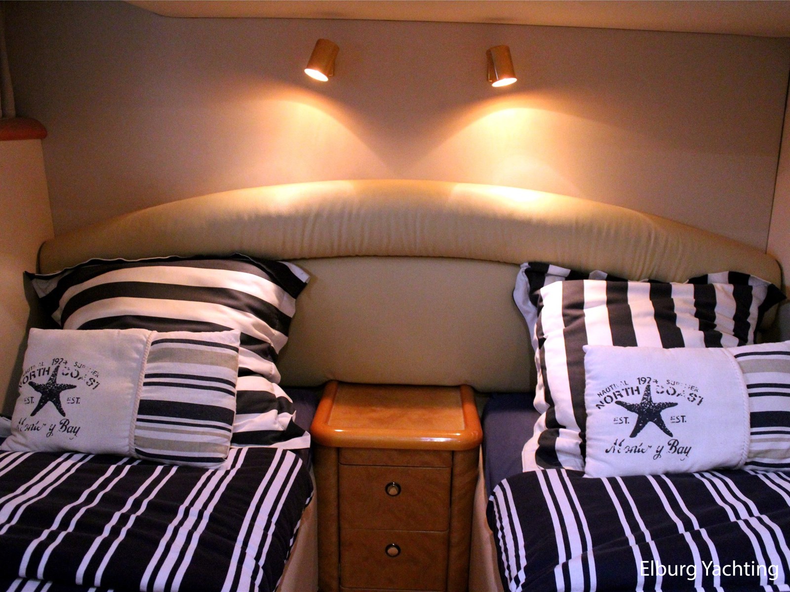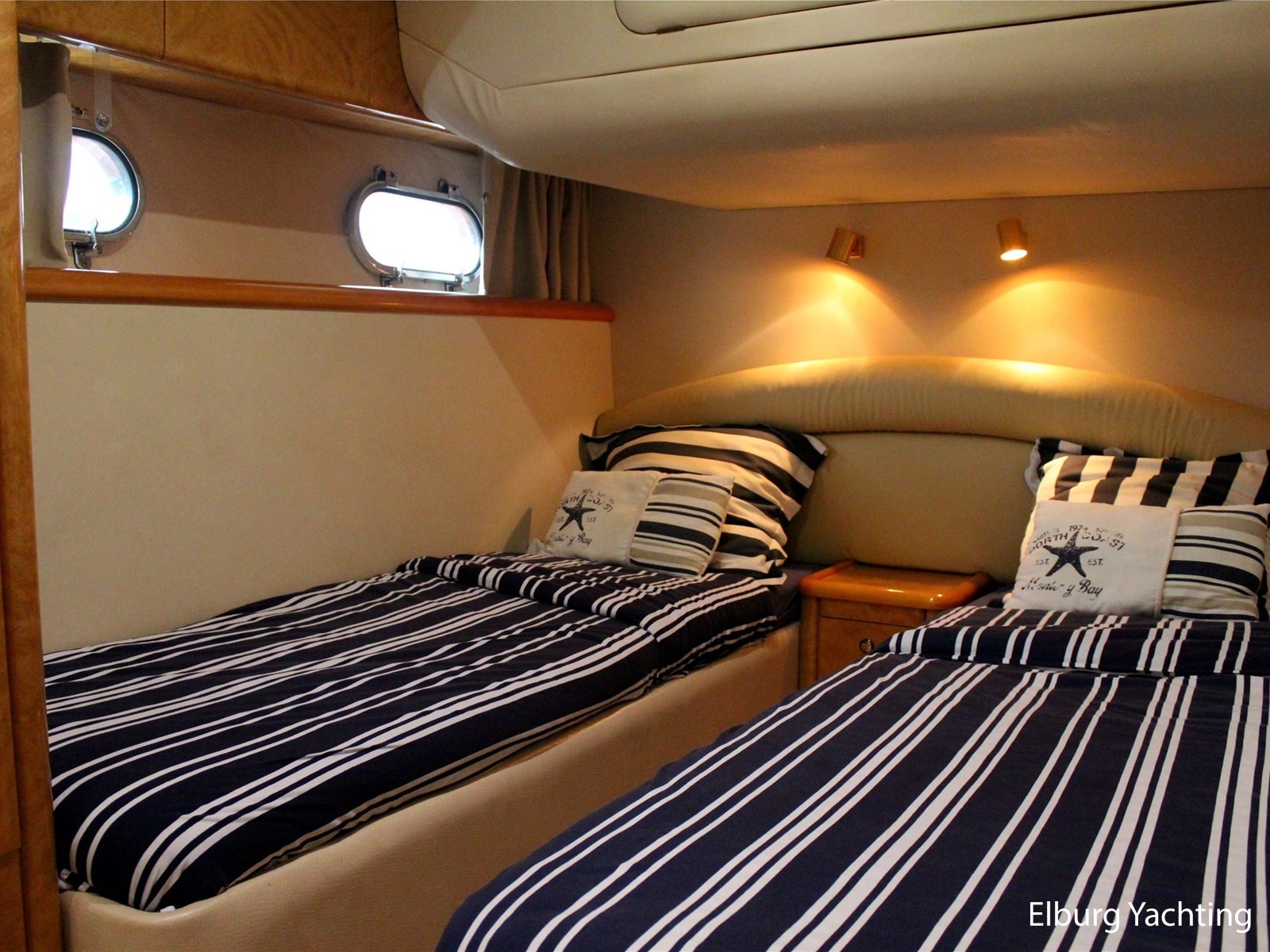 - 6 x vast (1 x 2 pers. frans bed in voorhut + 2 x 1 pers. aan SB-zijde + 2 x 1 pers. stapelbed aan BB-zijde)
