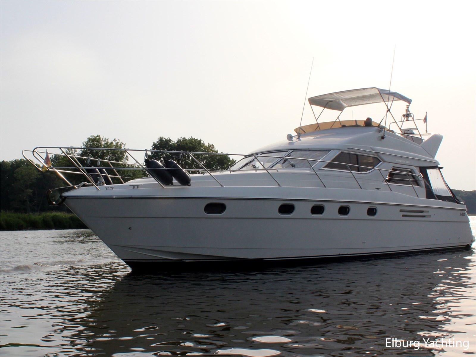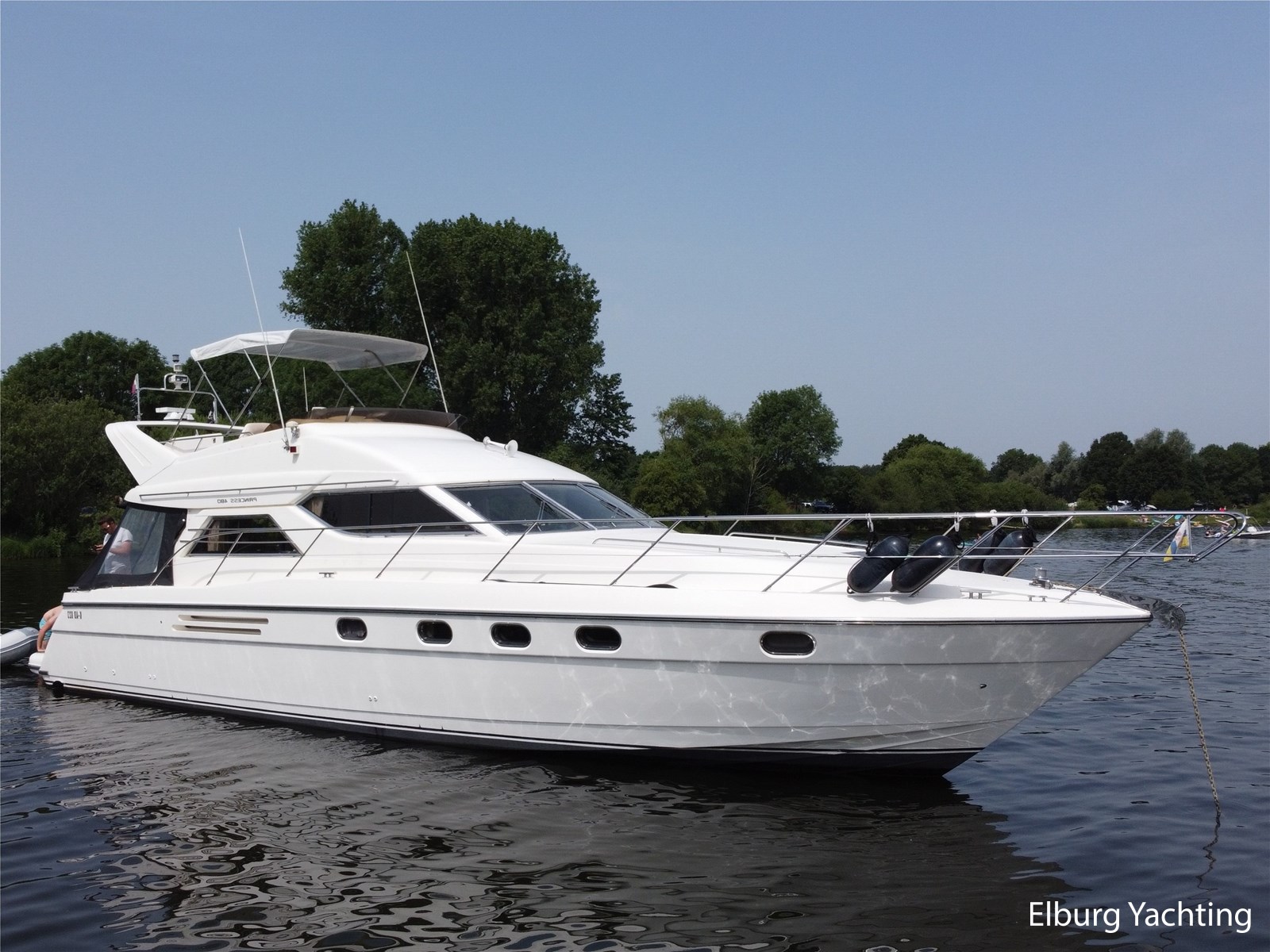 Deze Princess 480 Flybridge verkeert in zeer goede staat van onderhoud. Het schip biedt veel comfort en ruimte met 3 x volwaardige 2-persoons hutten. Het schip is o.a. uitgevoerd met: Vaste zitbank in open kuip met buitenkussens, open kuip en salon gelijkvloers, r.v.s. schuifdeur naar salon, "luie" vaste trap naar flybridge, ruime dinette op flybridge, zonnebed, vaarbank op flybridge, trim tabs, volledige afsluitbare tent rondom open kuip met afneembare verduisteringen, r.v.s. buitenreling rondom, 2 x schuifraam in salon, biminitop op flybridge, veel kastruimte, buitendouche, deur in spiegel naar zwemplatform, toegang machinekamer vanuit de open kuip, minimale doorvaarthoogte ca. 3,90 meter. Laatste complete motoronderhoud uitgevoerd in 2025, antifouling vernieuwd in 2024.