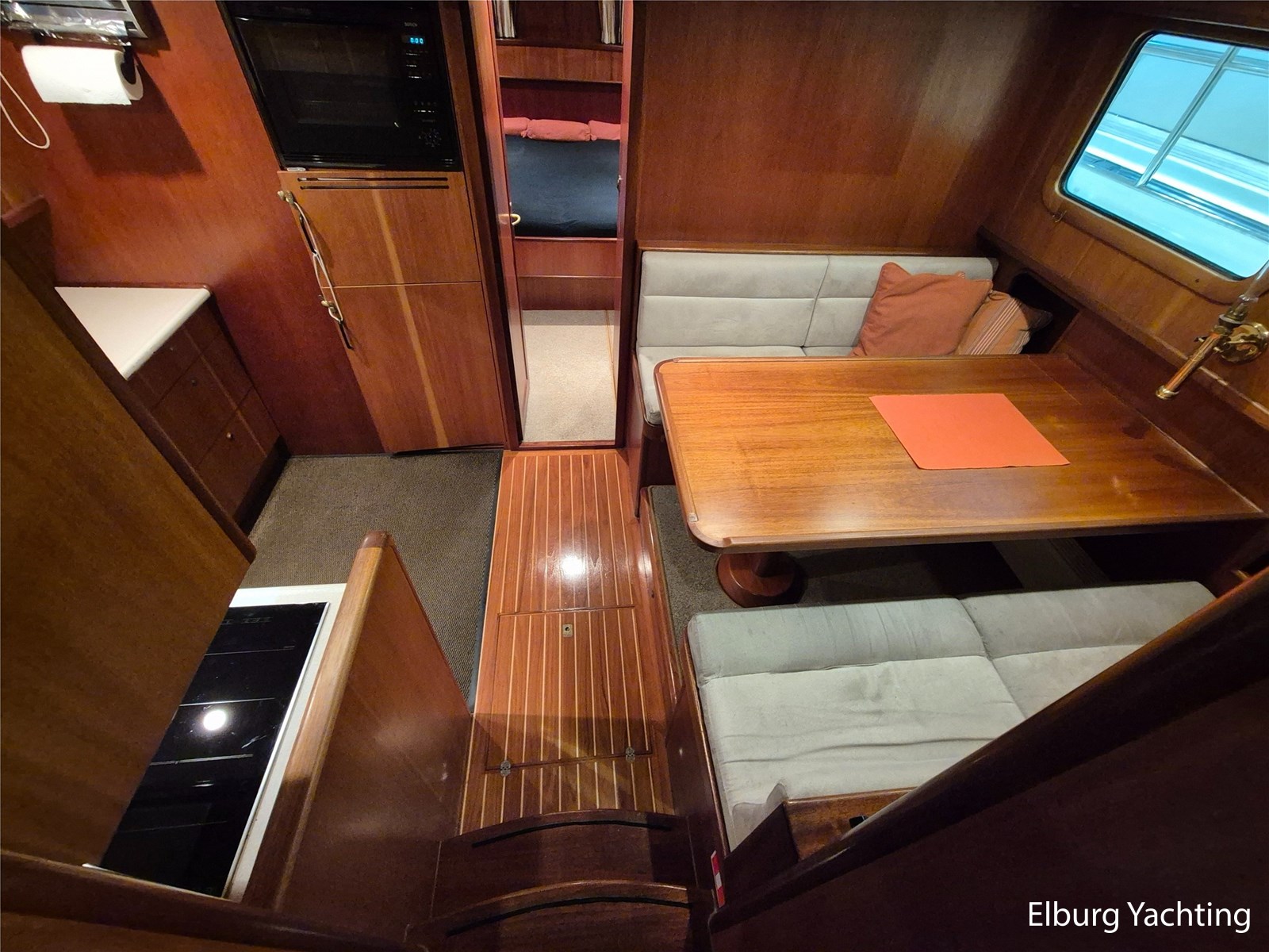 De tafel in de dinette kan zakken en met op maat gemaakte kussens omgebouwd worden naar een dubbel bed, af te schermen met een gordijn. Vrij uitzicht vanuit de dinette en kombuis naar buiten, geisoleerde vloeren, dubbele stootranden (en daardoor schuren er geen fenders tegen de scheepshuid) dubbel filtersysteem voor diesel en koelwater, koelwater aanzuig omschakelbaar.