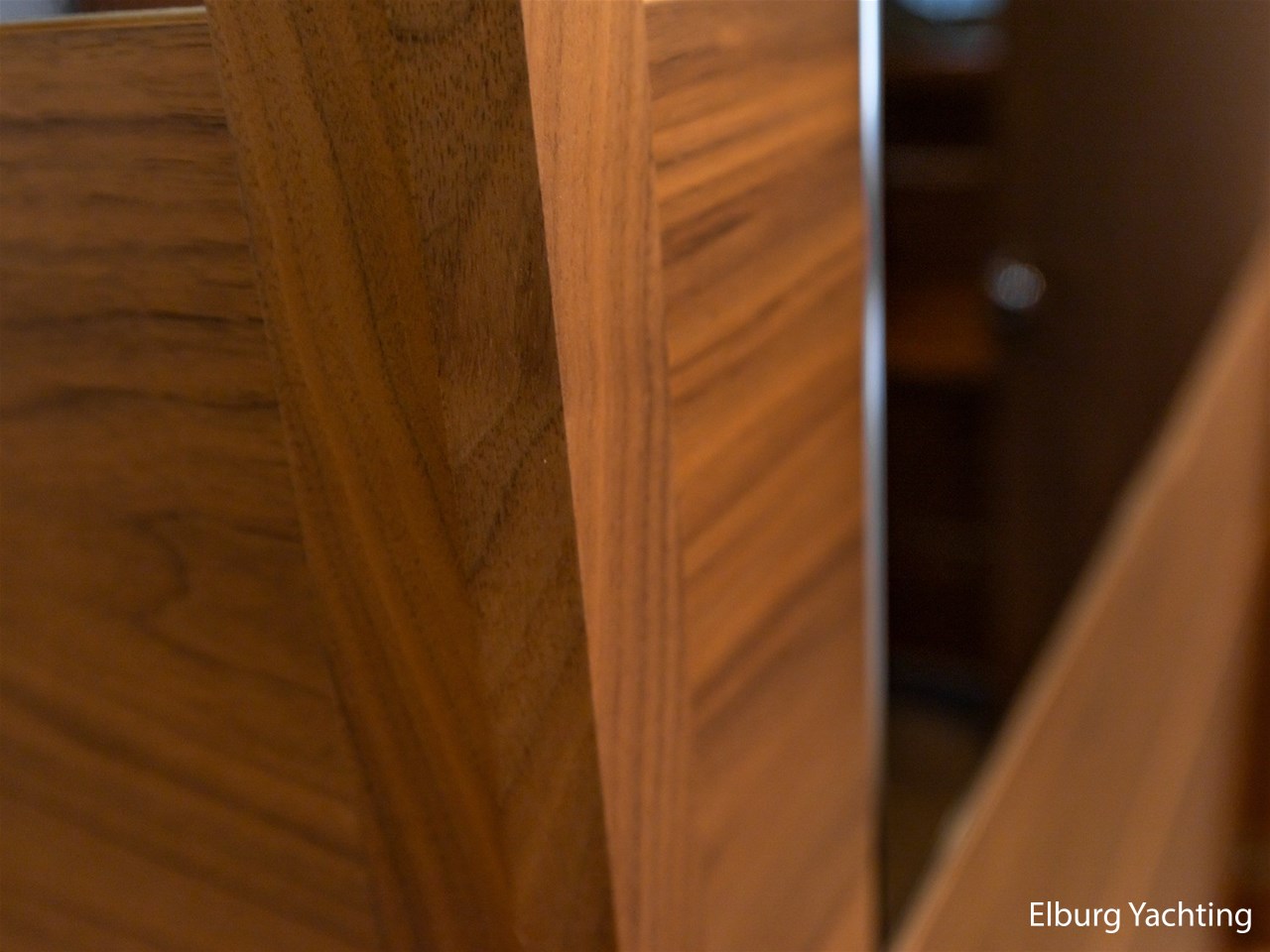 - Modern interieur met Notenhout fineer met r.v.s afwerking in panelen + hoogglans plafonddelen