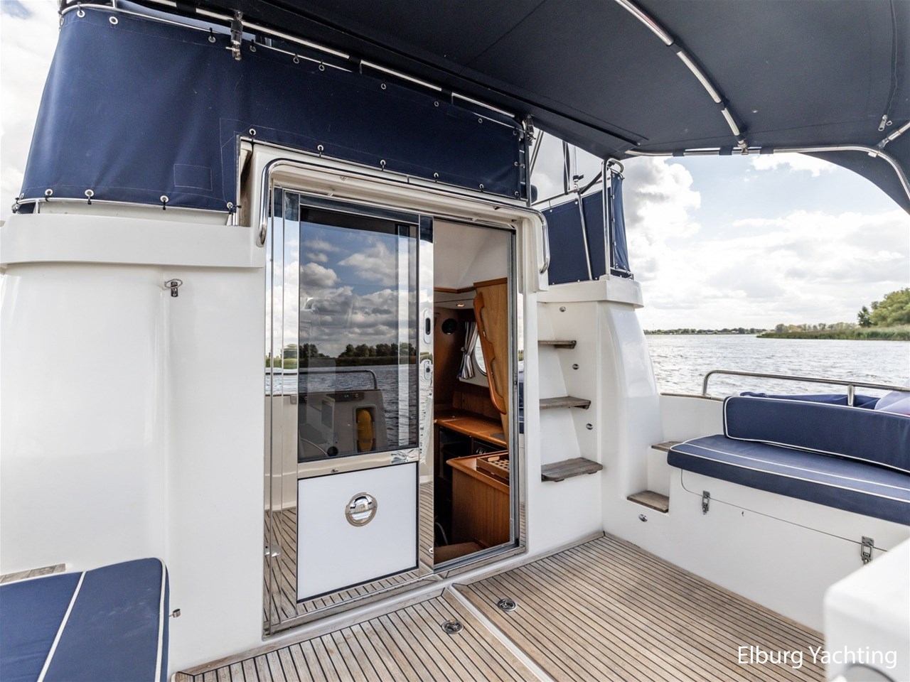 - Teak dek achterdek + zwemplateau + flybridge + gangboorden