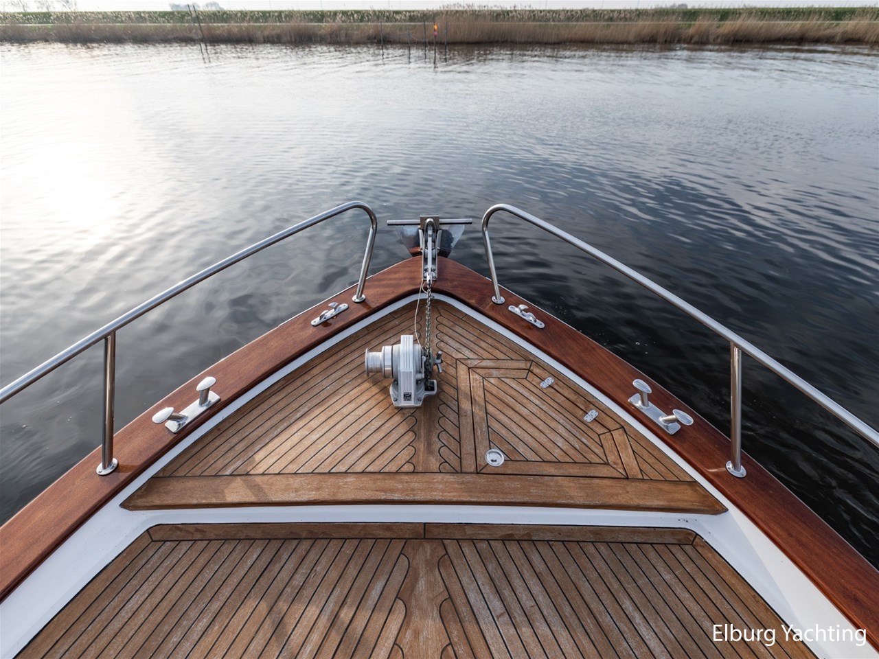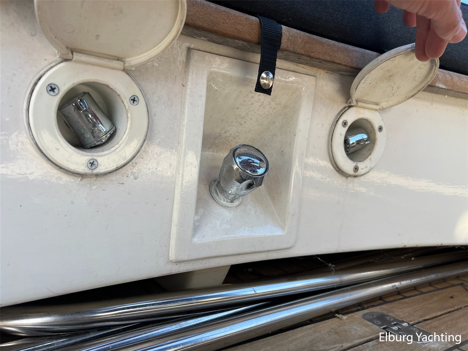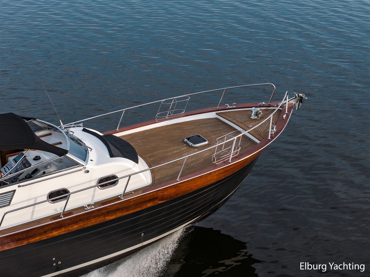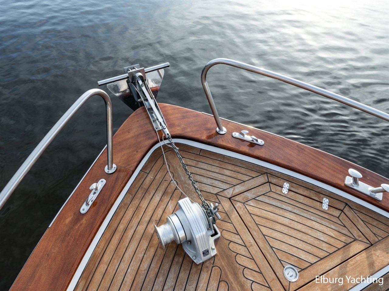 - Aangehangen met teak belegd + r.v.s. zwemtrap
