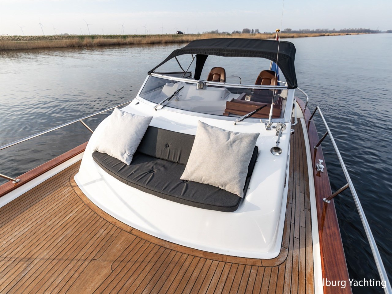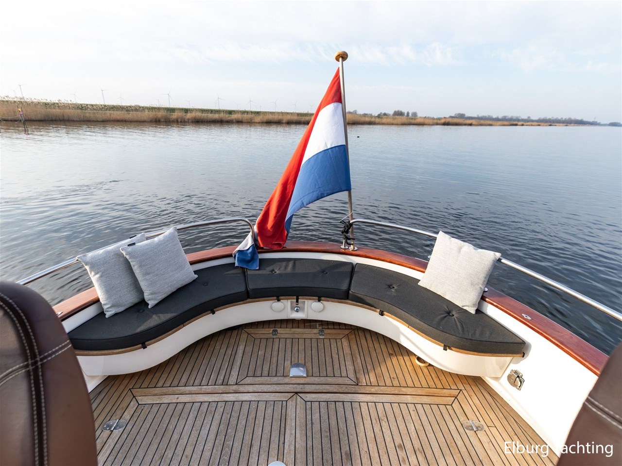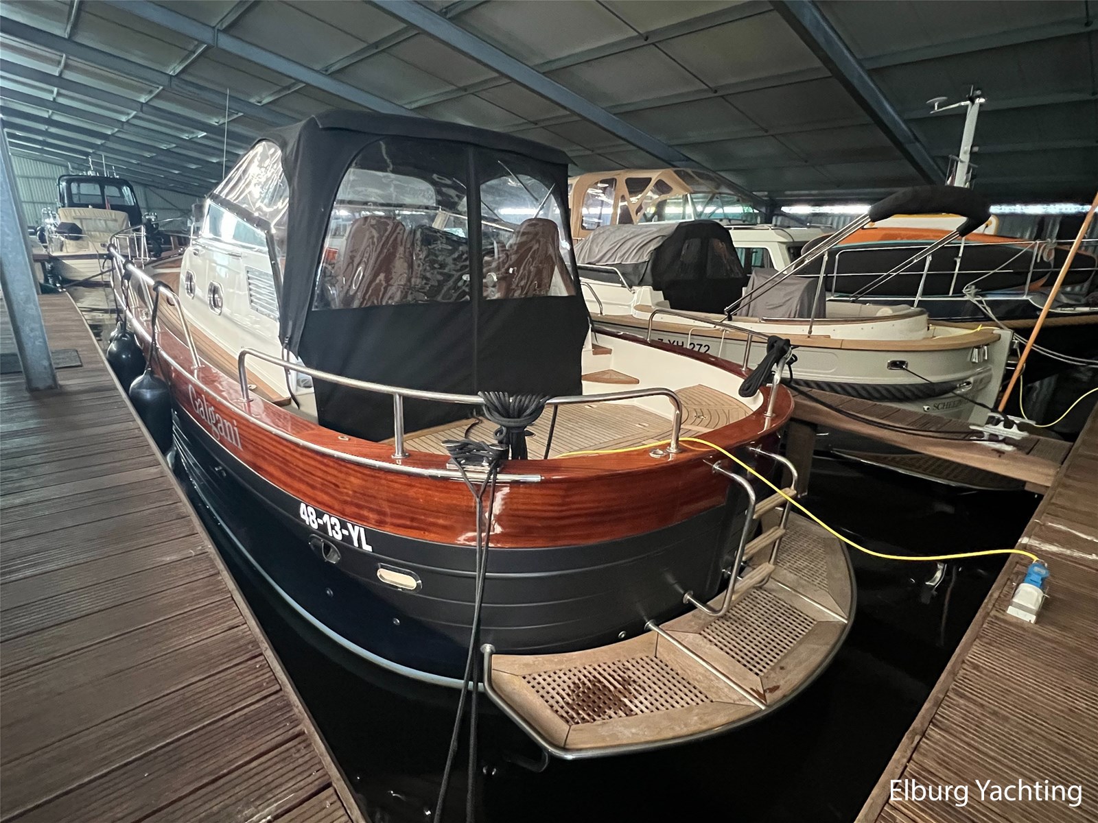 Prachtige Apreamare 10 Semi Cabinato met gezellige leefruimte buiten op zowel het voor- als achterdek. De huidige eigenaar heeft het afgelopen jaren vele zaken vernieuwd en verbeterd aan boord. De volgende werkzaamheden zijn uitgevoerd: Houtwerk/potdeksel in Q2 2025 opnieuw gelakt, keerkoppelingen zijn compleet gereviseerd, boiler 12 liter vervangen door nieuwe 40 liter boiler, Webasto heteluchtverwarming ingebouwd, nieuwe Raymarine plotter touchscreen en nieuwe Raymarine stuurautomaat, Garmin marifoon met AIS, 3000Watt omvormer Victron, Nieuwe accu's geplaatst, Nieuwe koelkast, Nieuwe lattenbodem en matrassen, onderwater schip kaal gehaald en opnieuw antifouling aangebracht. Sinds 2021 heeft dit schip het alle jaren in een schiphuis gelegen. Dit schiphuis in Ossenzijl is separaat overdraagbaar in de vorm van huur of koop. Deze Apreamare 10 Semi Cabinato is voorzien van: vaste bank in kuip en op het voordek met afneembare kussens, biminitop over achterdek, bakskisten, r.v.s. fenderhouders, volledige kuip tent over stuurstand met uitneembare delen, machinekamer bereikbaar via twee grote kuipluiken, dubbele Separ brandstoffilters, twee luxe vaarstoelen in hoogte verstelbaar, trimtabs, radio, victron battery display. De tent is over de stuurstand is neerklapbaar waarmee een minimale doorvaarthoogte van 2,20meter kan worden verkregen.