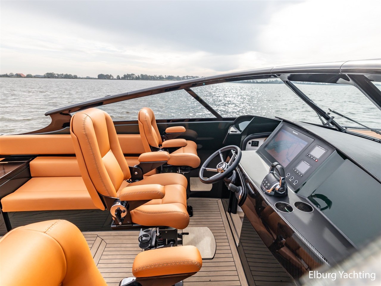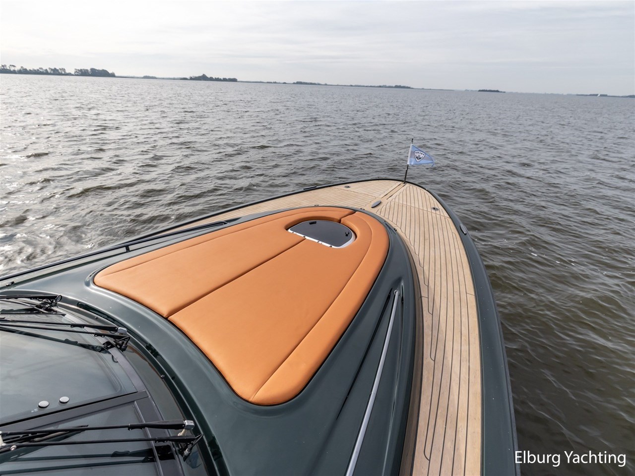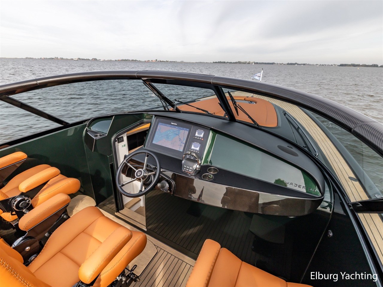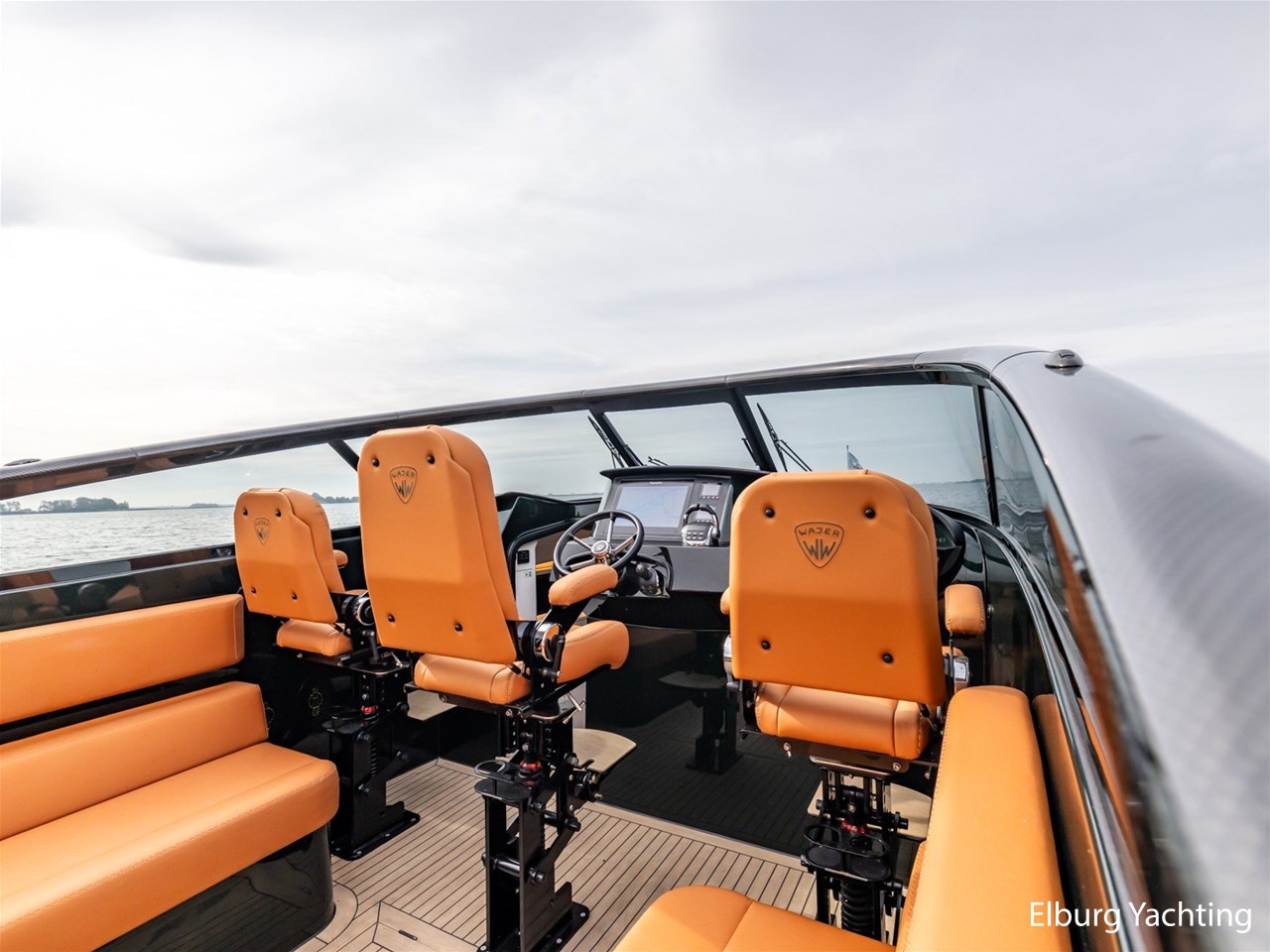 Prachtig uitgevoerde Wajer 38 met de IPS600 topmotorisering van Volvo Penta. Deze Wajer 38 is begin 2025 volledig door Wajer Yachts herspoten in de kleur Bentley Cumbrian Green, de binnen- en buitenbekleding is vernieuwd, er is een uitneembaar ligbed in het achterdek toegevoegd en de zwemtrap is vergemakkelijkt met een uitneembare handreling. In het oog springende elementen is het carbon fiber afgewerkte exterieur design, zwart geanodiseerd r.v.s. dekbeslag, Fusion audio met 4 versterkers / 8 speakers / 2 woofers, onderwaterverlichting, Webasto verwarming en airconditioning. Verder is deze Wajer 38 uitgerust met: dimbare sfeerverlichting in de kuip en kajuit, zonnebed op het voordek met afdekhoes, ankerkluis met bergruimte en water aansluiting, inklapbare fenderogen en bolders, wegneembare r.v.s. handgeleiders voor op- en afstappen van boord, klapbare voorruit, multifunctioneel display voor bediening boordsystemen en verlichting, drie keer Stidd stoelen met X-craft vering, afneembare zwarte biminitop over de stuurstand, volledige Wajer afdekhoes over de kuip. De kuipbank kan gebruikt worden in U-opstelling, volledig zonnebed of door het wegnemen van het middenstuk wordt er een volledige doorloop gecreëerd naar het zwemplateau. Topsnelheid ca. 45 knopen, kruissnelheid ca. 25 knopen.