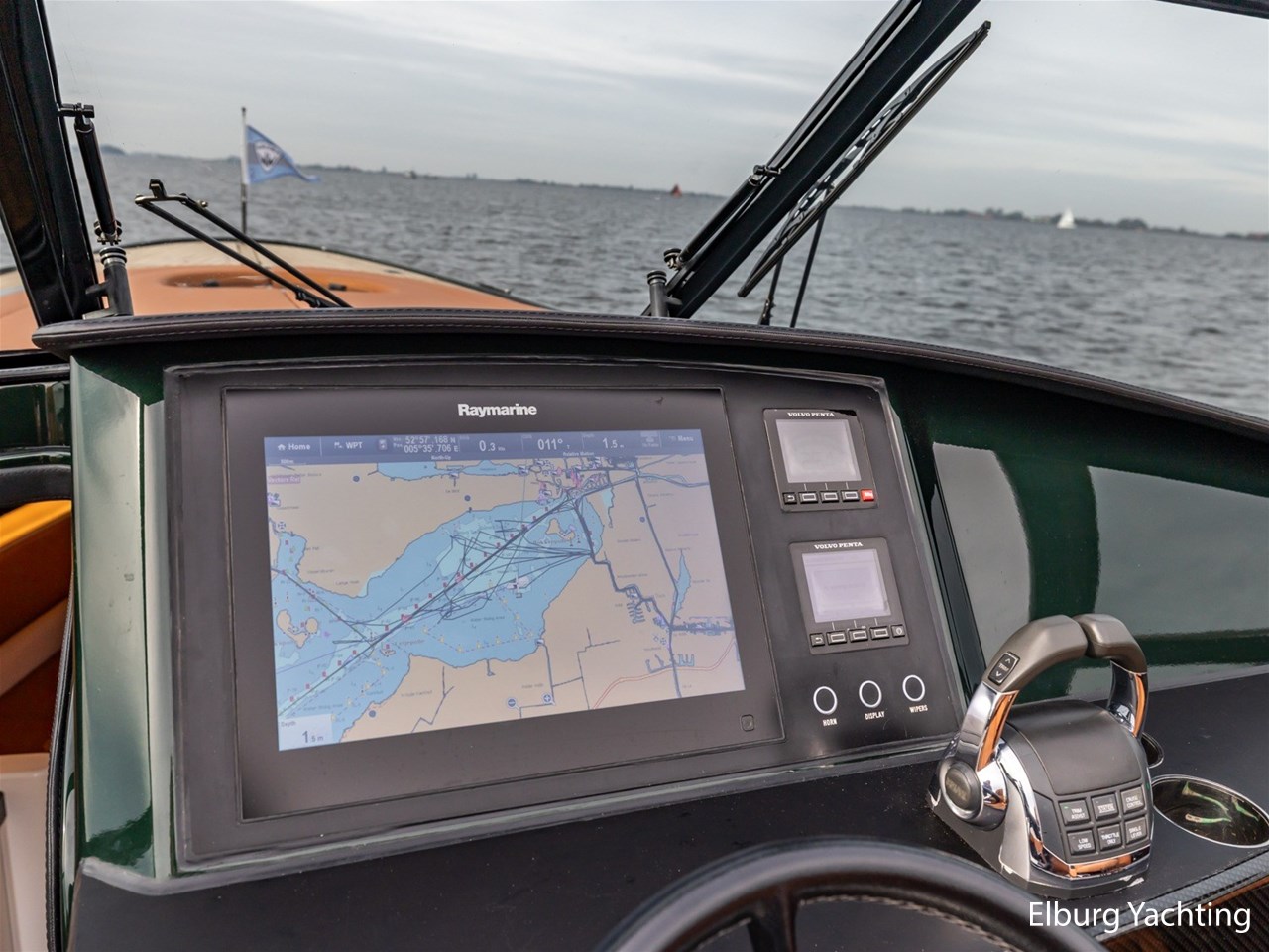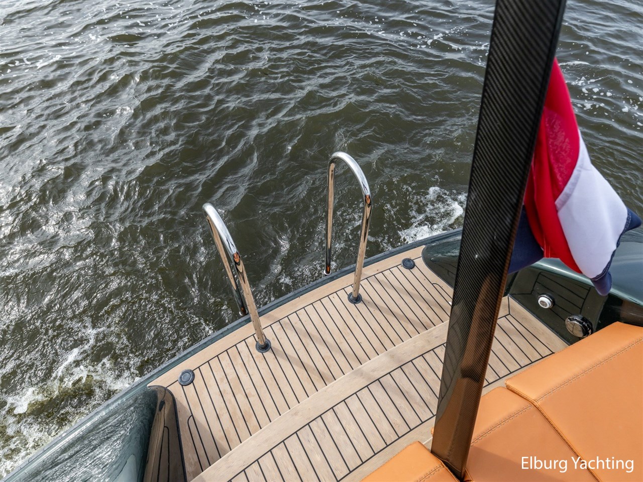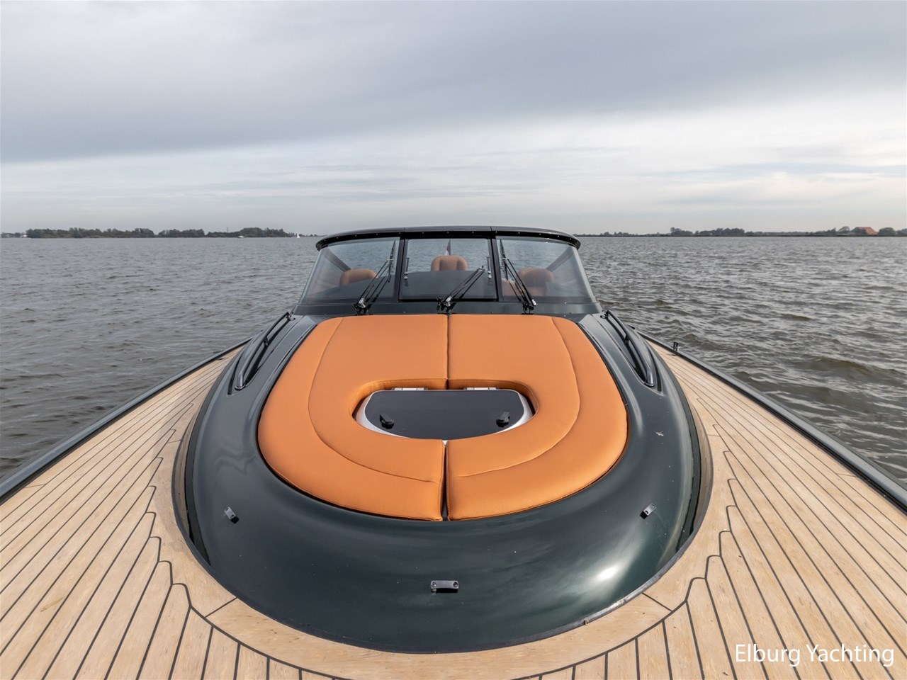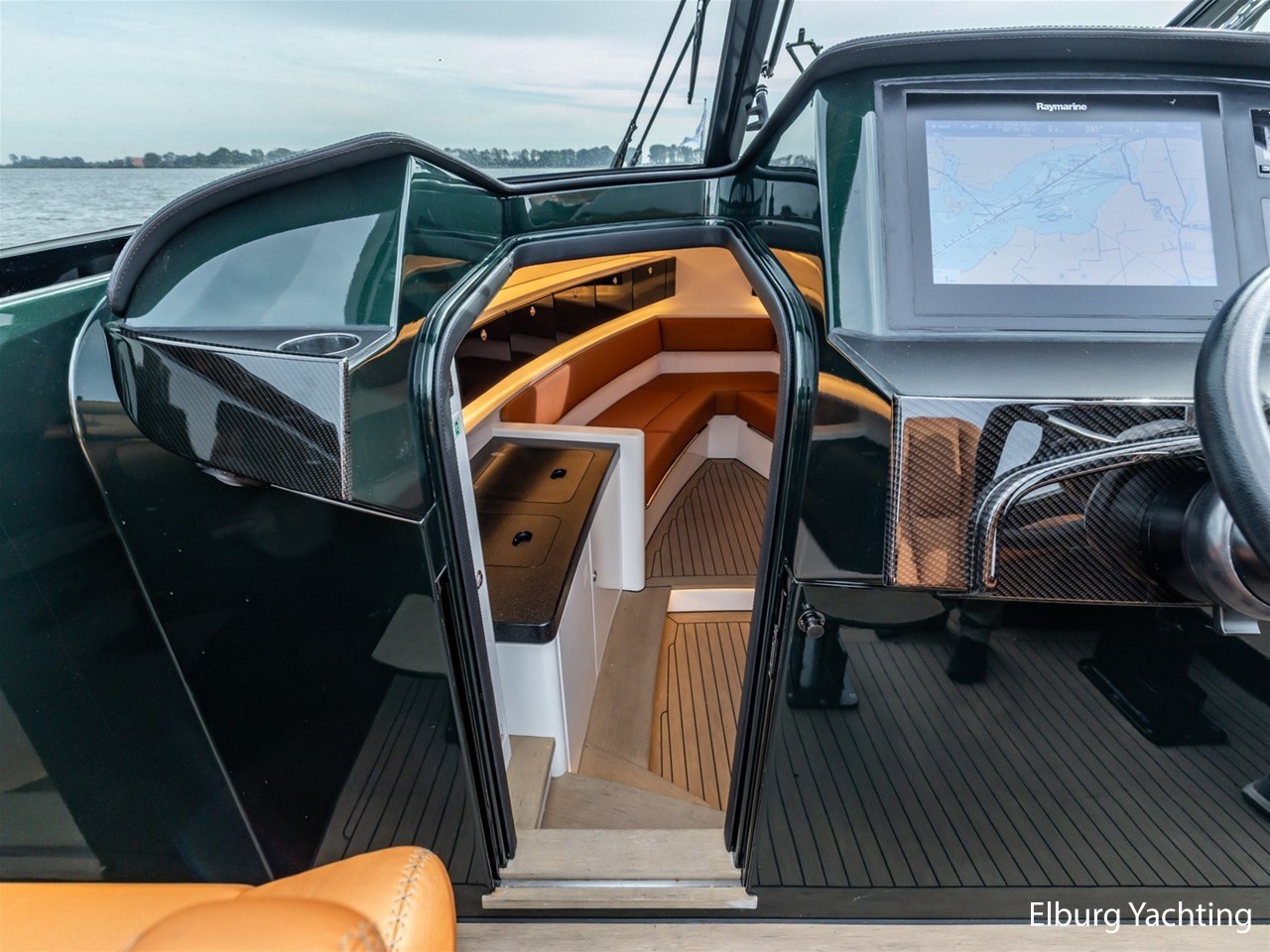 Prachtig uitgevoerde Wajer 38 met de IPS600 topmotorisering van Volvo Penta. Deze Wajer 38 is begin 2025 volledig door Wajer Yachts herspoten in de kleur Bentley Cumbrian Green, de binnen- en buitenbekleding is vernieuwd, er is een uitneembaar ligbed in het achterdek toegevoegd en de zwemtrap is vergemakkelijkt met een uitneembare handreling. In het oog springende elementen is het carbon fiber afgewerkte exterieur design, zwart geanodiseerd r.v.s. dekbeslag, Fusion audio met 4 versterkers / 8 speakers / 2 woofers, onderwaterverlichting, Webasto verwarming en airconditioning. Verder is deze Wajer 38 uitgerust met: dimbare sfeerverlichting in de kuip en kajuit, zonnebed op het voordek met afdekhoes, ankerkluis met bergruimte en water aansluiting, inklapbare fenderogen en bolders, wegneembare r.v.s. handgeleiders voor op- en afstappen van boord, klapbare voorruit, multifunctioneel display voor bediening boordsystemen en verlichting, drie keer Stidd stoelen met X-craft vering, afneembare zwarte biminitop over de stuurstand, volledige Wajer afdekhoes over de kuip. De kuipbank kan gebruikt worden in U-opstelling, volledig zonnebed of door het wegnemen van het middenstuk wordt er een volledige doorloop gecreëerd naar het zwemplateau. Topsnelheid ca. 45 knopen, kruissnelheid ca. 25 knopen.
